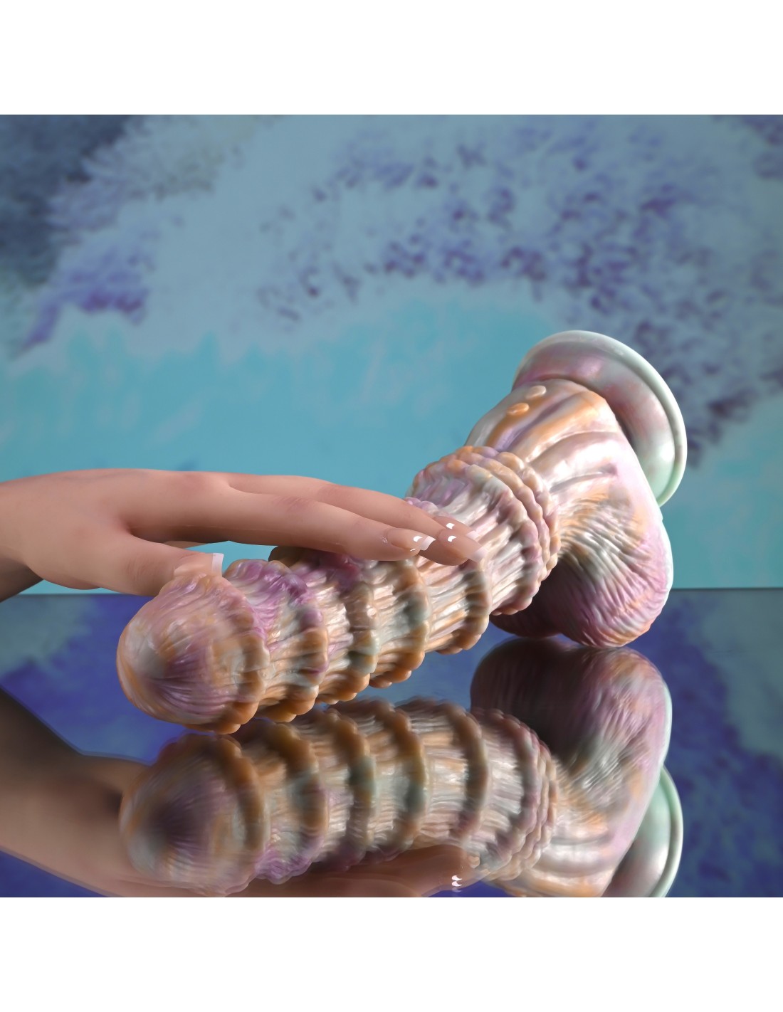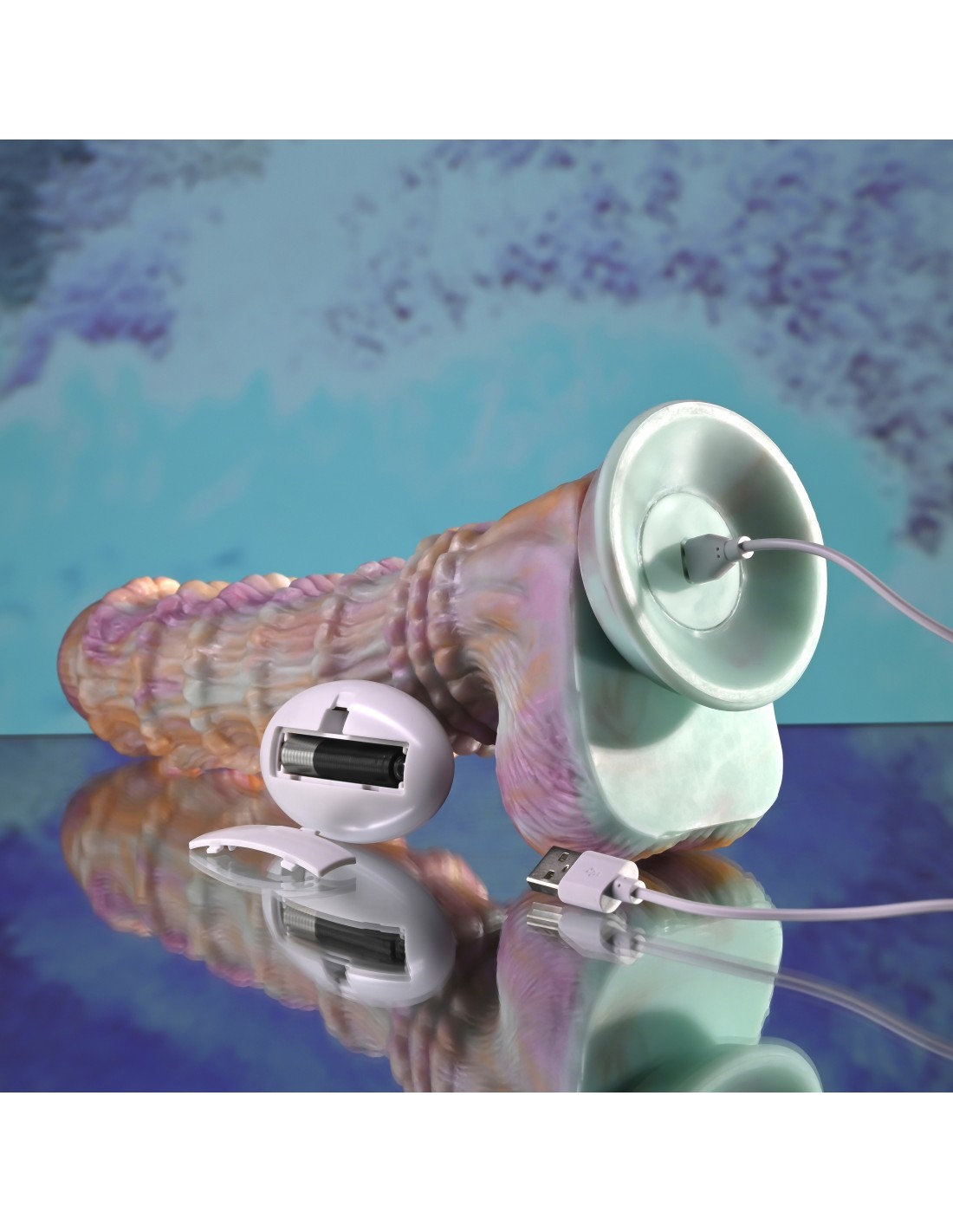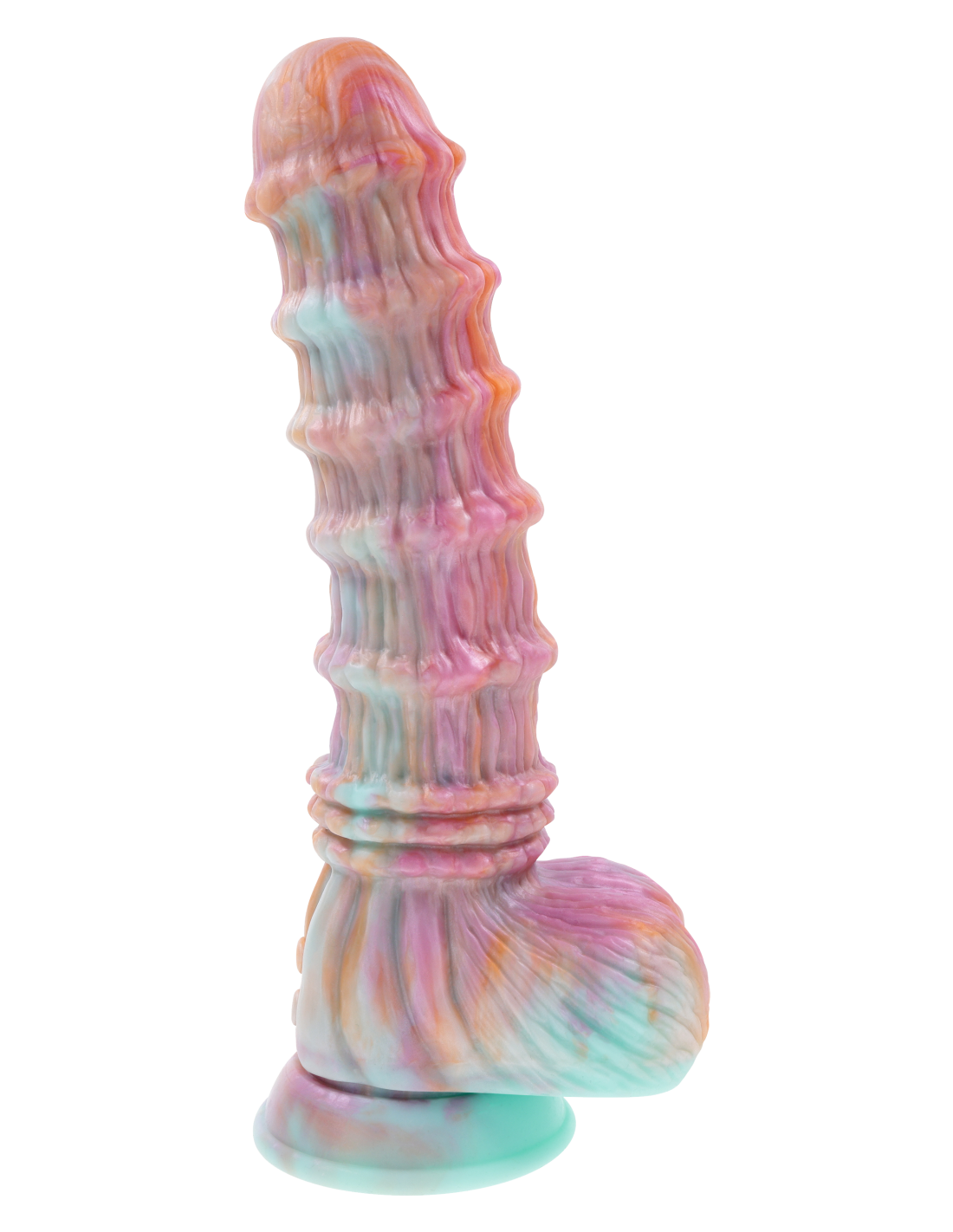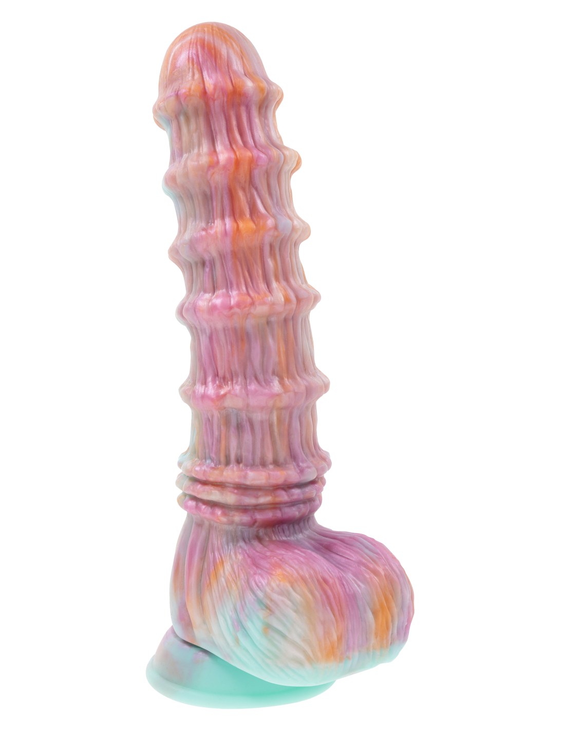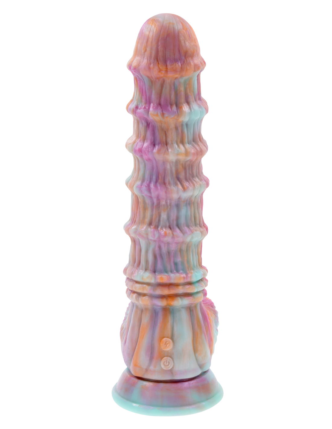 Discover deep cosmic vibes with this big, girthy flexible toy that gives a whole new meaning to 'creature comforts.' Crafted with unusually textured, multicolor body-safe silicone, this fantasy-inspired vibrator has 8 graduated rings on its shaft, textured balls and a powerful suction cup base for out of this world hands-free pleasure. Try Turbo Mode to really send your orgasm into the stratosphere!