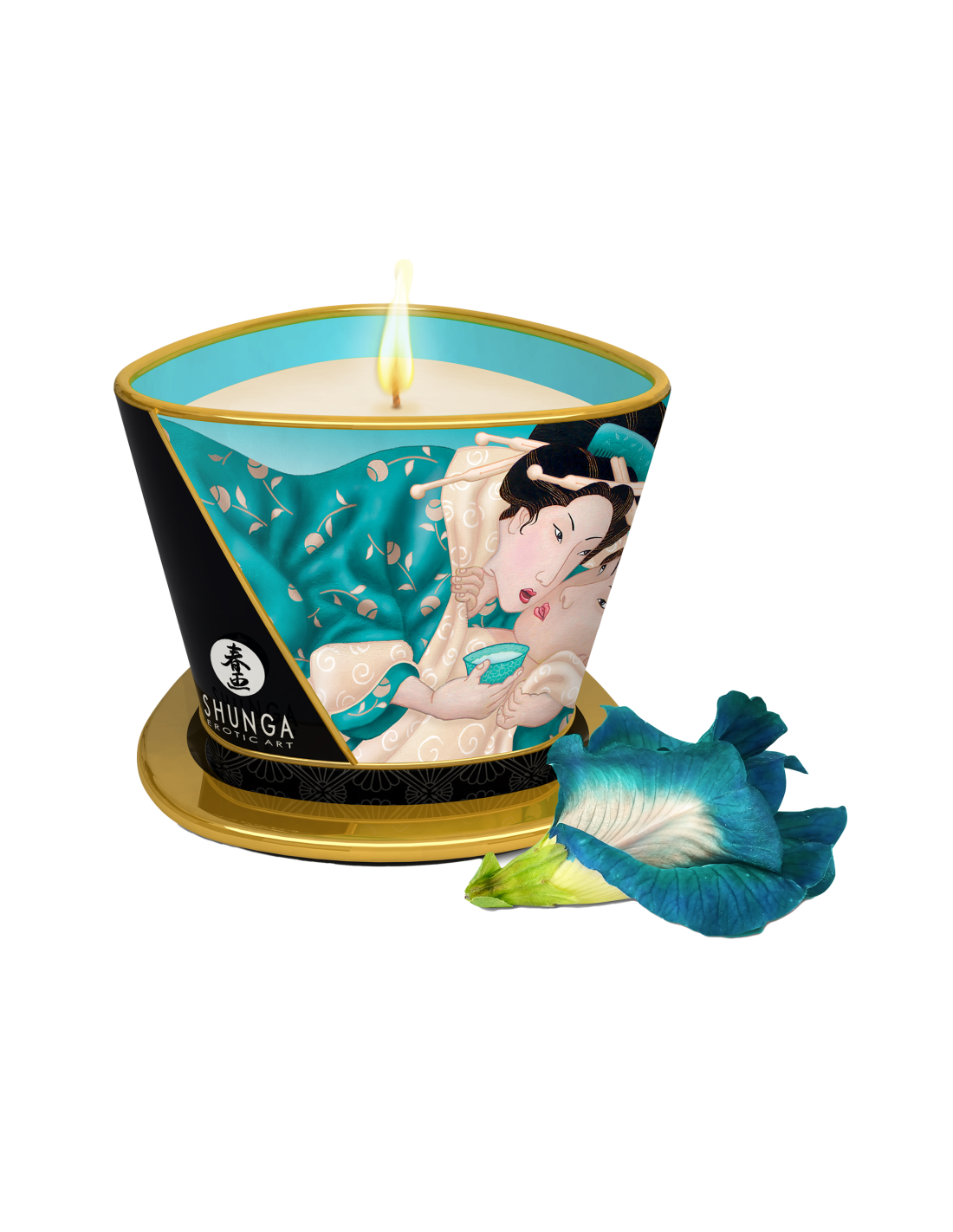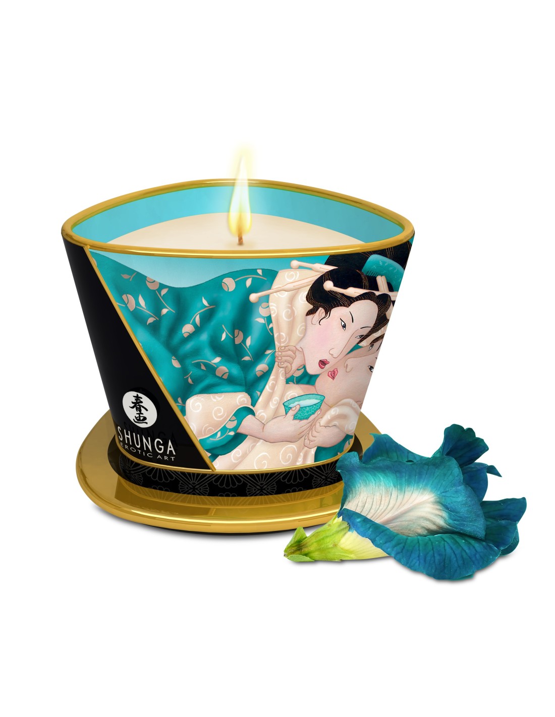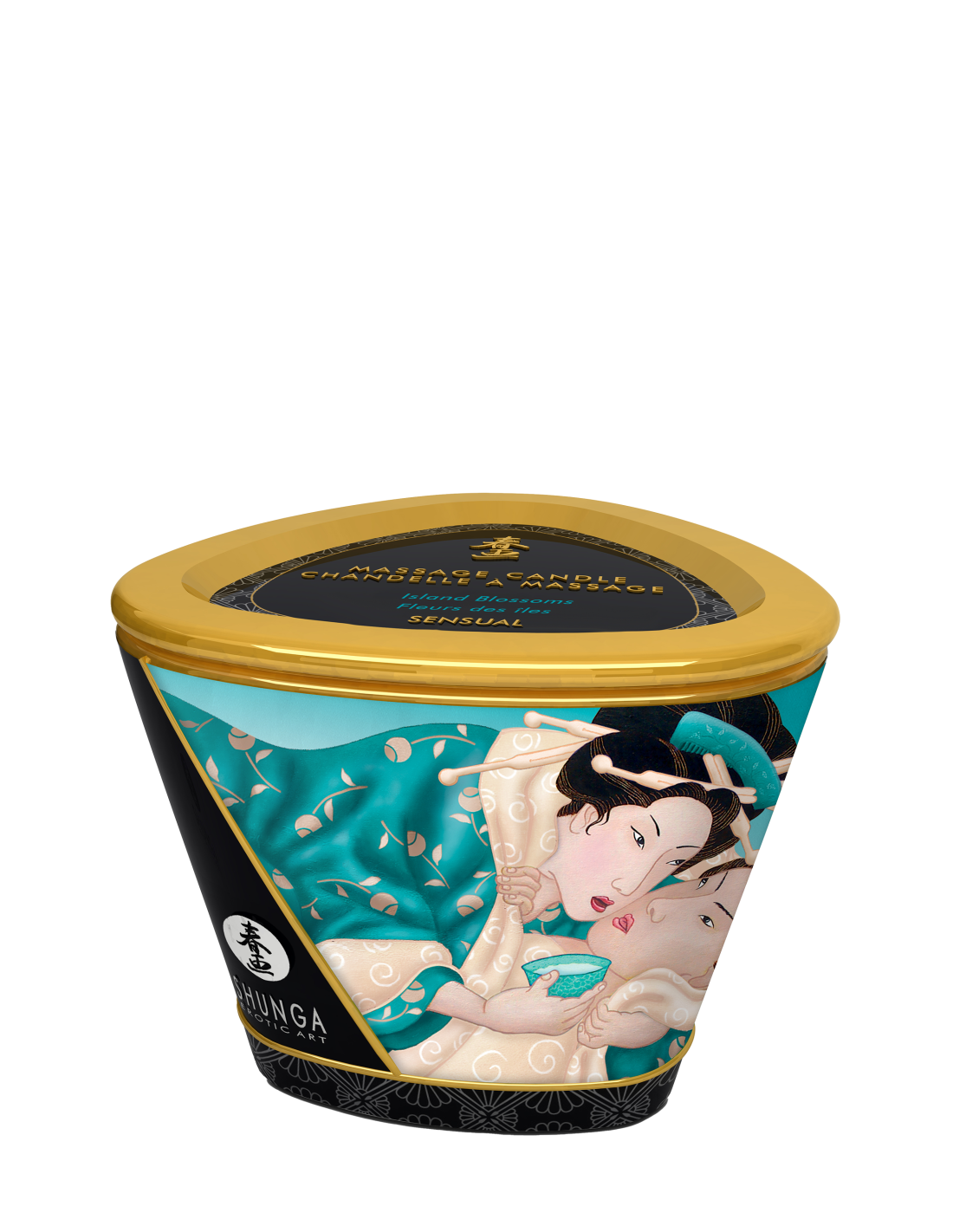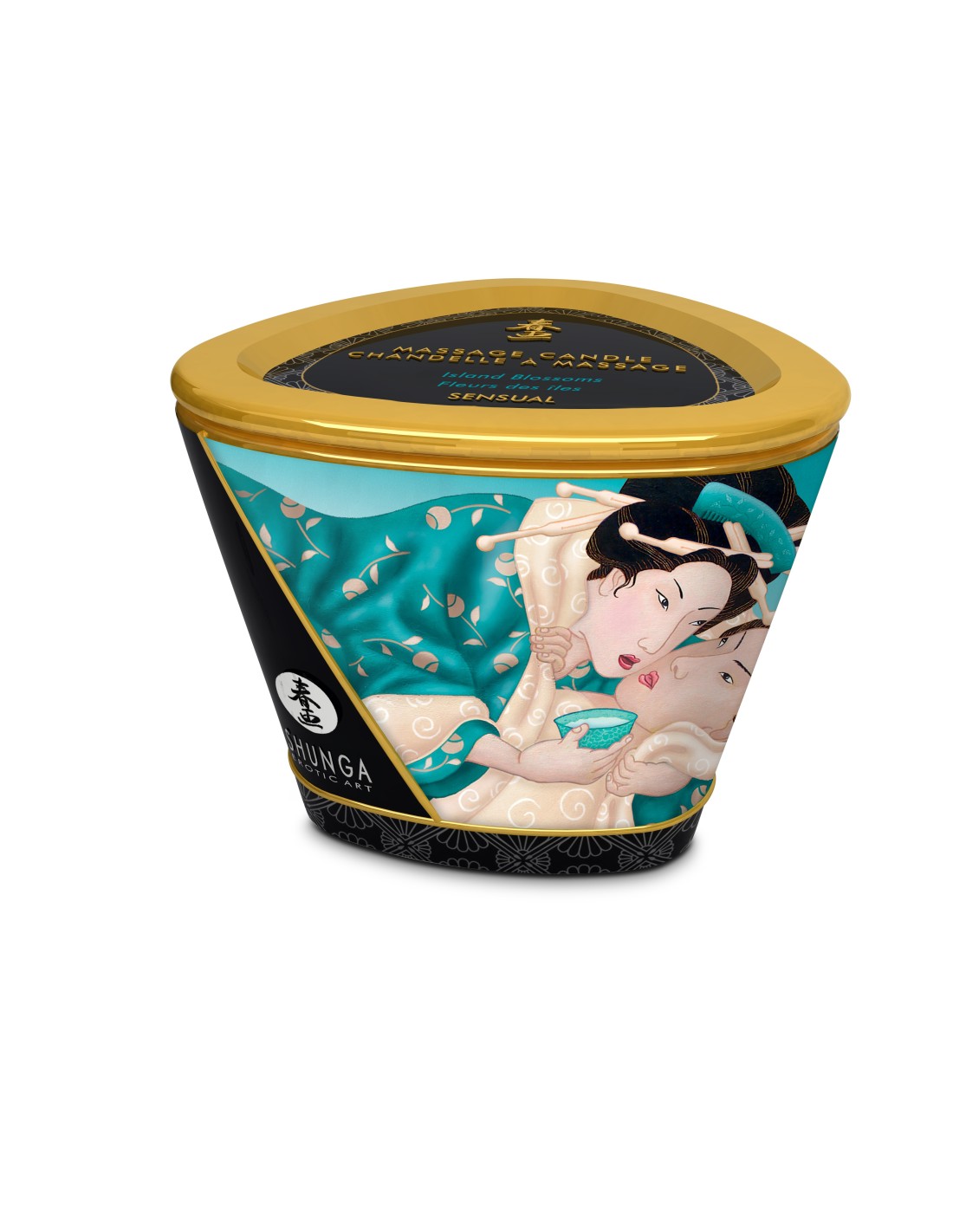 Masajea las flores de la isla de las velas. Esta vela a base de soja se puede utilizar tanto como vela de ambiente como como aceite de masaje íntimo.