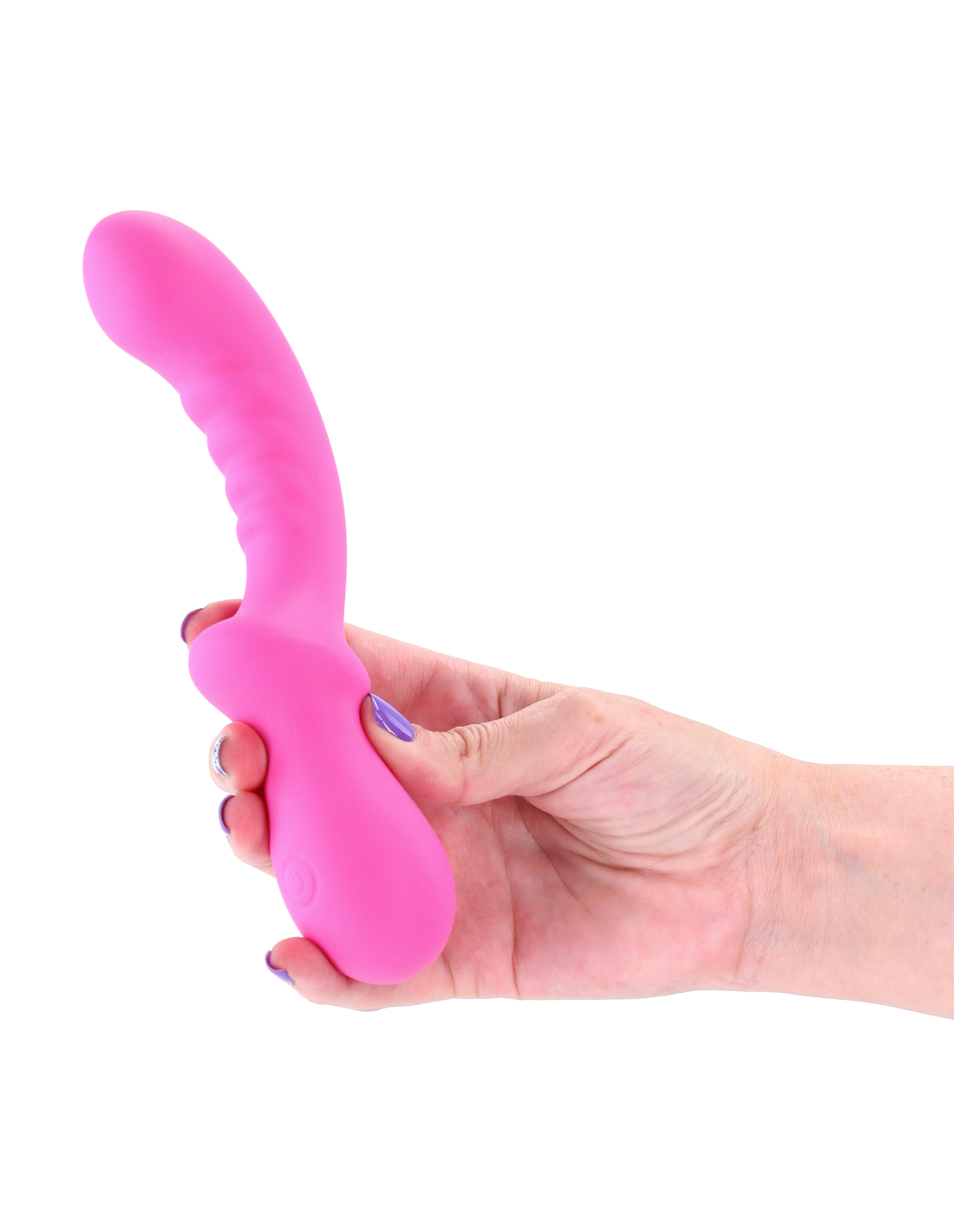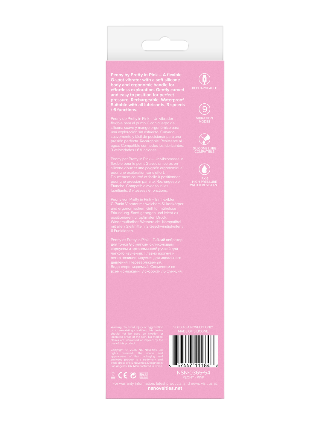 Peony by Pretty in Pink – A flexible G-spot vibrator with a soft silicone body and ergonomic handle for effortless exploration. Gently curved and easy to position for perfect pressure. Rechargeable. Waterproof. Suitable with all lubricants. 3 speeds / 6 functions.