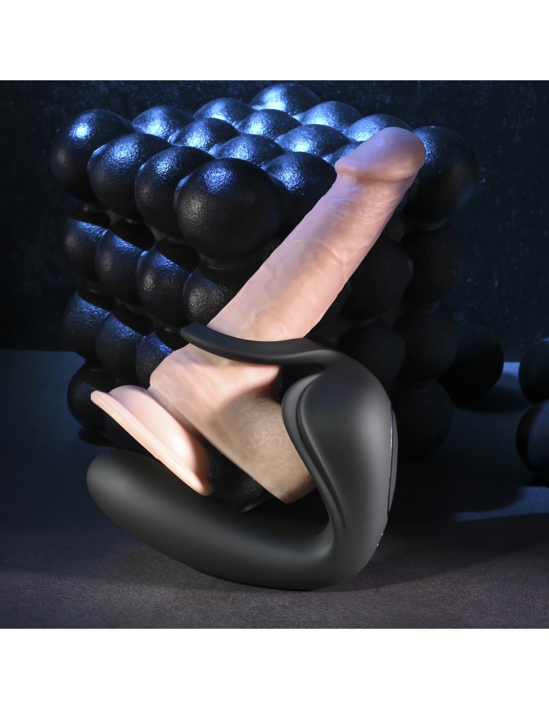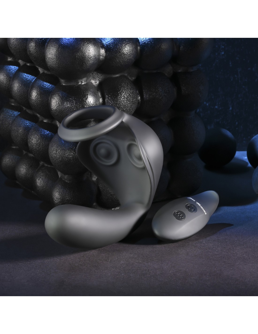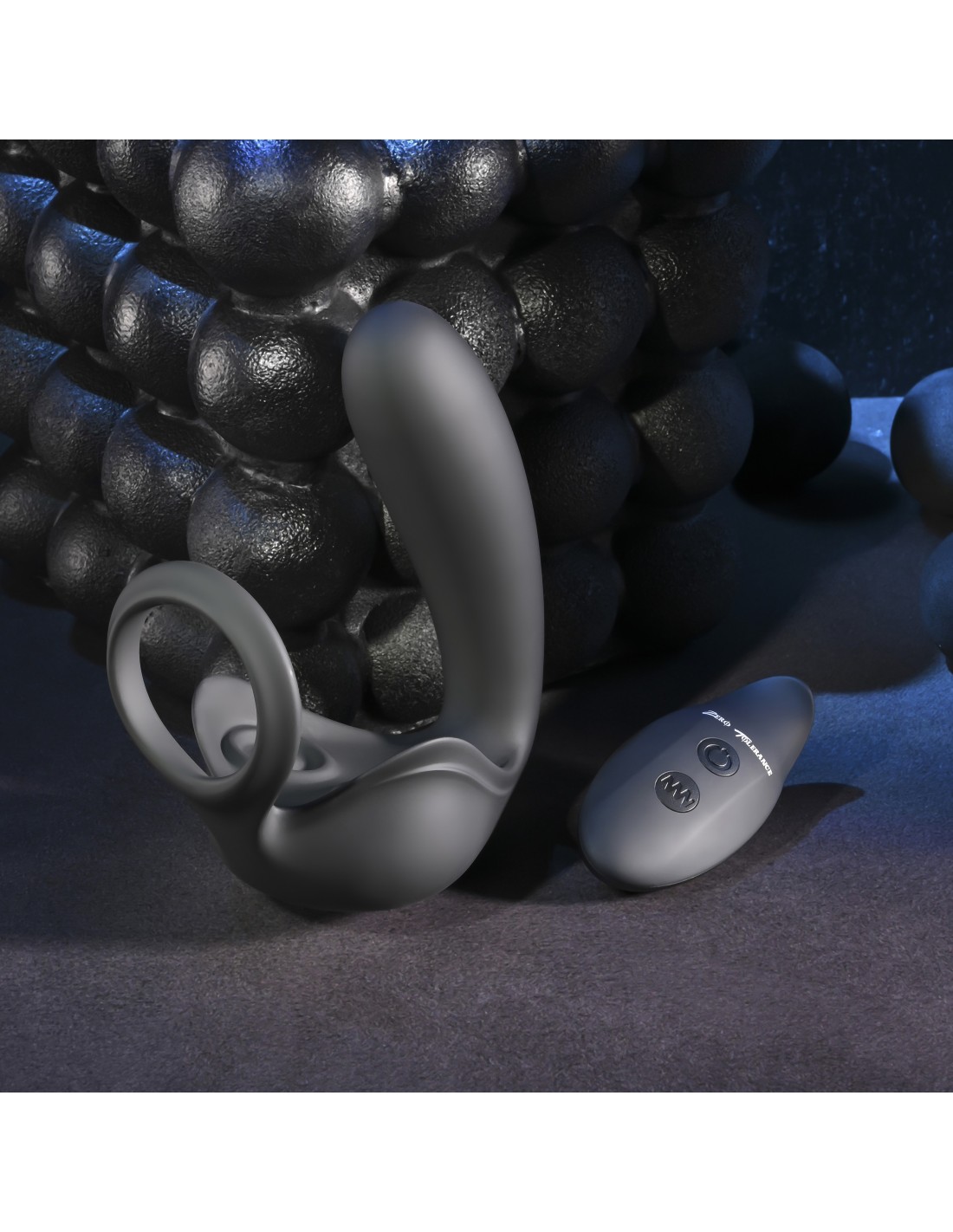 Experience an unforgettable massage with this unique prostate toy that cradles your balls and thrills them with full-coverage wings and two different pleasure points of tapping. The powerful vibrating prostate shaft is designed to reach the P-spot with ease, as the super-stretchy C-ring keeps the whole experience locked in for deep satisfaction. With a flexible neck at the shaft’s base to move with your body and an ergonomic control panel beneath the cradle, you can navigate directly – or via remote control up to 32 feet / 9,7 meters. Motors are controlled separately.