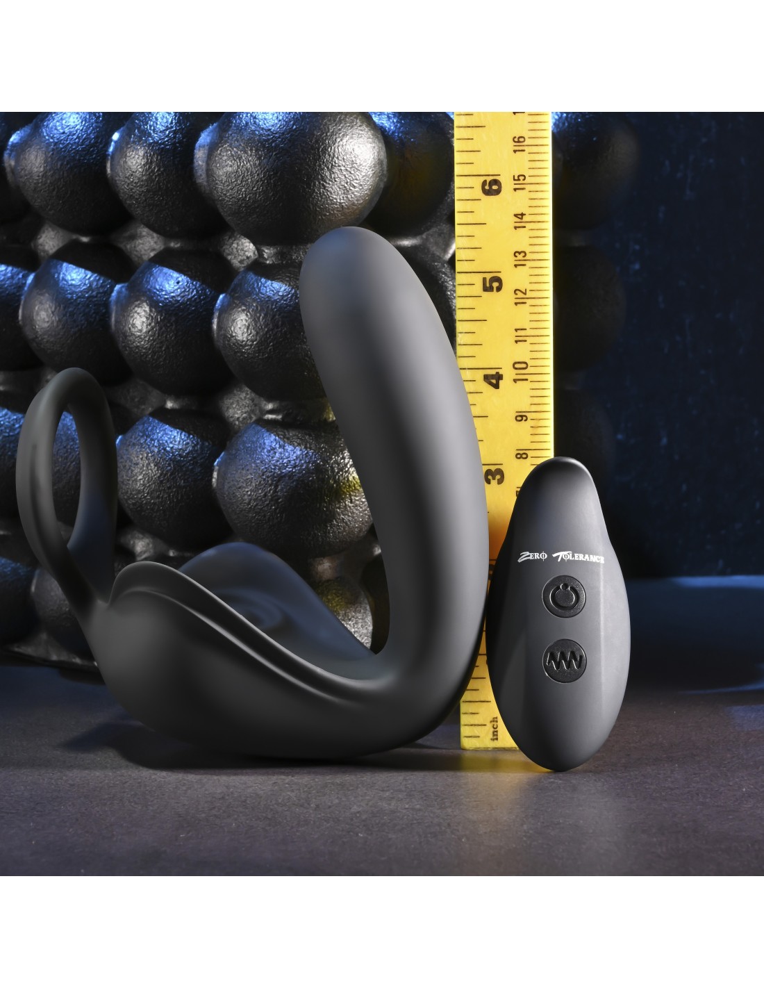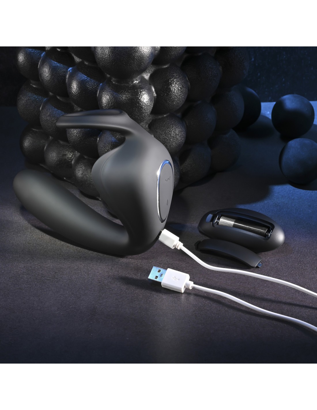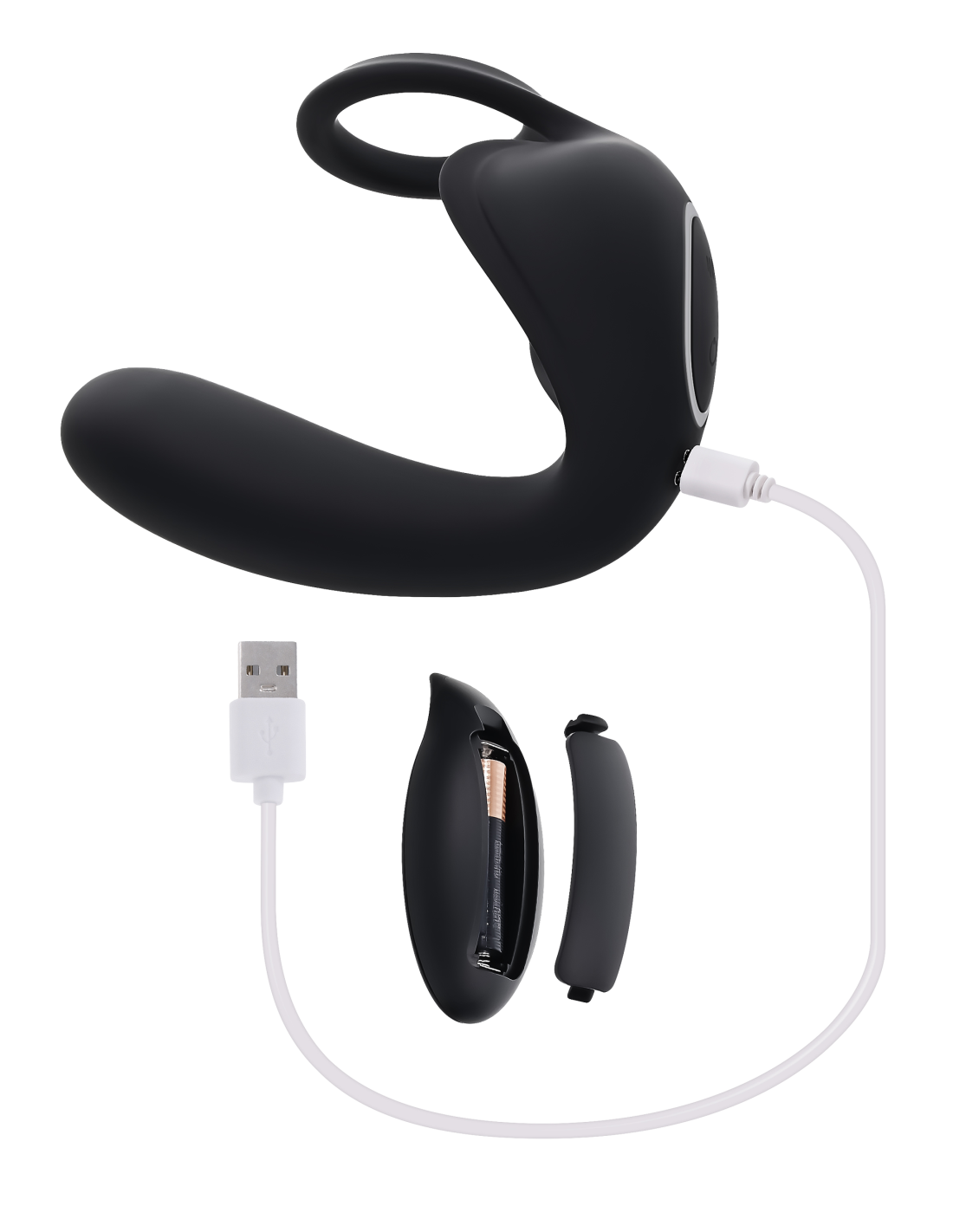 Experience an unforgettable massage with this unique prostate toy that cradles your balls and thrills them with full-coverage wings and two different pleasure points of tapping. The powerful vibrating prostate shaft is designed to reach the P-spot with ease, as the super-stretchy C-ring keeps the whole experience locked in for deep satisfaction. With a flexible neck at the shaft’s base to move with your body and an ergonomic control panel beneath the cradle, you can navigate directly – or via remote control up to 32 feet / 9,7 meters. Motors are controlled separately.