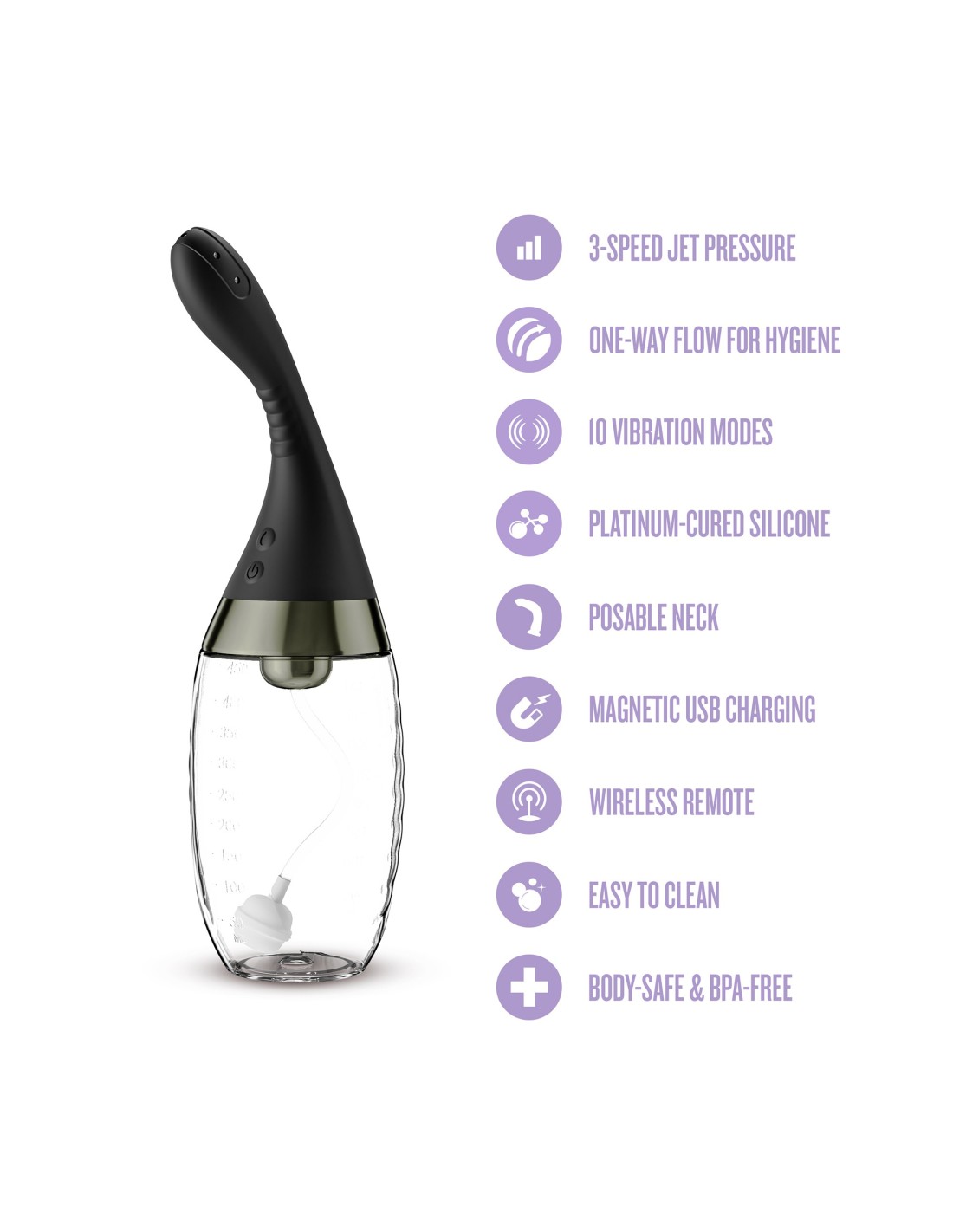Turn cleansing into a refreshing ritual with Anal Adventures Aqua Jet, a premium anal douche designed to elevate your prep routine. Featuring a customizable 3-speed jet system and 5 precision spouts, Aqua Jet delivers a deep, invigorating rinse that’s tailored to you. Its one-way flow design helps prevent backflow, while 10 powerful vibration modes help relax your body and support a more thorough clean. The posable, ergonomic neck moves with you, bending effortlessly for comfortable reach and easy positioning. Made from body-safe, platinum-cured silicone with a silky-smooth finish, Aqua Jet is gentle on skin and designed for thorough, comfortable cleansing. It’s IPX7 waterproof, USB rechargeable, and easy to disassemble for fast cleaning and care. Perfect for beginners or experienced users, Aqua Jet transforms cleansing from routine to ritual, leaving you feeling fresh, relaxed, and ready for exploration.