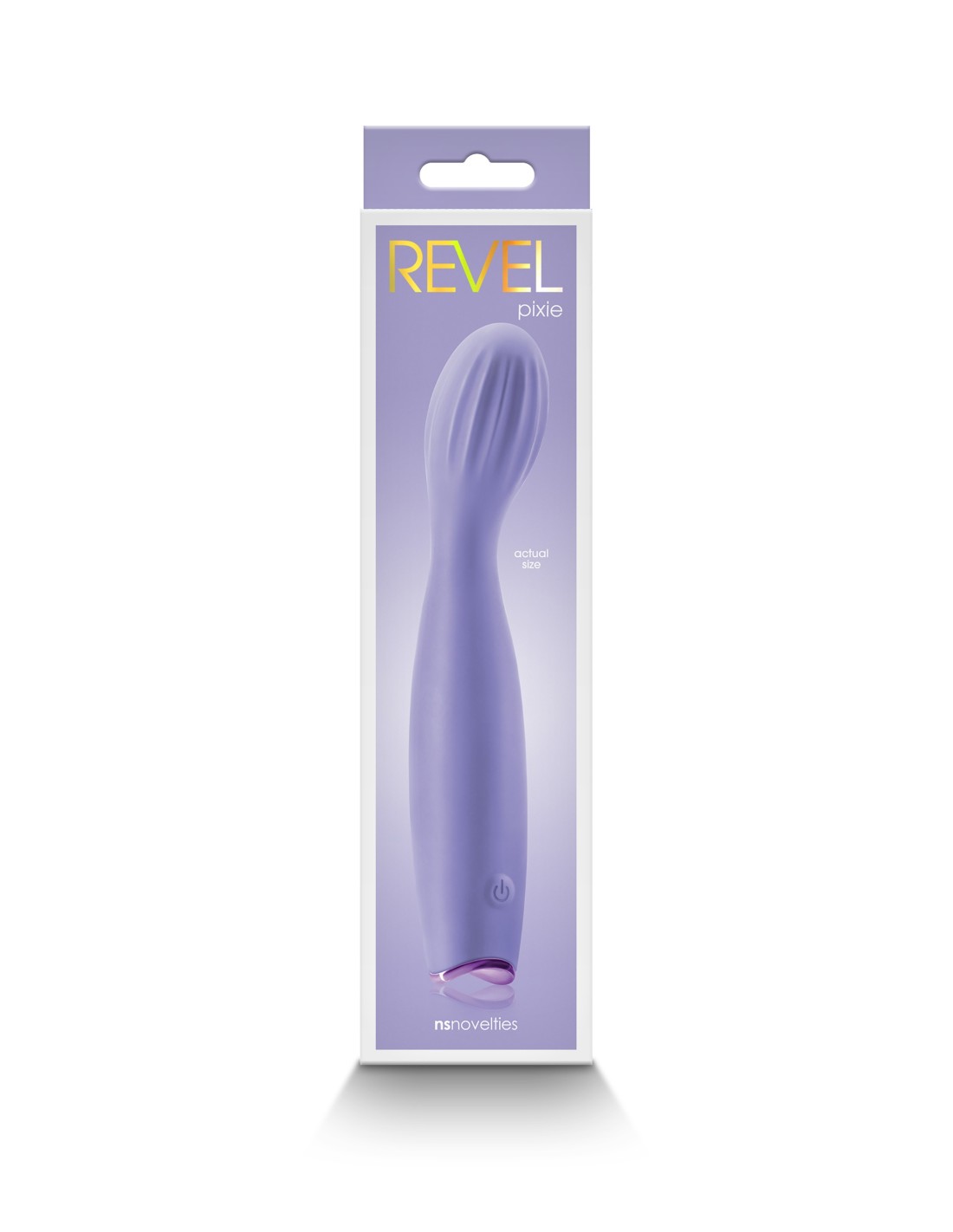 Pixie de Revel presenta un eje curvo flexible con una cabeza bulbosa para una máxima estimulación del punto G. Pixie es recargable, fabricado en silicona grado platino y resistente al agua. Apto con todos los lubricantes.