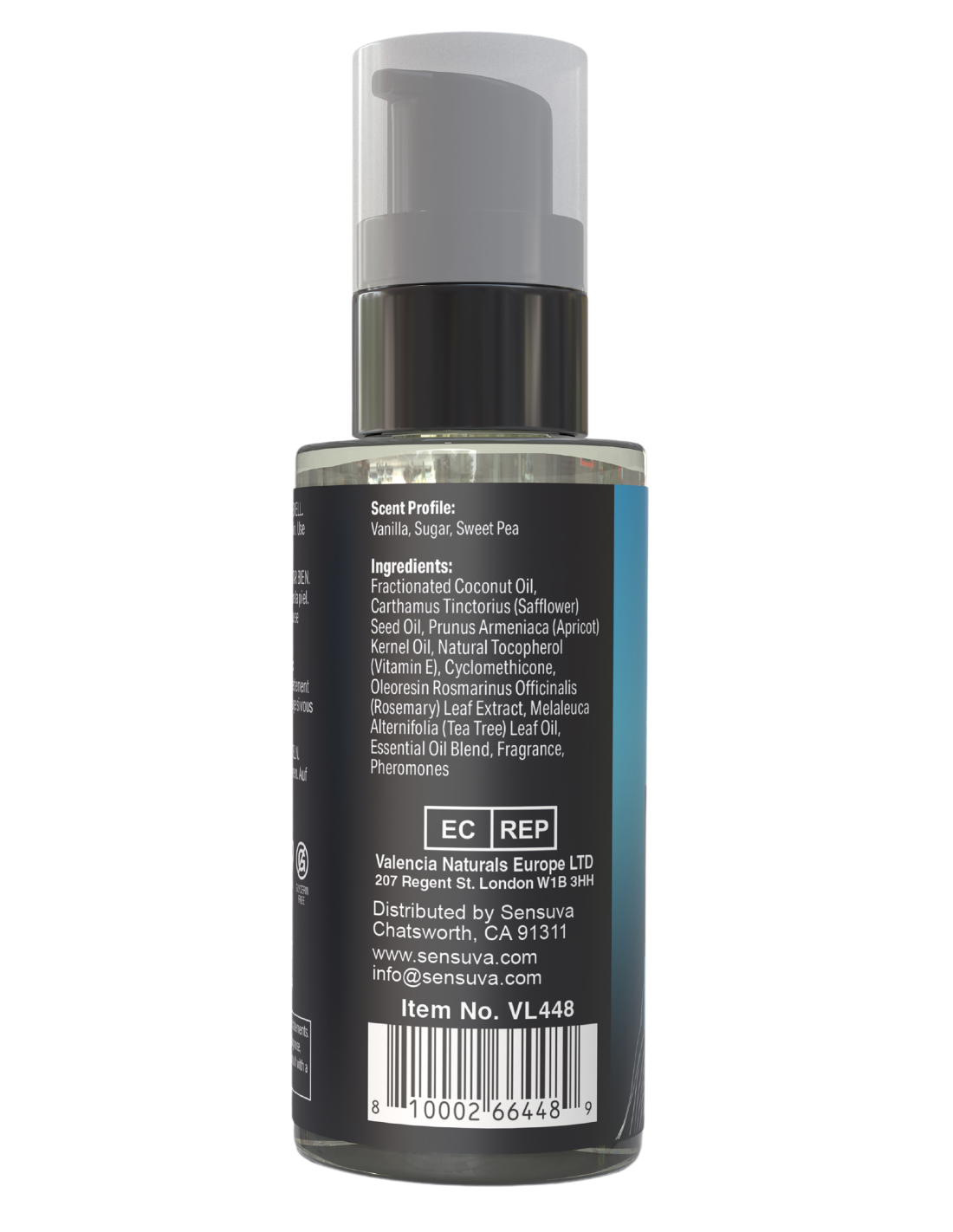 Fractionated Coconut Oil, Carthamus Tinctorius (Safflower) Seed Oil, Prunus Armeniaca (Apricot) Kernel Oil, Natural Tocopherol (Vitamin E), Cyclomethicone, Oleoresin Rosmarinus Officinalis (Rosemary) Leaf Extract, Melaleuca Alternifolia (Tea Tree) Leaf Oil, Essential Oil Blend, Fragrance, Pheromones