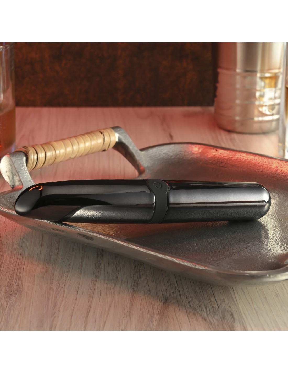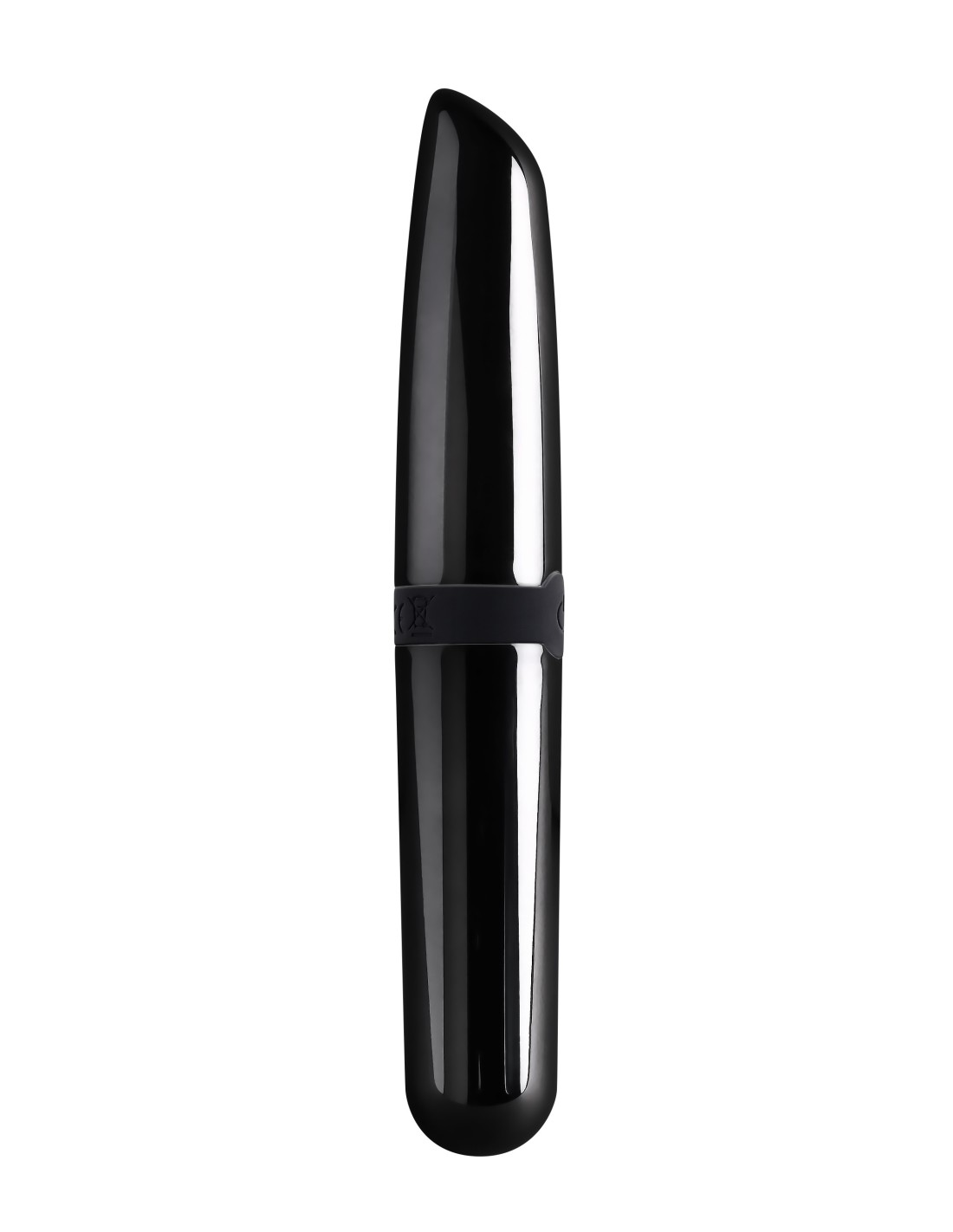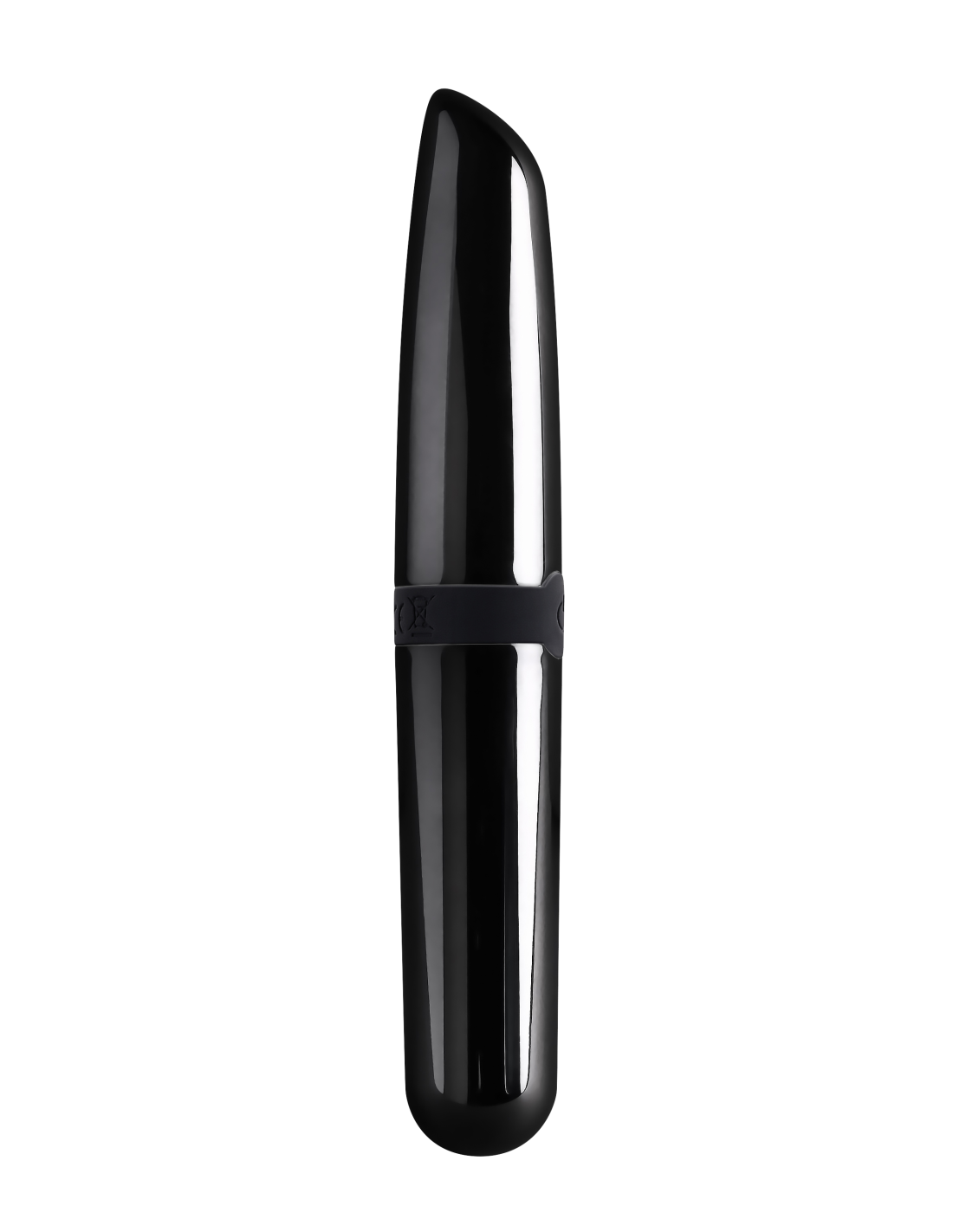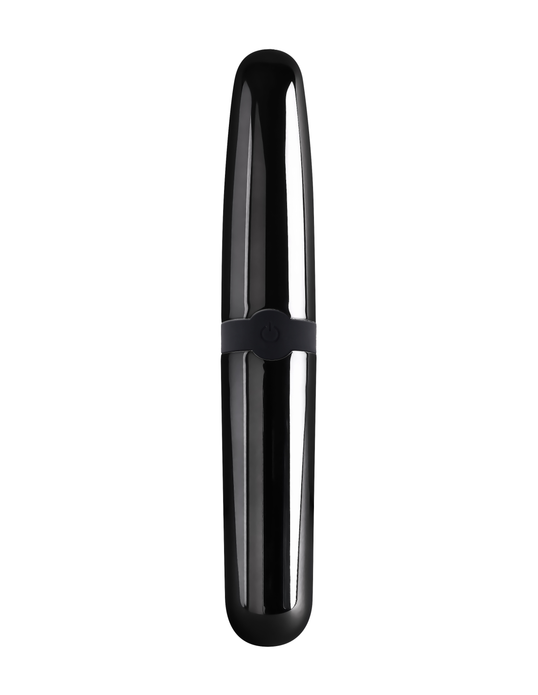 Una potente bala vibratoria con un elegante aspecto cromado negro. Doble extremo con forma de lápiz labial en un lado y punta redondeada en el otro.