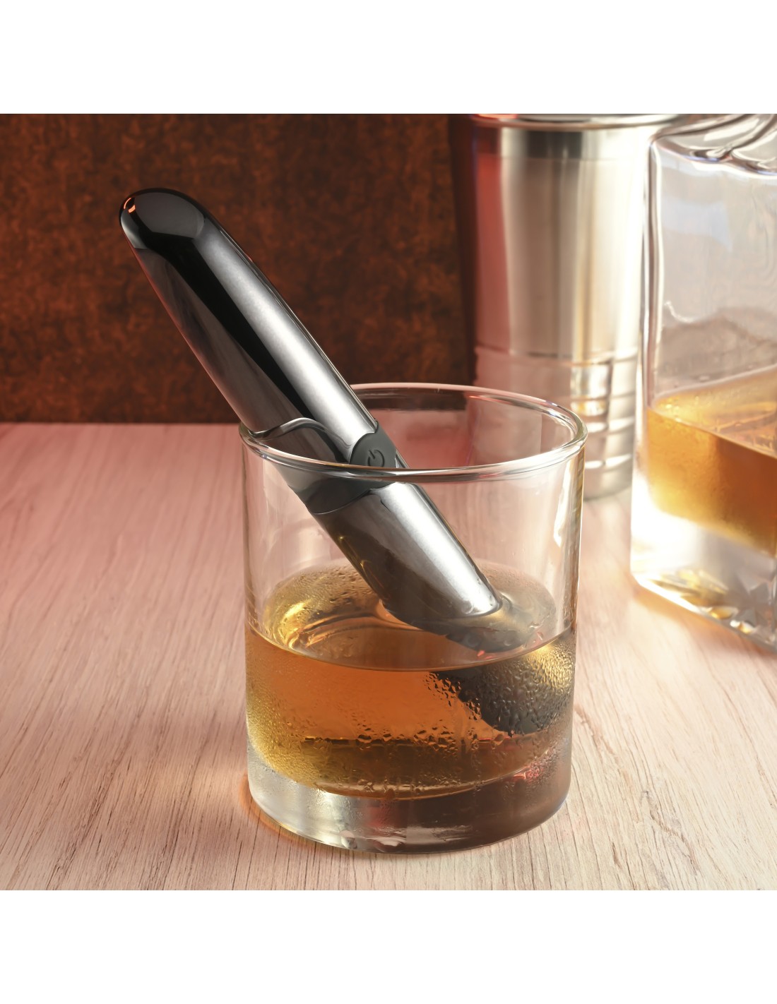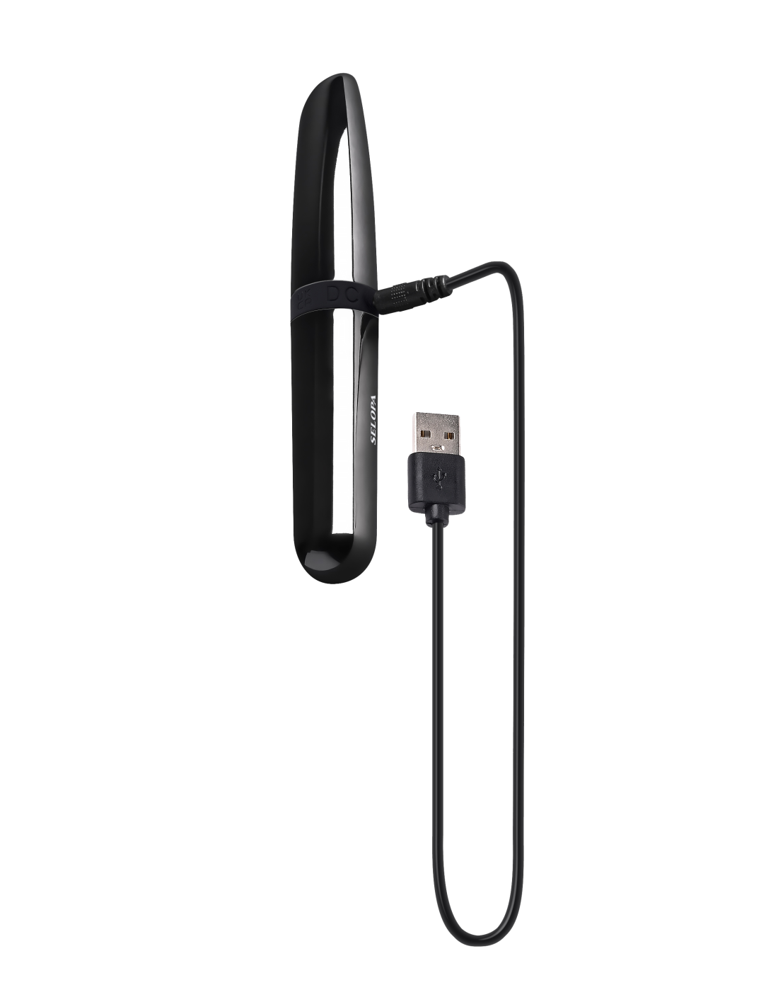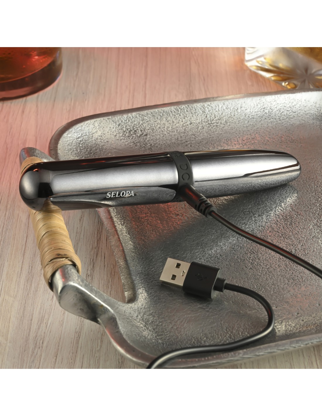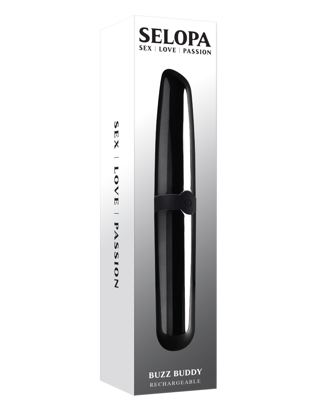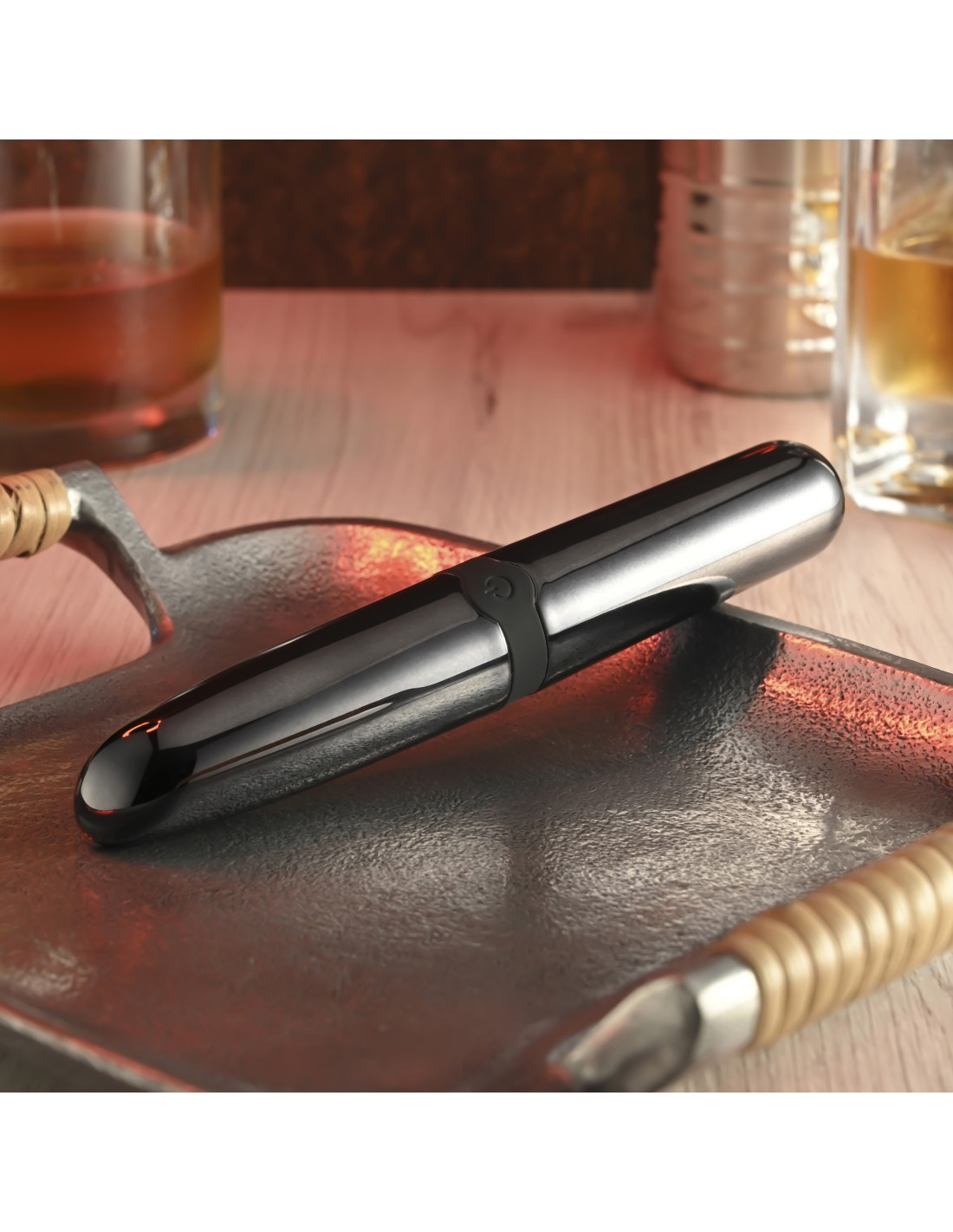 Una potente bala vibratoria con un elegante aspecto cromado negro. Doble extremo con forma de lápiz labial en un lado y punta redondeada en el otro.