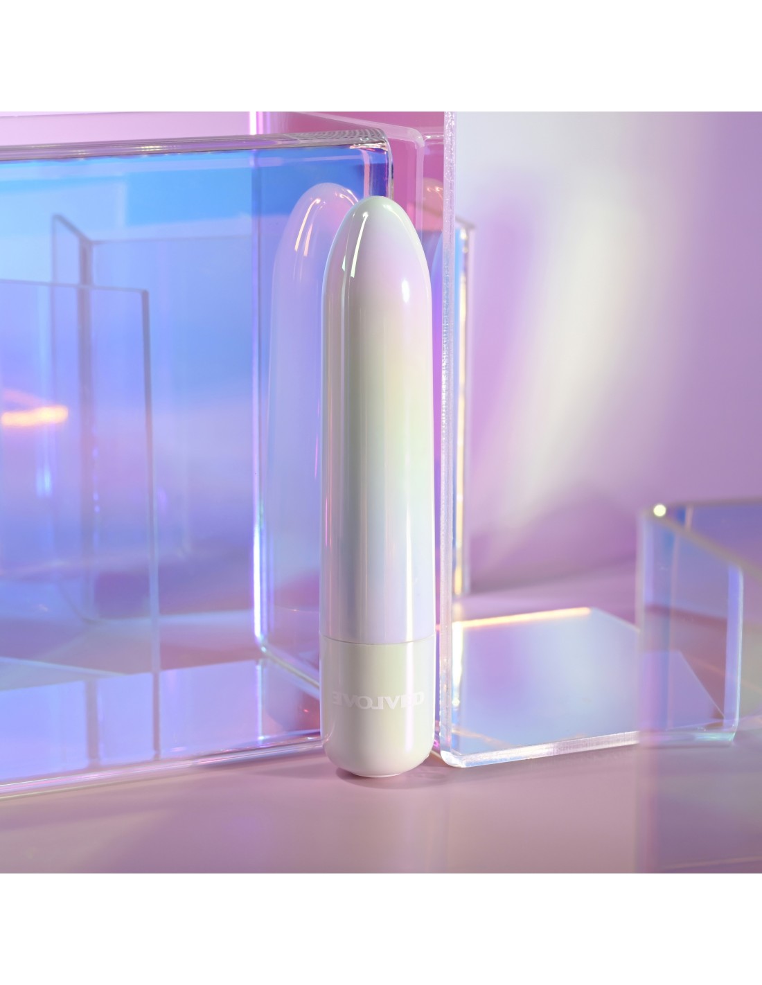 This lipstick-shaped bullet dazzles with pearly iridescence and intense vibrations. Compact and stylish, it features a sculpted, flat tip designed to target your most sensitive areas. With a simple one-touch control, it's easy to use, even underwater, as it's fully submersible.