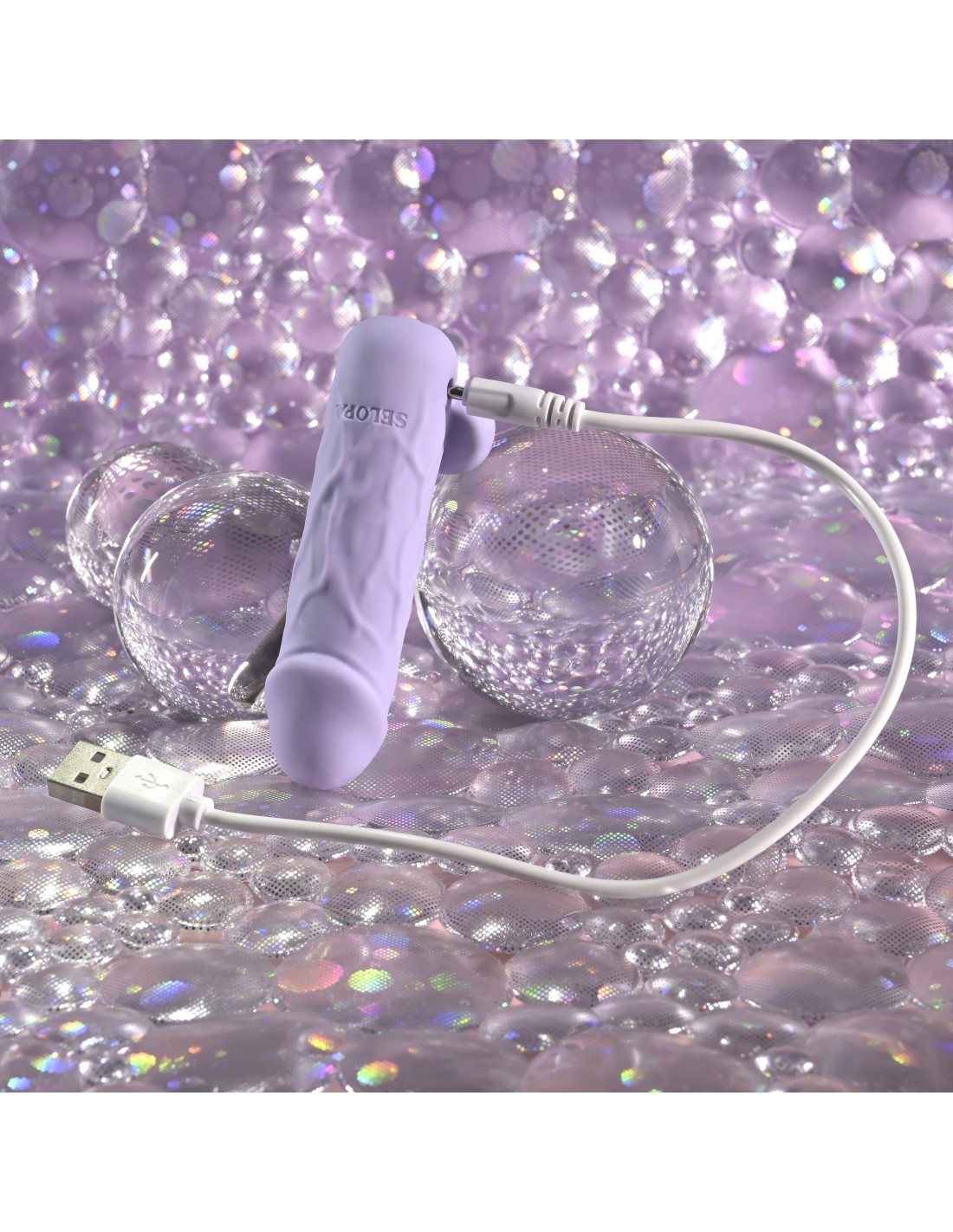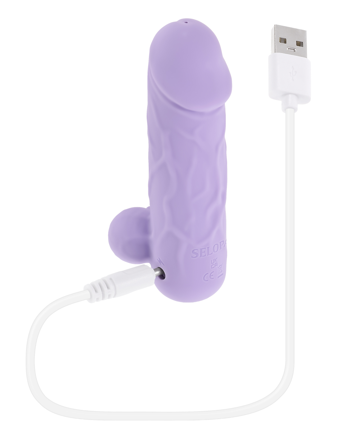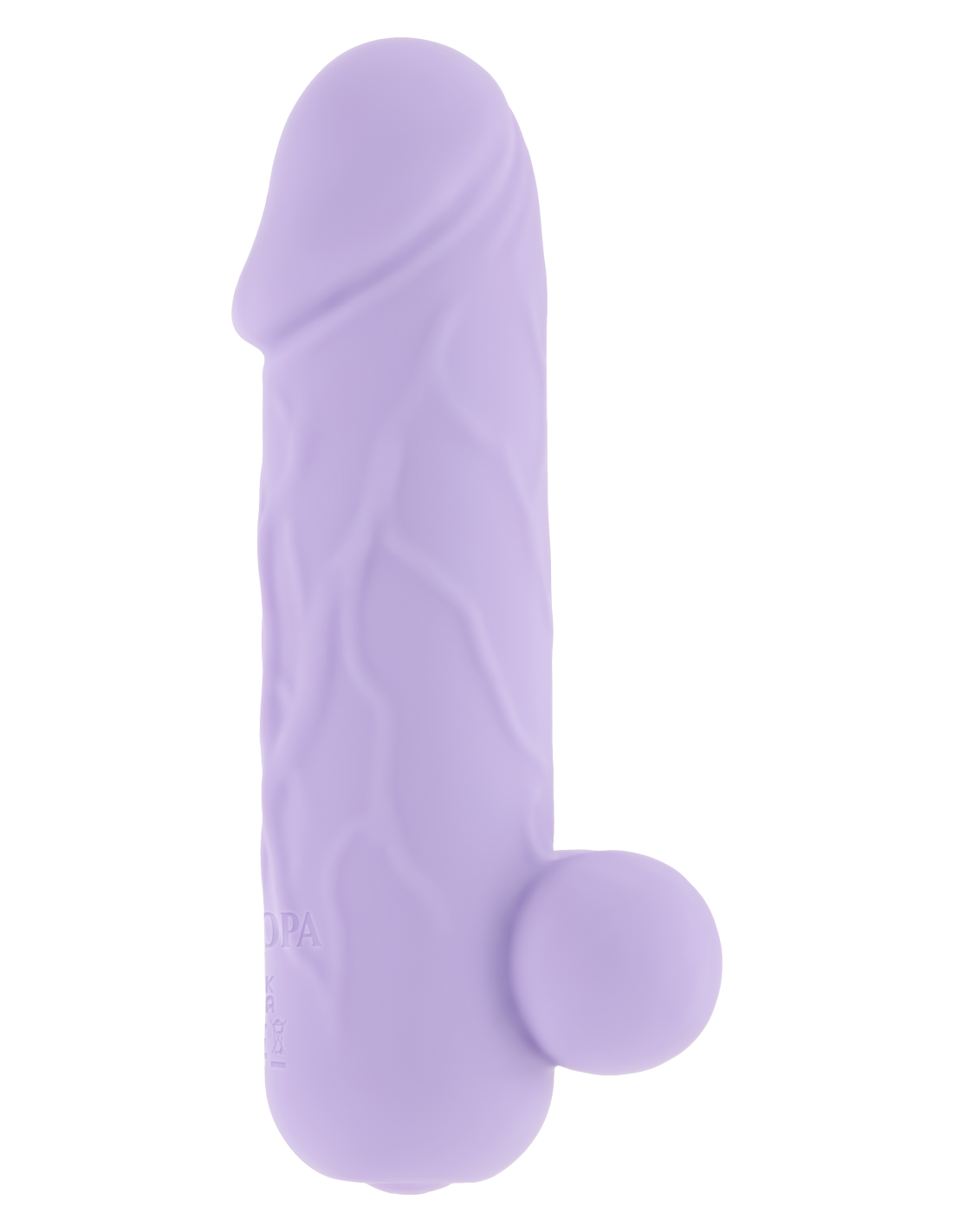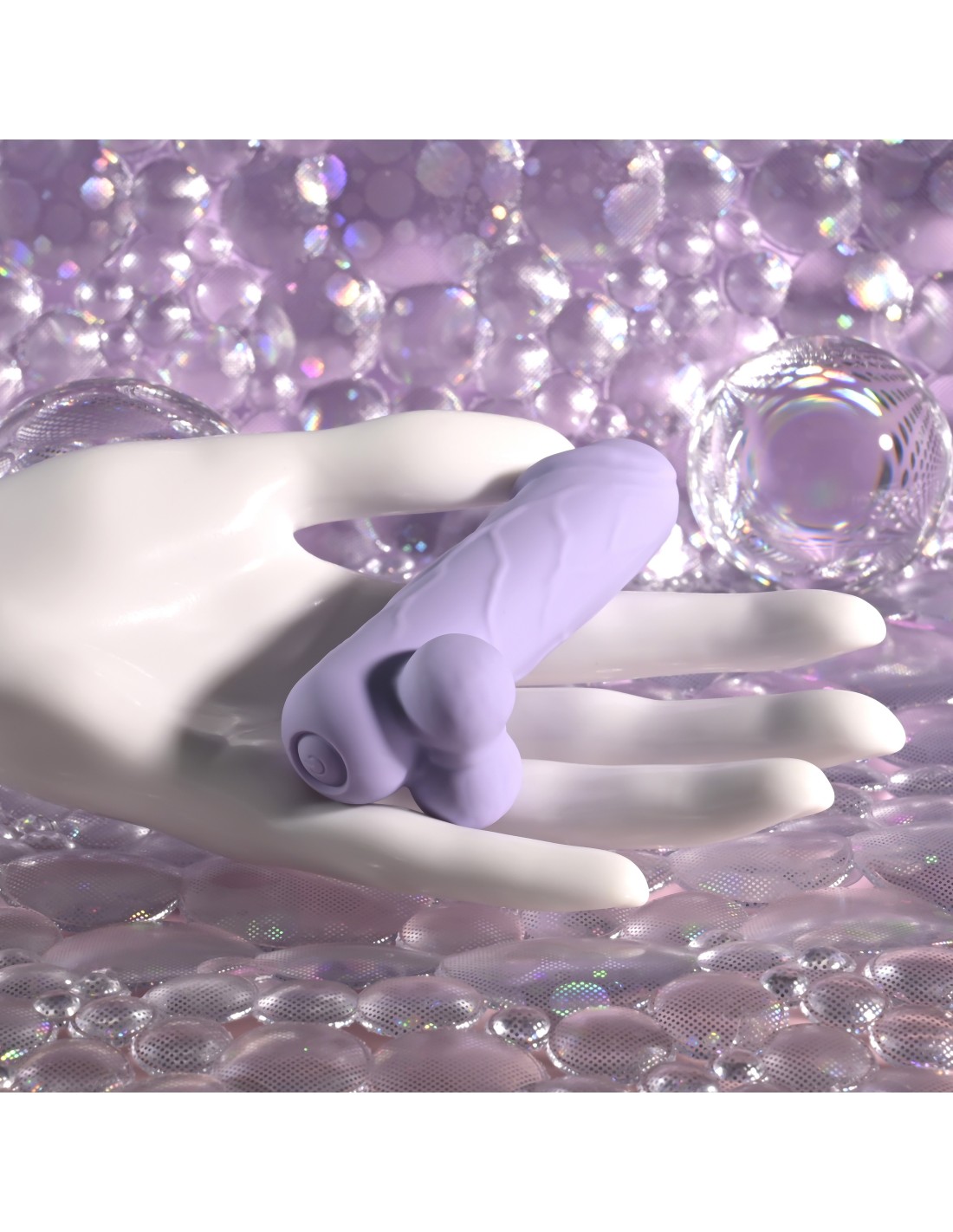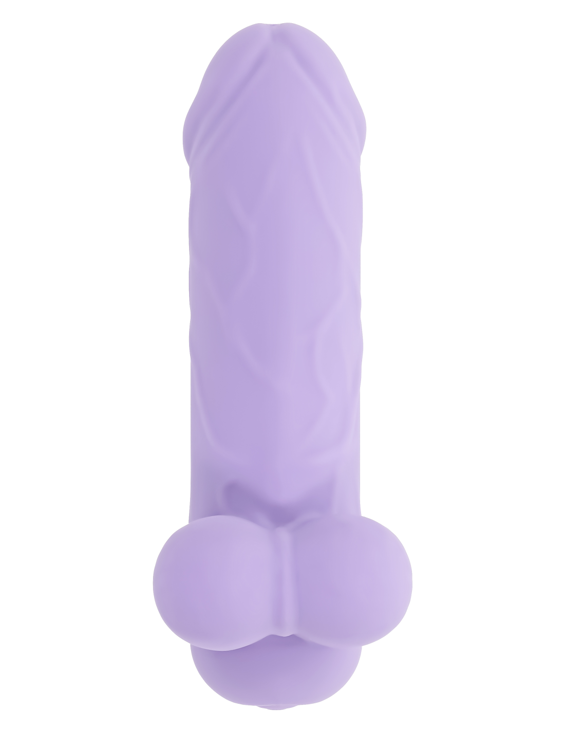 This vibrating bullet features a phallic-shaped silicone sleeve with two round balls at its base that buzz along with the powerful shaft motor.