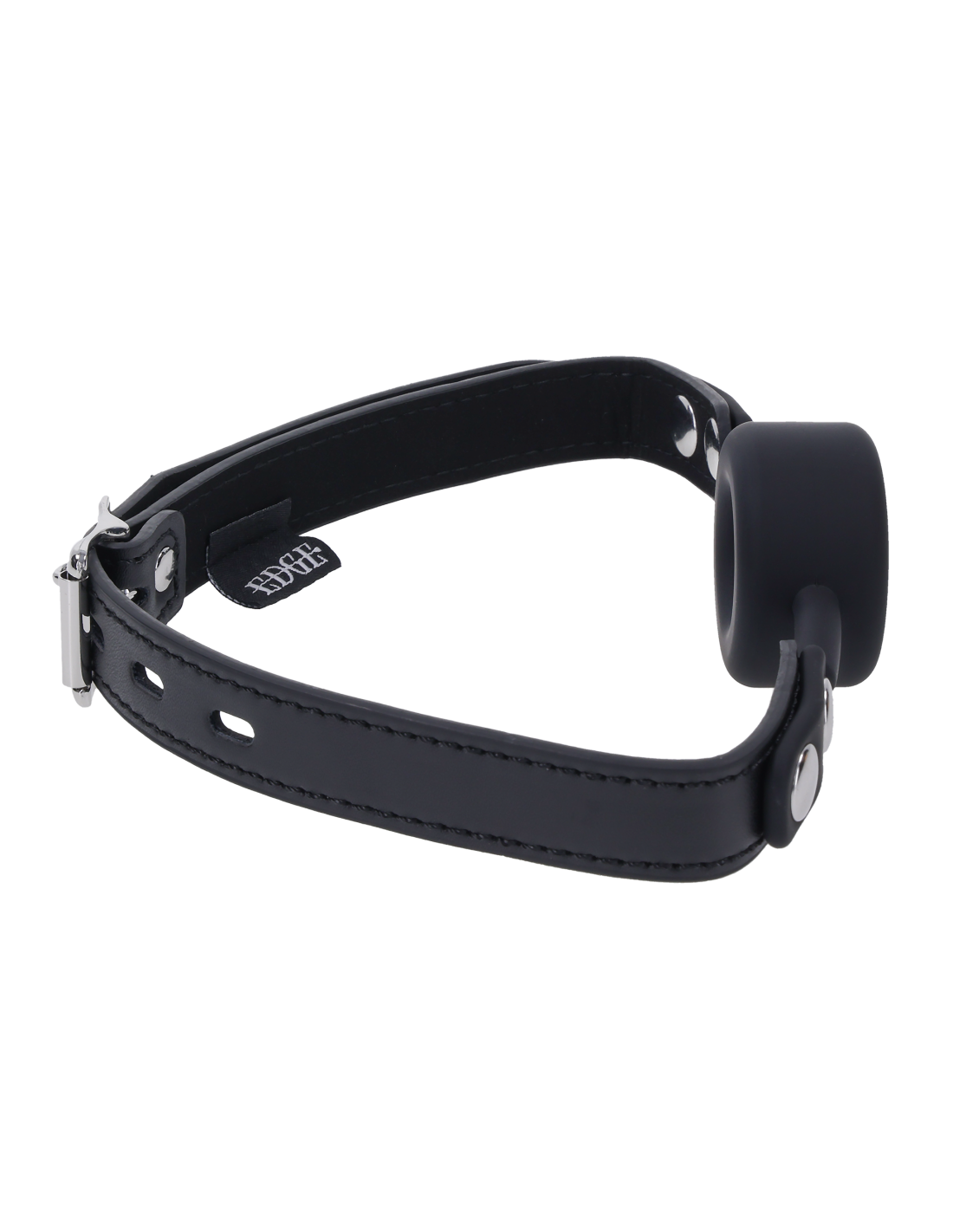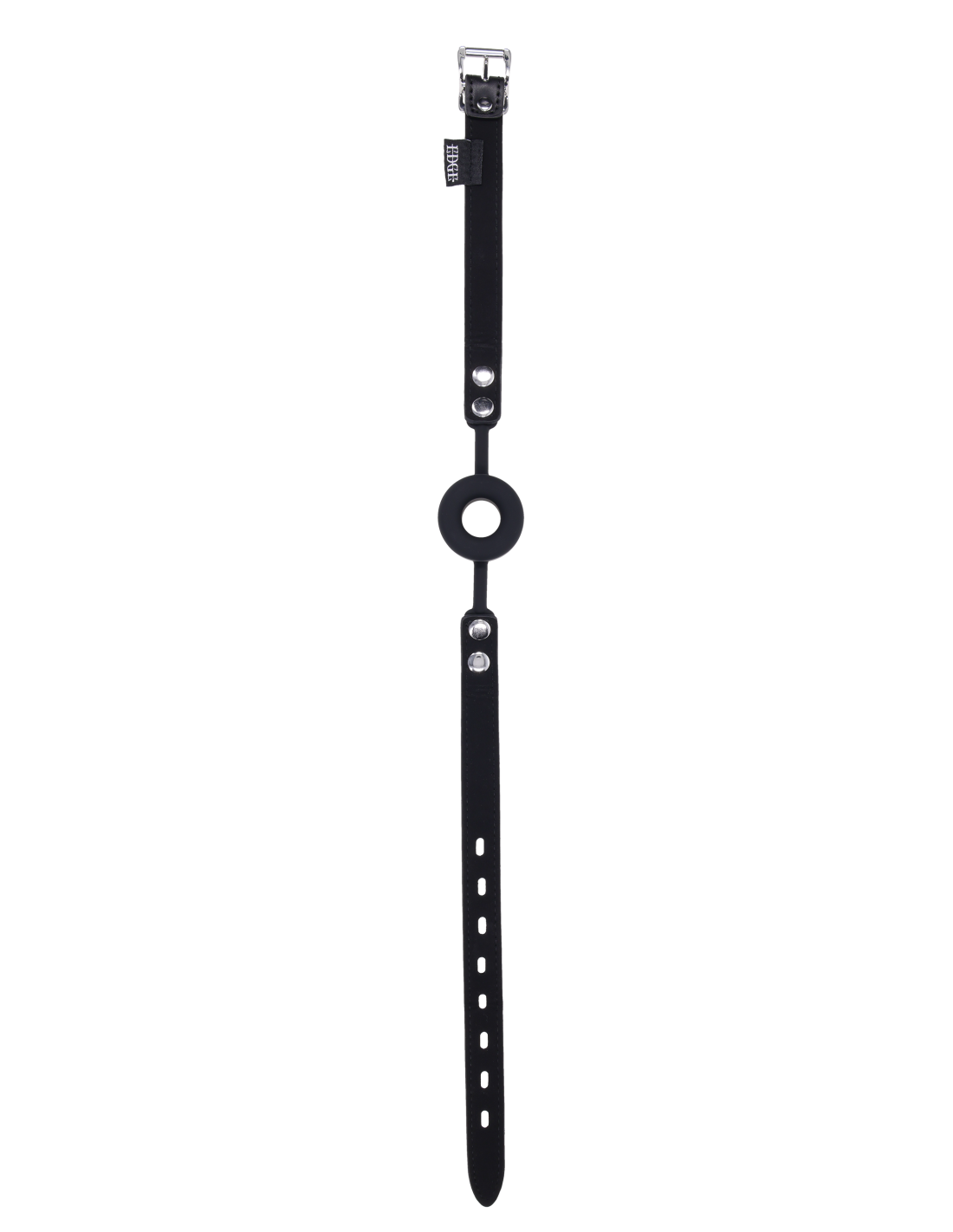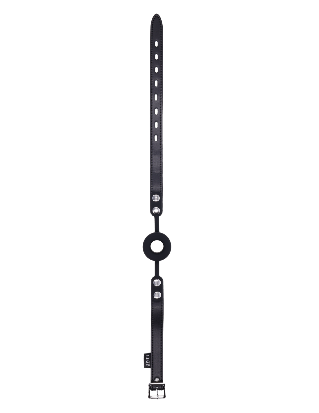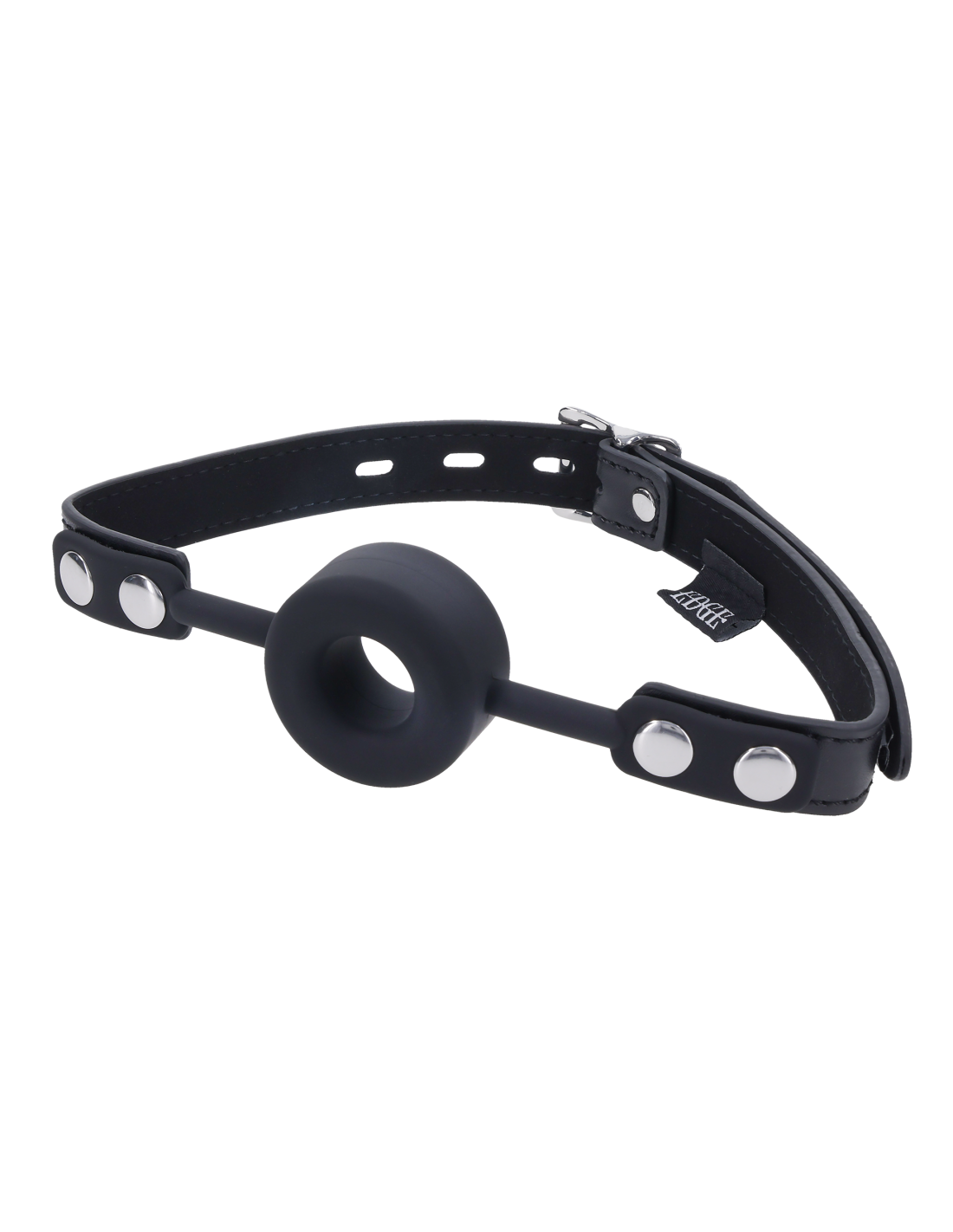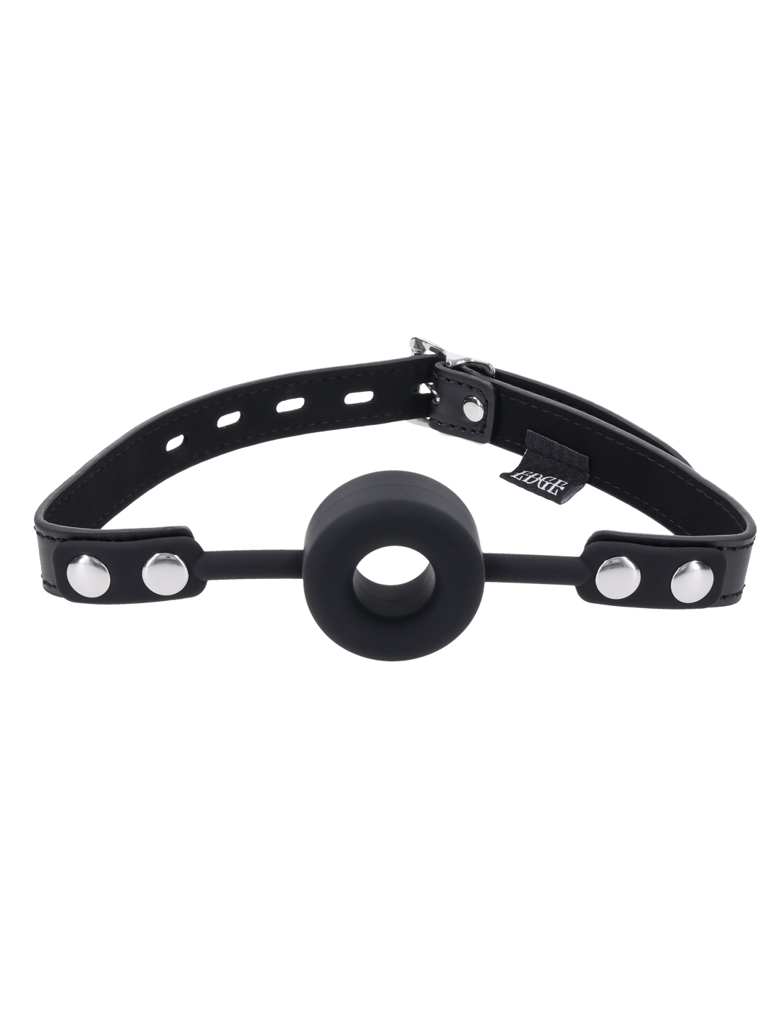 Silence meets submission. The Edge® Silicone Ring Gag is engineered to keep mouths open, obedient, and under control. The thick, breathable silicone ring holds its shape, enforcing compliance and limiting speech while maintaining steady airflow. A durable black faux leather strap with polished silver hardware secures the gag in place, delivering firm restraint with an unmistakably dominant aesthetic. The adjustable buckle includes a lock-ready loop for added resistance, giving the dominant complete authority over how long the gag stays secured. Whether used for training, restraining, or edging, this gag delivers unyielding discipline with a sleek, unmistakable Edge® finish.