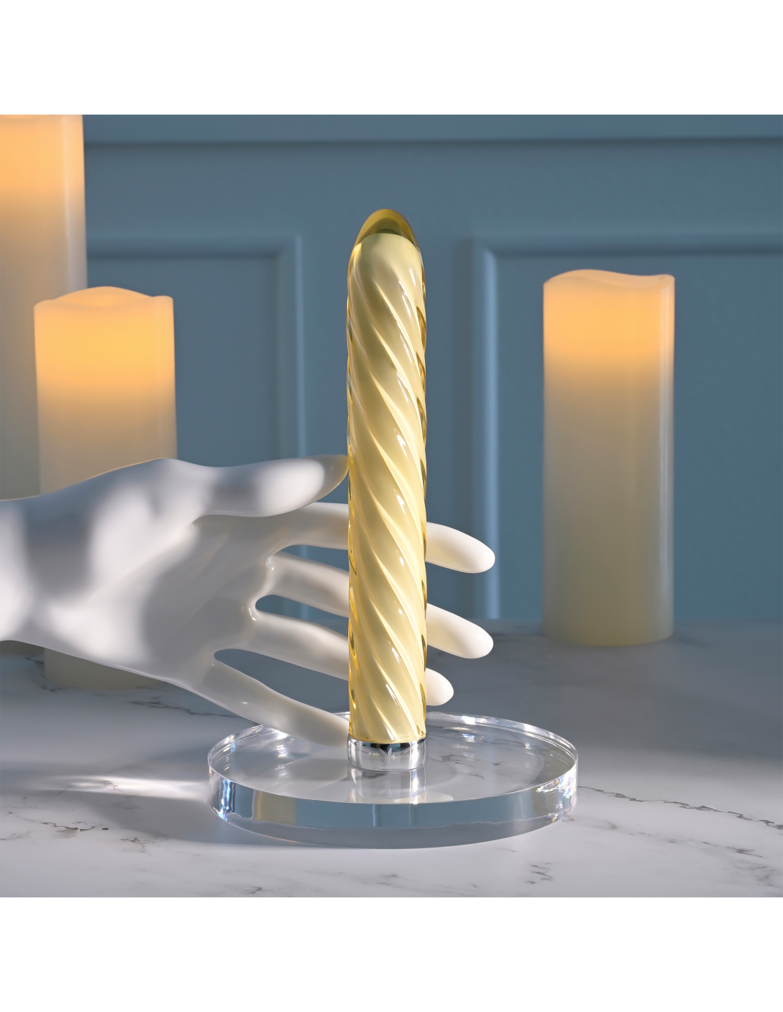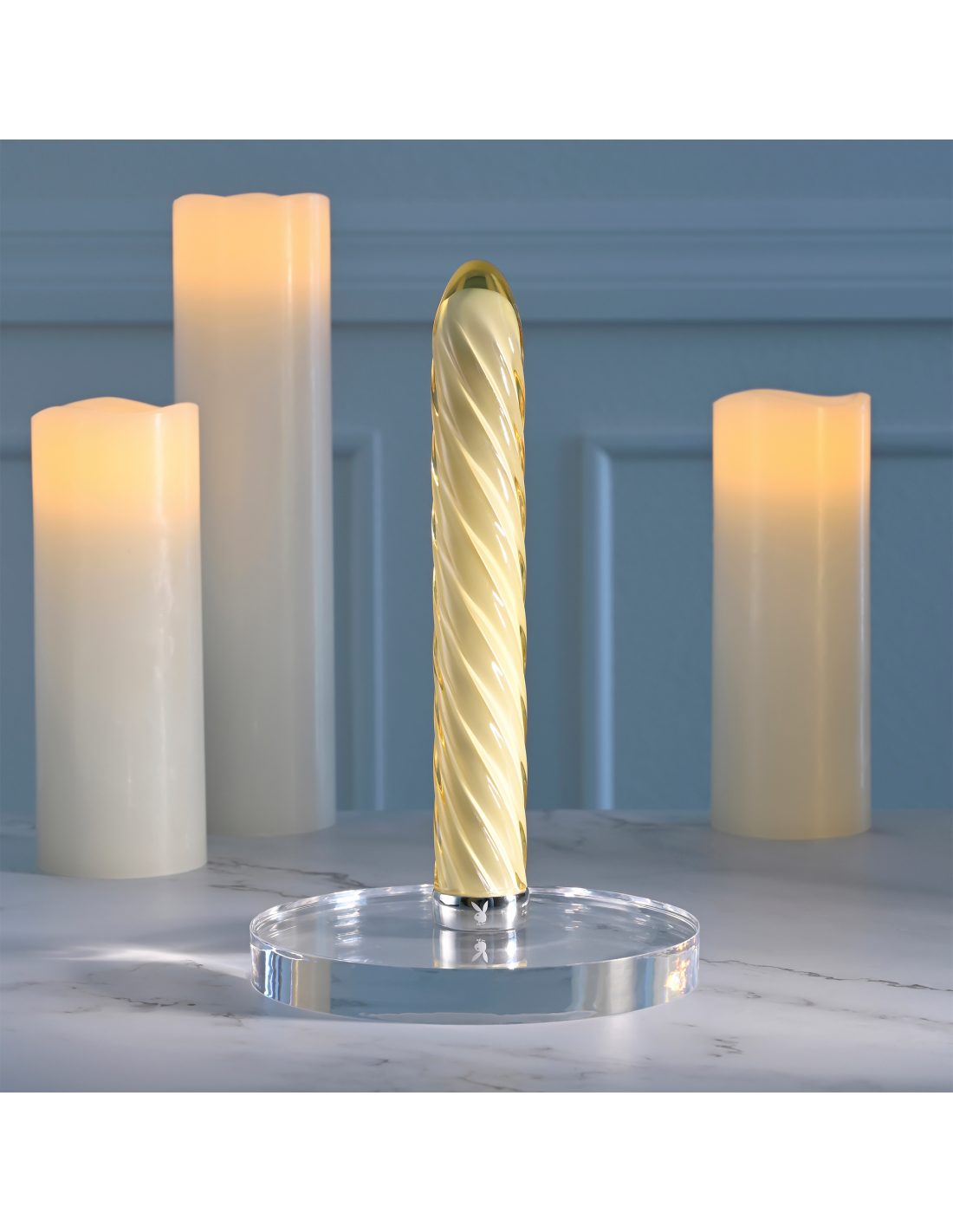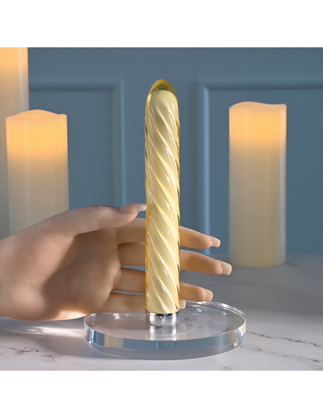 Surrender to a powerful Twist of Fate with the hypnotic twirling spirals on this chic Glass Vibrator. Tapered at the tip for easy entry, the uniquely smooth and slippery glass feel is like no other material against the skin - and its nonporous surface is hygienically superior. Ramp up through 10 powerful speeds and rhythms to customize your experience, and if you’re feeling adventurous, try temperature play by holding the toy under warm or cool water before use.