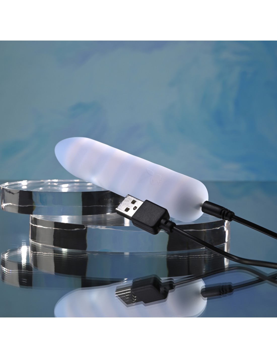 Dream big and sparkle more with this Vibrating Bullet that looks just like a unicorn horn. Made from silky liquid silicone that feels oh-so-smooth against the skin, this powerful toy ends in a pointed tip that charms its way into hard-to-reach spots and spreads intense pleasure waves everywhere it touches. Amp up to 10 speeds and rhythms as you enjoy the frosted look of the white swirls on a dreamy powder blue. Finally, a bullet vibe that's as magical and rare as you are!