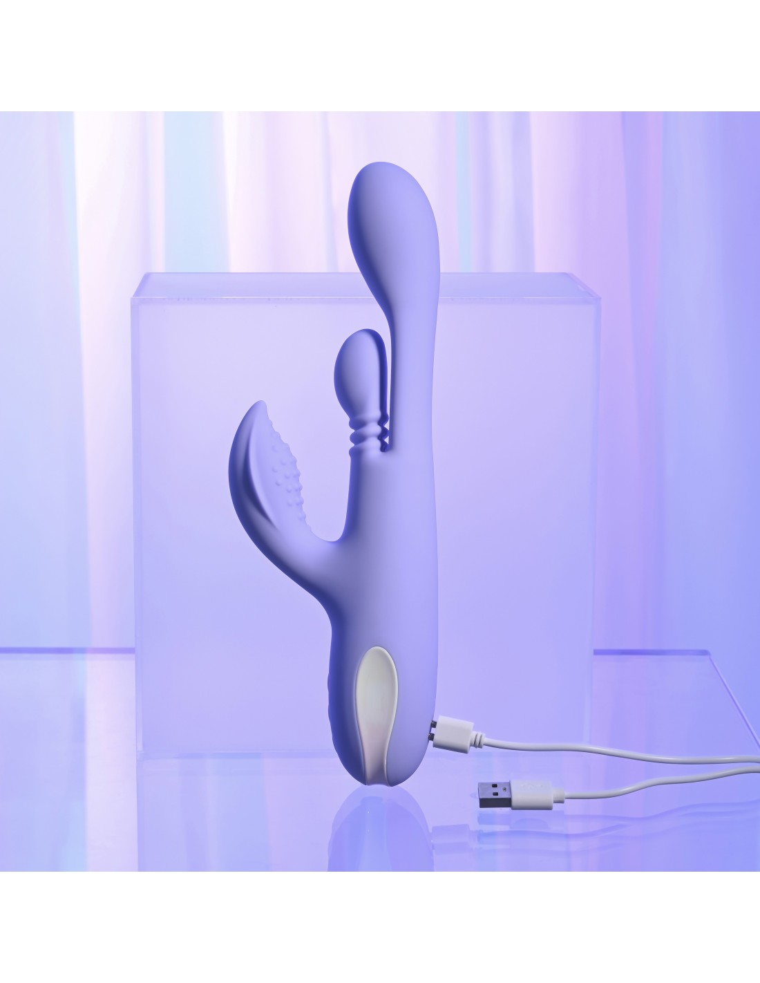 • Vibration: 10 speeds & rhythms in 3 motors (vibration in shaft head, nub & stimulator, circling/thrusting in nub)