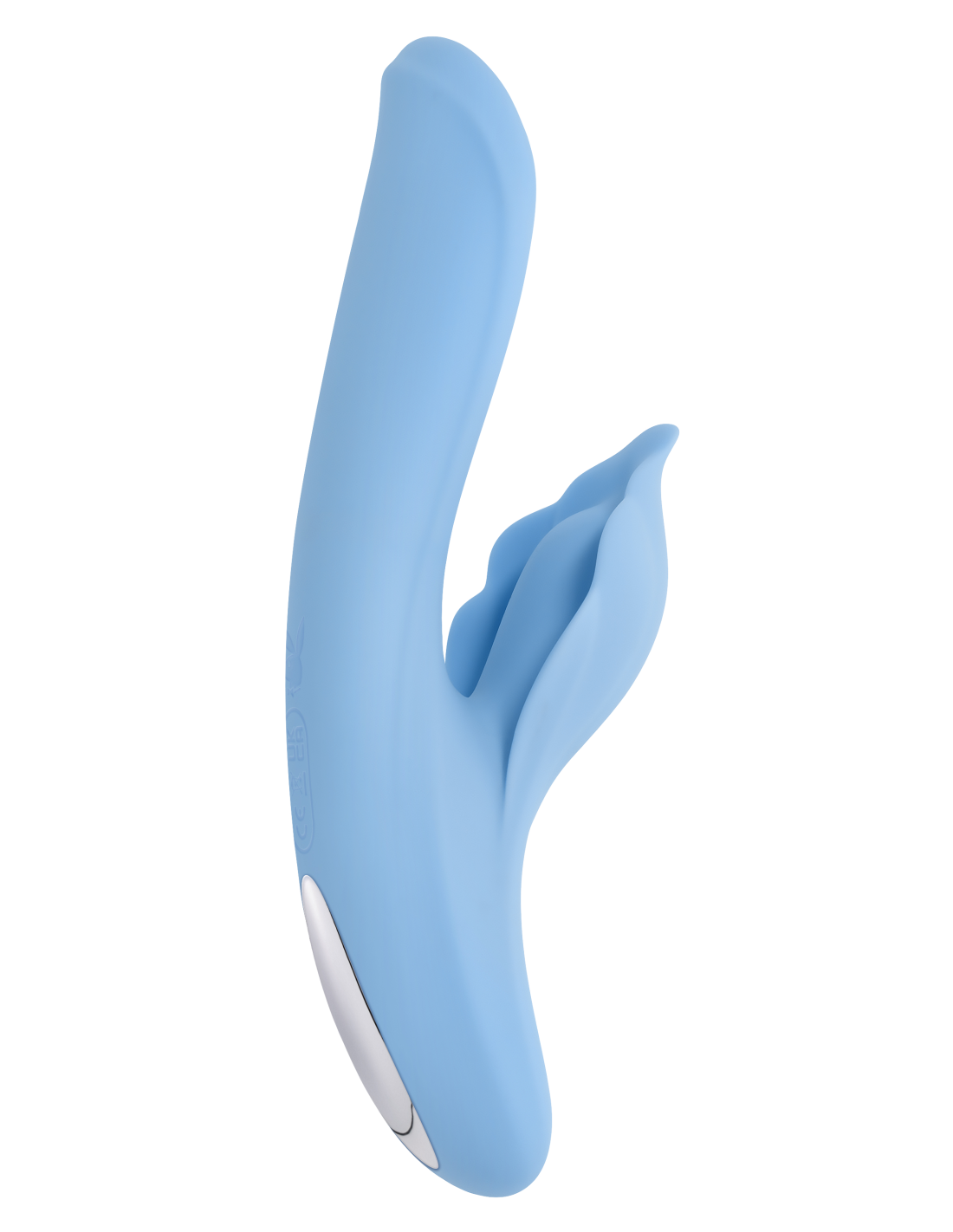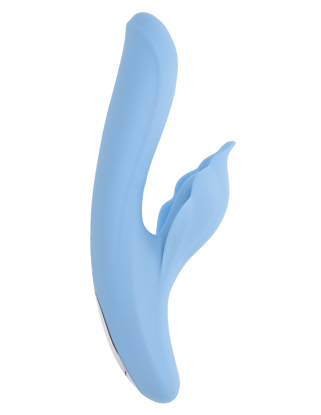 Come into full bloom with this Thrusting, G-spot tapping, Heating Dual Vibrator that features a unique, full-coverage clitoral stimulator. The gently curved shaft thrusts in multiple speeds as it finishes at the tip with a tapping function to excite your G-spot. Meanwhile, a large, flexible silicone petal envelops the vulva for tantalizing indirect vibrations while the stiff stamen inside the flower presses against the clitoris with delicious intensity. Engage the heating function to unlock a warming experience that completes the extraordinary bouquet of pleasures.