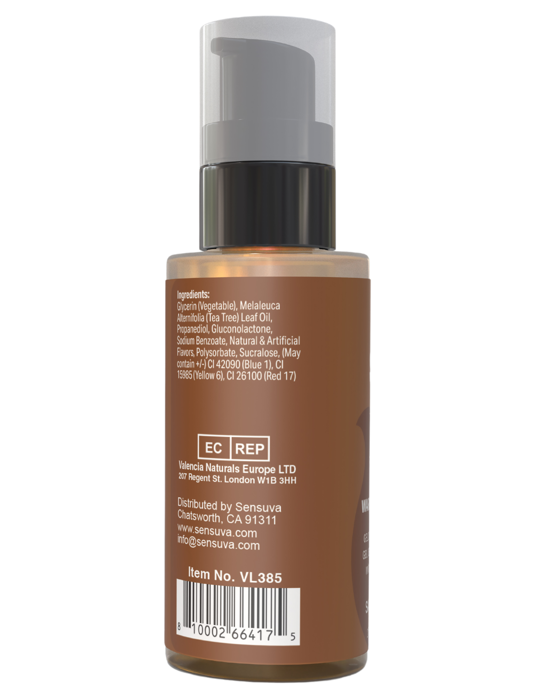Glycerin (Vegetable), Melaleuca Alternifolia (Tea Tree) Leaf Oil, Propanediol, Gluconolactone, Sodium Benzoate, Natural & Artificial Flavors, Polysorbate, Sucralose, (May contain +/-) CI 42090 (Blue 1), CI 15985 (Yellow 6), CI 26100 (Red 17)