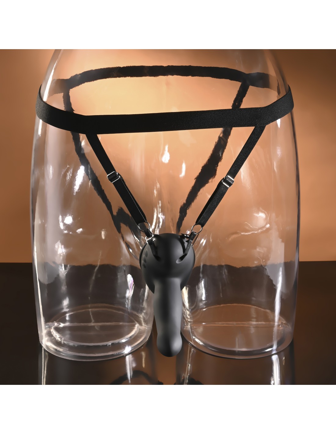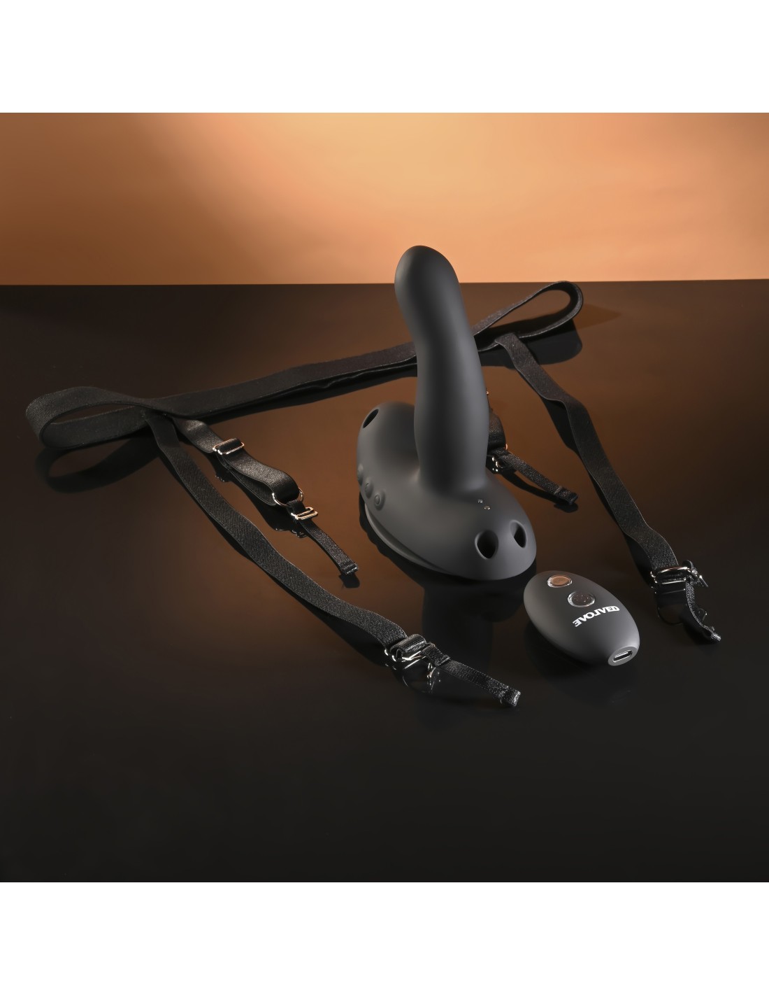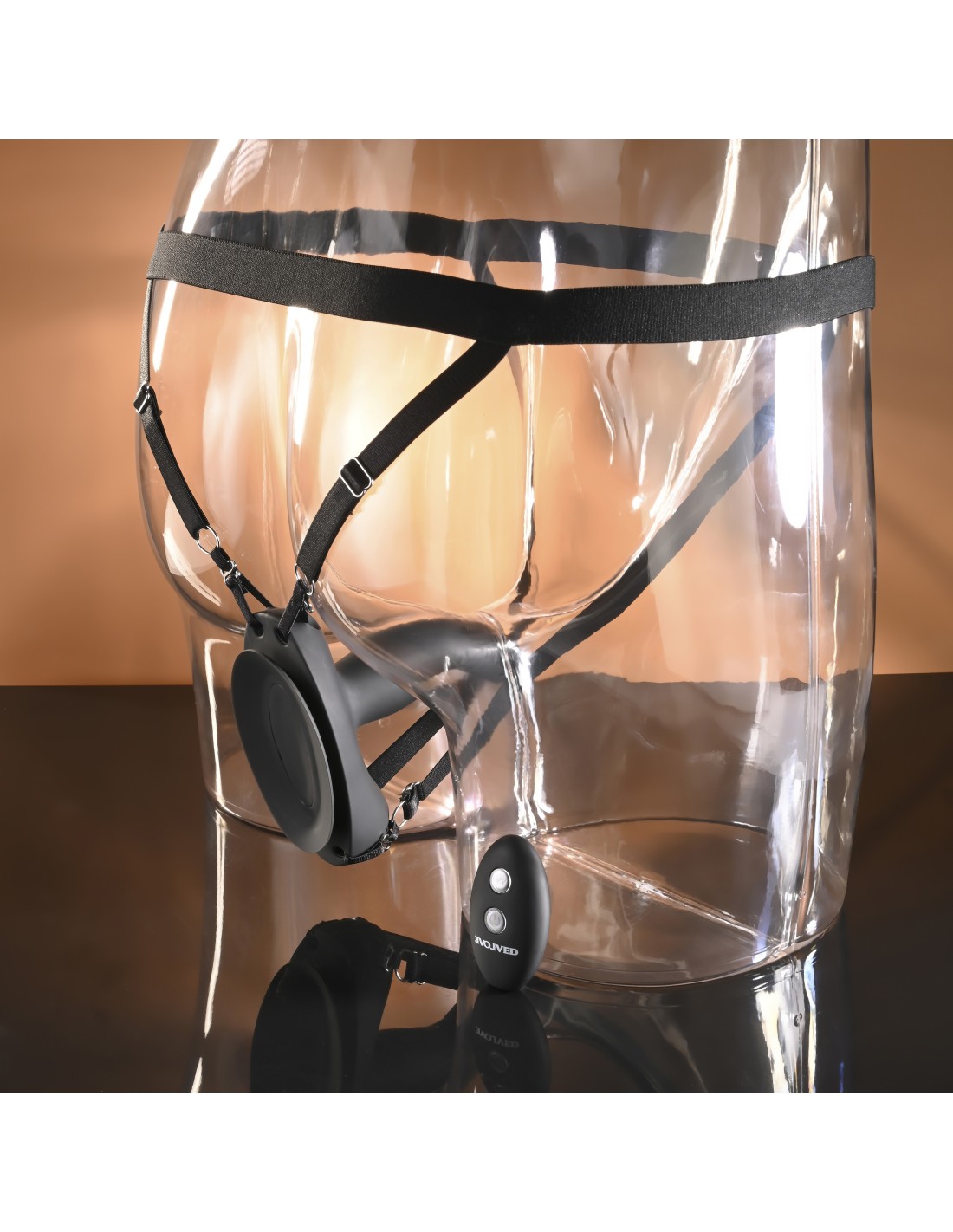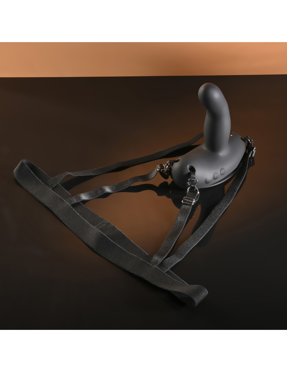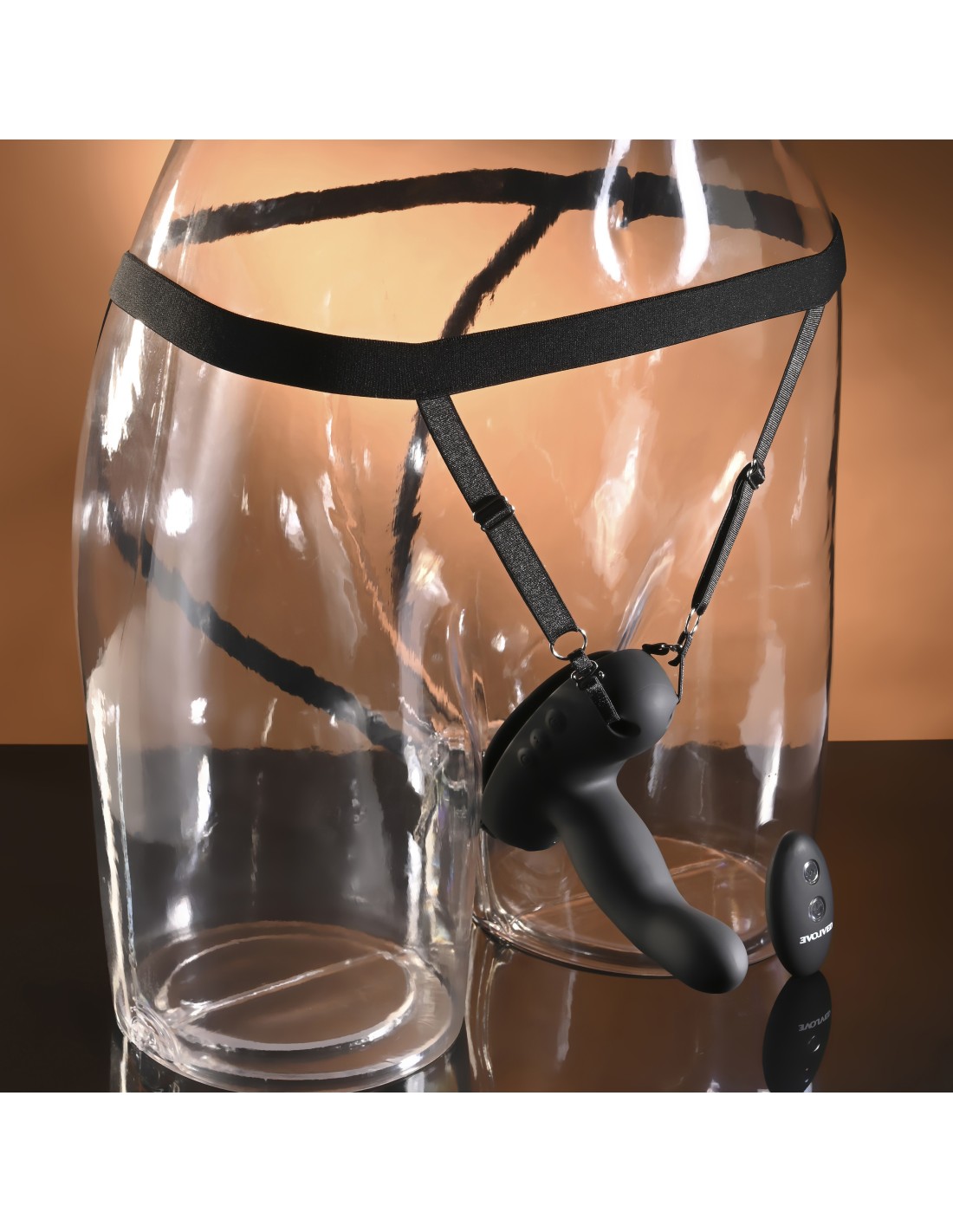 Come Closer to intense ecstasy with this remote-control pleasure-base vibrator and its tantalizing come-hither motion. Choose your rhythm and allow the reverberations to send waves of pleasure throughout your entire body while the hard-working shaft beckons the G-spot with an independently controlled motor. All with a harness to hold the toy in place if you desire.