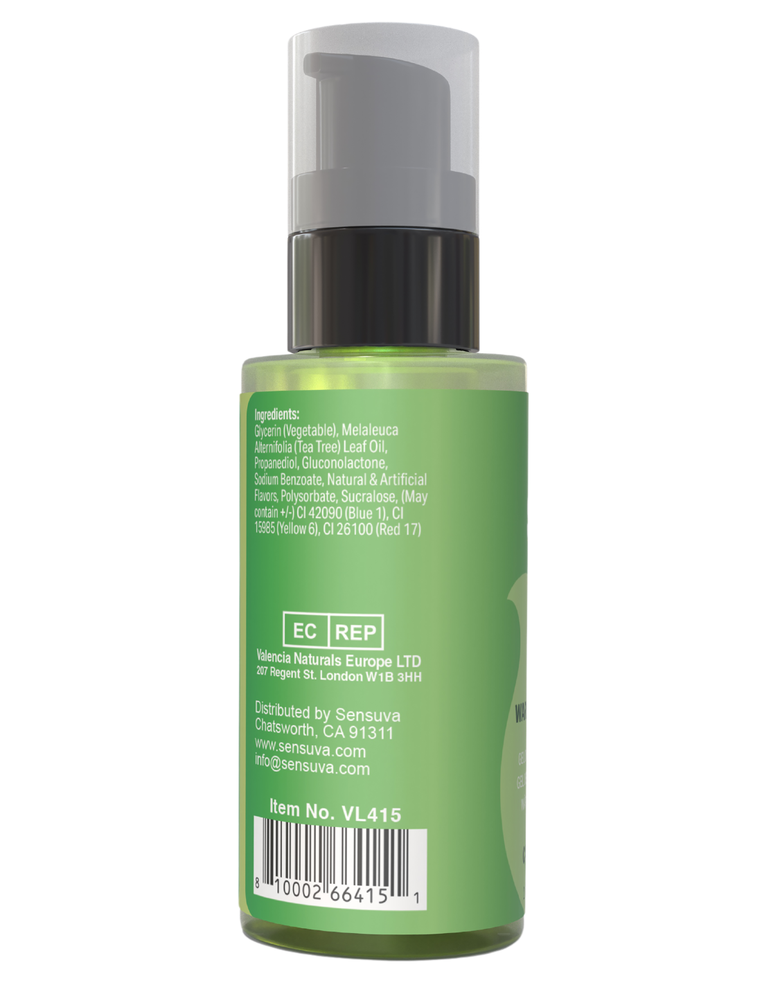 Glicerina (vegetal), aceite de hoja de Melaleuca Alternifolia (árbol de té), propanodiol, gluconolactona, benzoato de sodio, sabores naturales y artificiales, polisorbato, sucralosa, (puede contener +/-) CI 42090 (azul 1), CI 15985 (amarillo 6), CI 26100 (rojo 17)