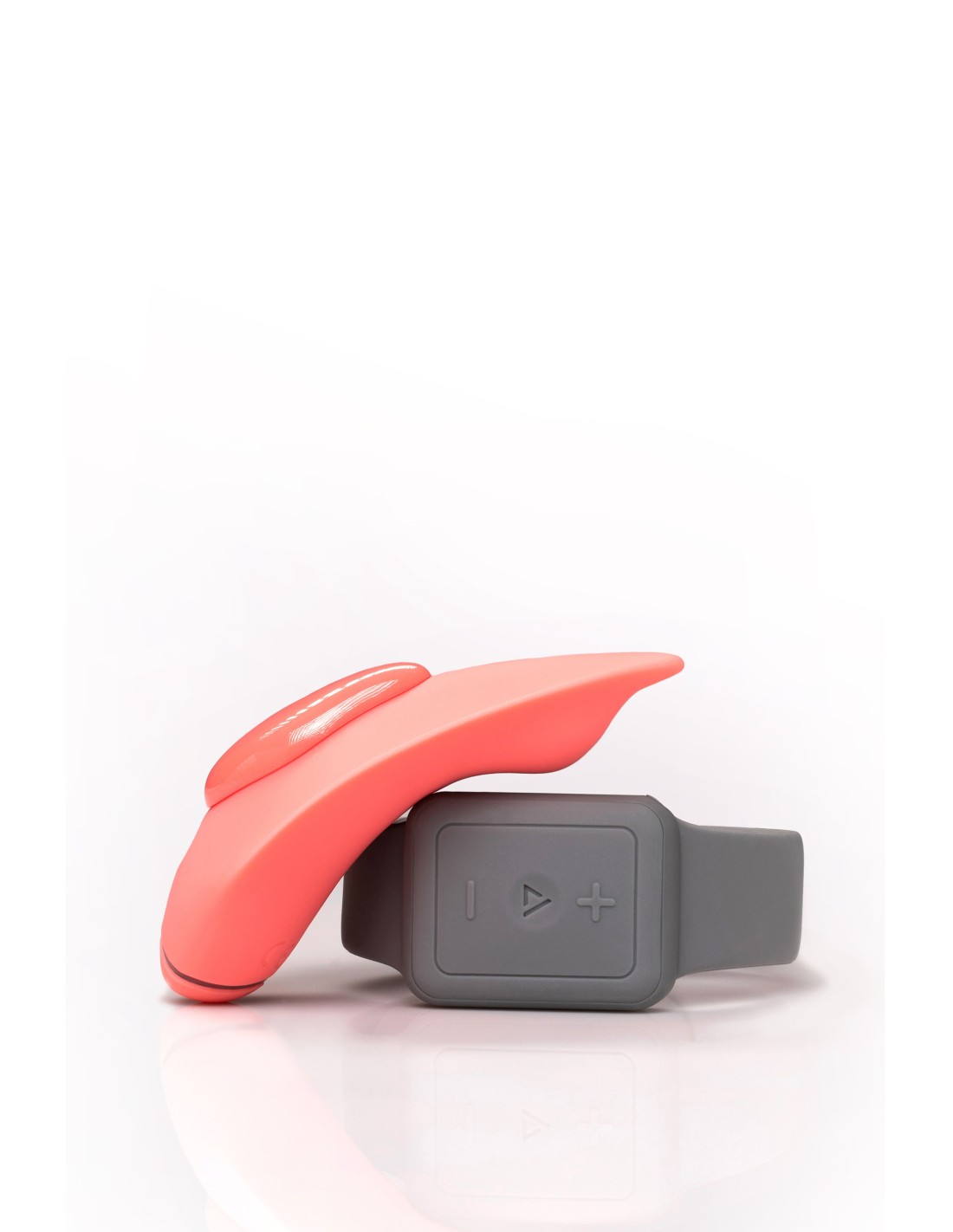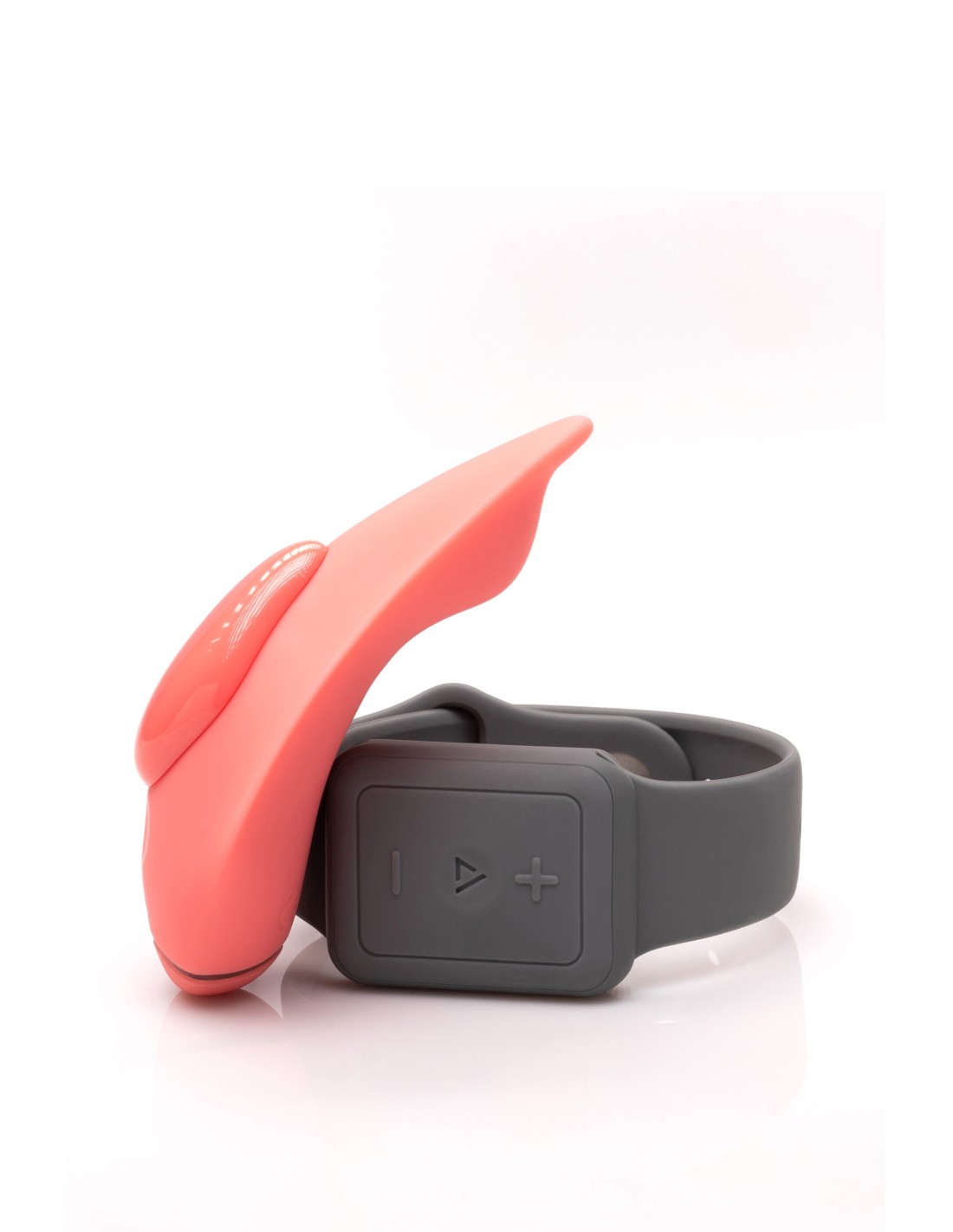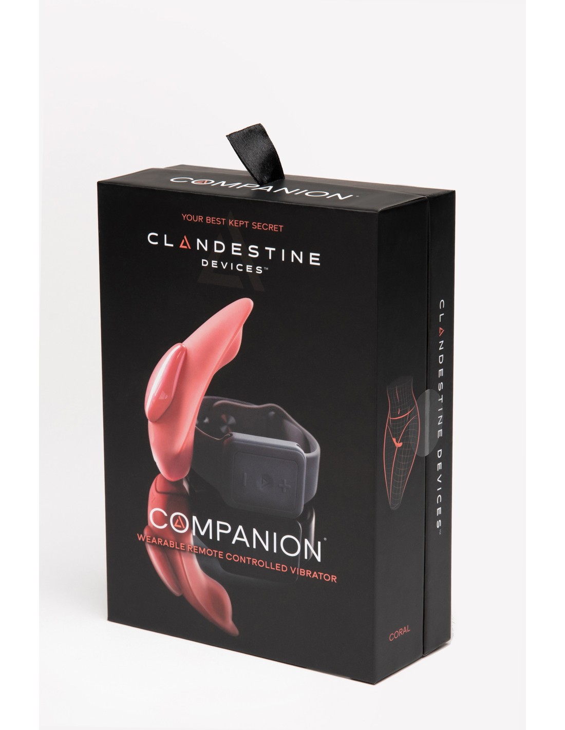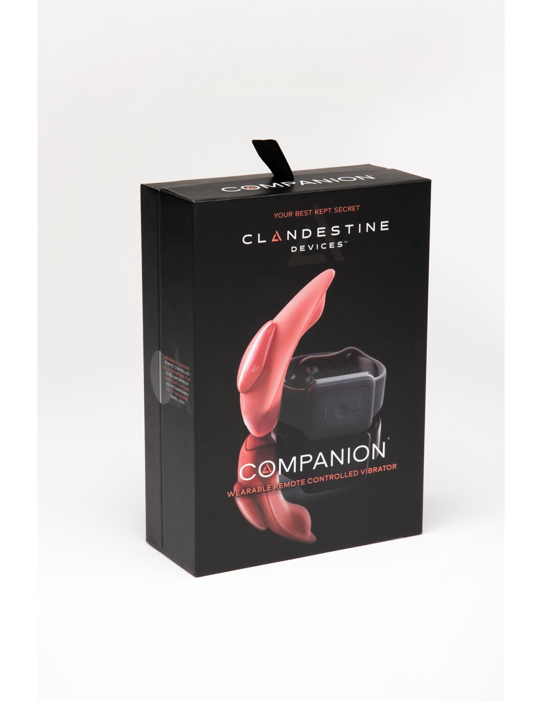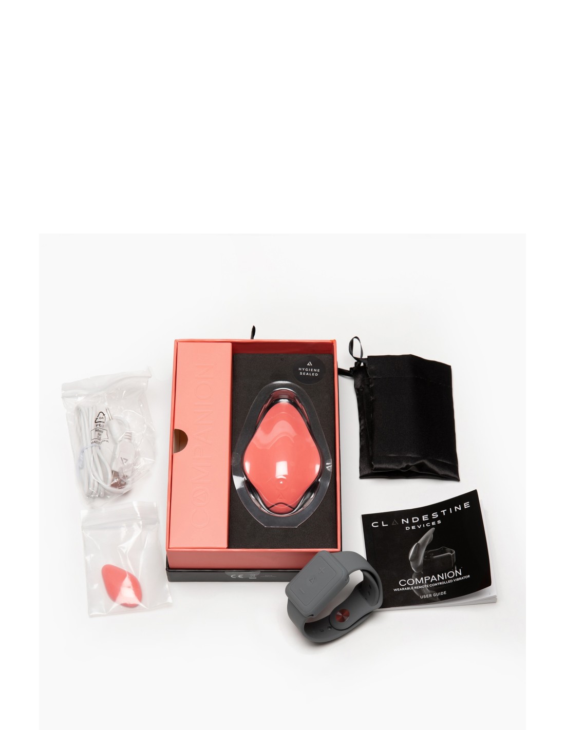 COMPANION es el dispositivo de juego en pareja definitivo para un placer inesperado y sorpresa para usted o su pareja, o como un estimulador independiente y discreto. COMPANION es una vibra portátil (bragas), que también viene con un control remoto (de muñeca) portátil y discreto, con bandas desmontables, que se asemejan a un reloj inteligente o un Fitbit. Un imán de ajuste seguro y un contorno ergonómico brindan máxima capacidad de ajuste y comodidad para todas las formas y tamaños en la comodidad de su ropa interior o la de su pareja.