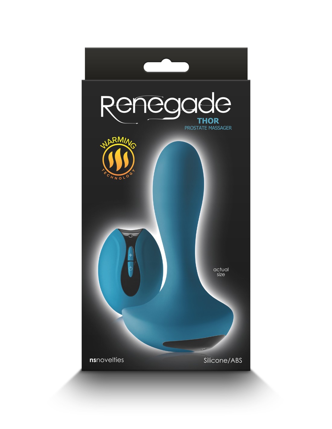 Thor de Renegade es un masajeador de próstata con control remoto, que cuenta con un eje flexible y una función de calentamiento para una sensación de temperatura elevada, que garantiza una estimulación explosiva. Hecho de silicona de felpa segura para el cuerpo, Thor cuenta con un control remoto para jugar solo o con un compañero. Thor es recargable, resistente al agua y apto para todos los lubricantes.