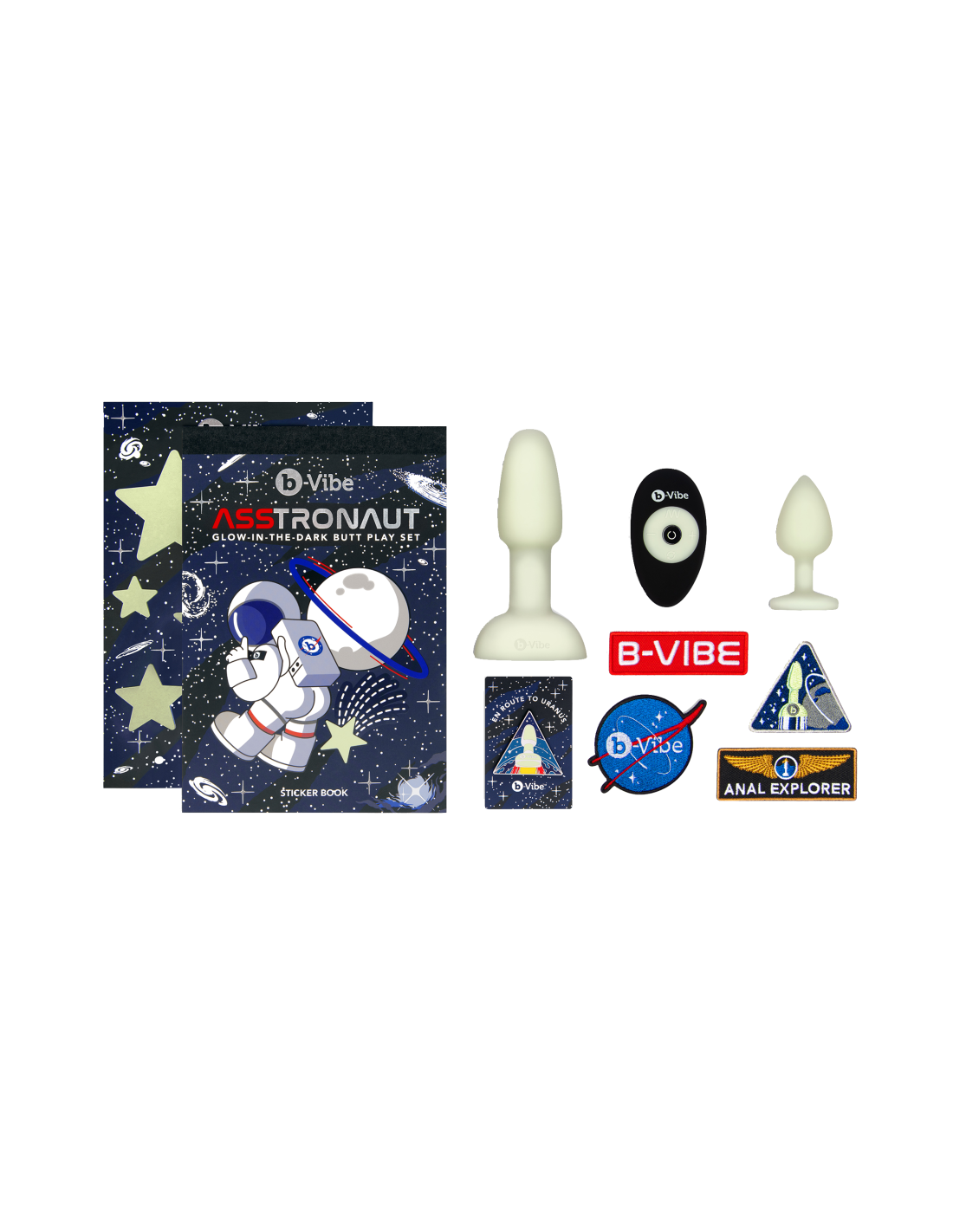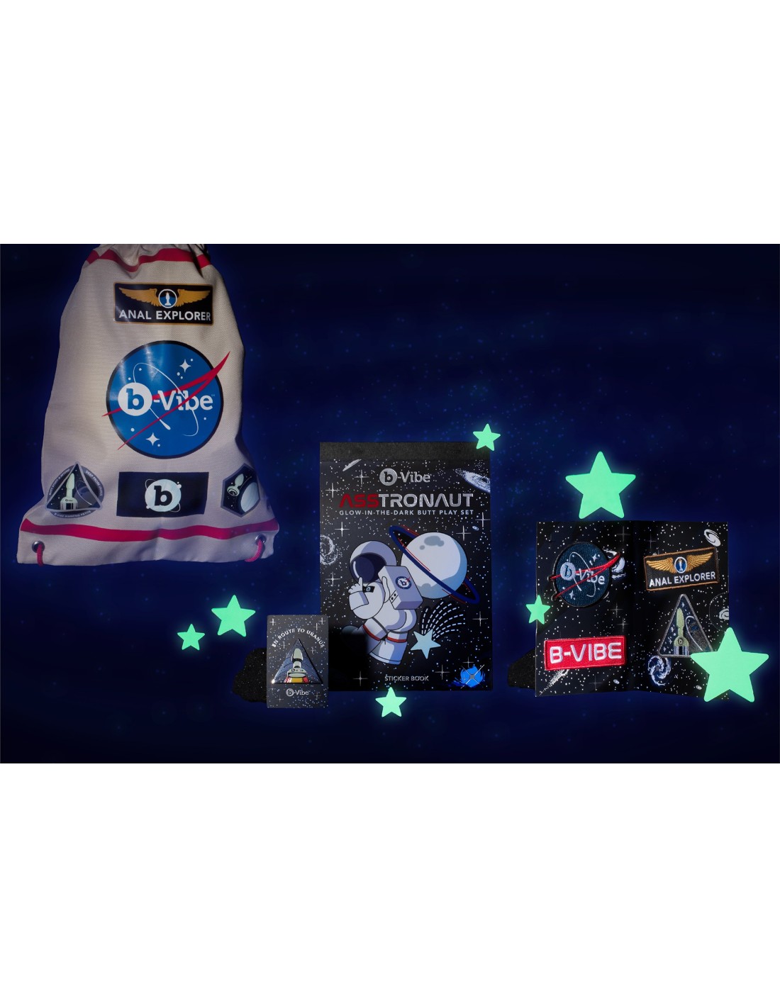 Explota tu trasero en la capa de la zona OH con el set de juego para glúteos que brilla en la oscuridad Astronaut de b-Vibe. ¡Prepárate para una estratosfera de sensaciones con 10 piezas que te mantendrán bien equipado para una aventura anal que está fuera de este mundo!