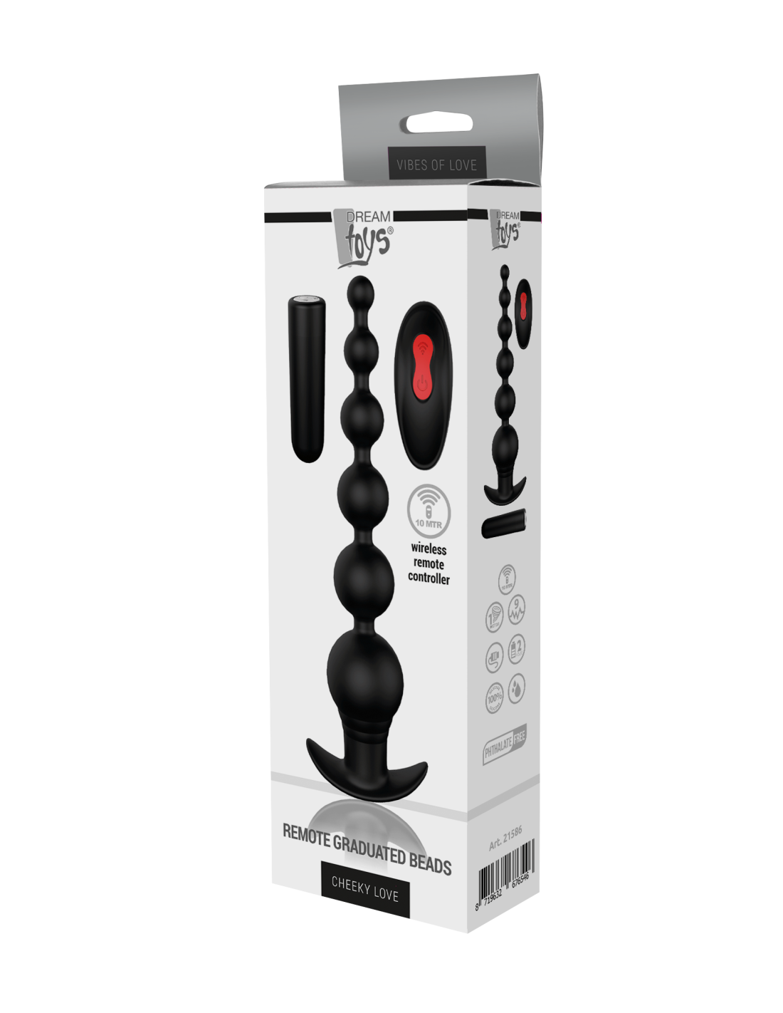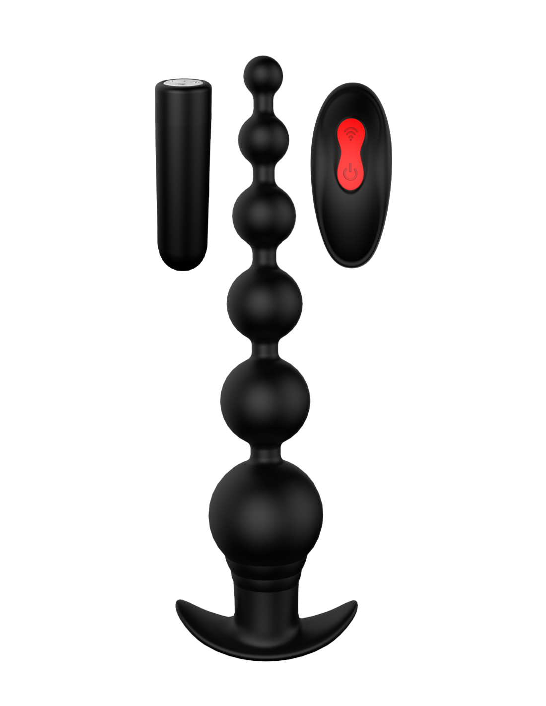 El tapón de cuentas anales es muy flexible y está hecho de silicona de grado médico. Estas cuentas anales proporcionan estimulación adicional durante los juegos previos o durante el clímax. Se pueden utilizar tanto para juegos vaginales como anales. Por lo tanto, son adecuados tanto para hombres como para mujeres. Tiene una forma cónica con 6 cuentas que aumentan gradualmente de tamaño hacia la base. La forma produce sensaciones excitantes al insertar o retirar el plug. Hazlo lenta y cuidadosamente, cuenta a cuenta. ¿Hasta dónde puedes manejarlo? El plug tiene una abertura en la base en forma de ancla para insertar la bala vibradora, que ofrece 3 niveles de vibración constante y 6 ritmos diferentes. La activación y el cambio de vibraciones se pueden realizar con el botón de encendido de la bala o con el control remoto inalámbrico. Las Cuentas Graduadas también pueden funcionar independientemente del control remoto. Tanto la bala como el control remoto son recargables.