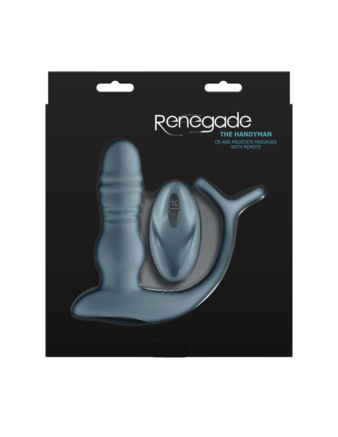 Ponte manos a la obra con The Handyman de Renegade. Un anillo para el pene y un masajeador de diseño moderno que proporciona empujes precisos a la próstata y vibraciones profundas al perineo. El Handyman está hecho de silicona lujosamente suave y segura para el cuerpo e incluye un control remoto inalámbrico para infinitas variaciones de oportunidades emocionantes. Recargable. Apto con todos los lubricantes.