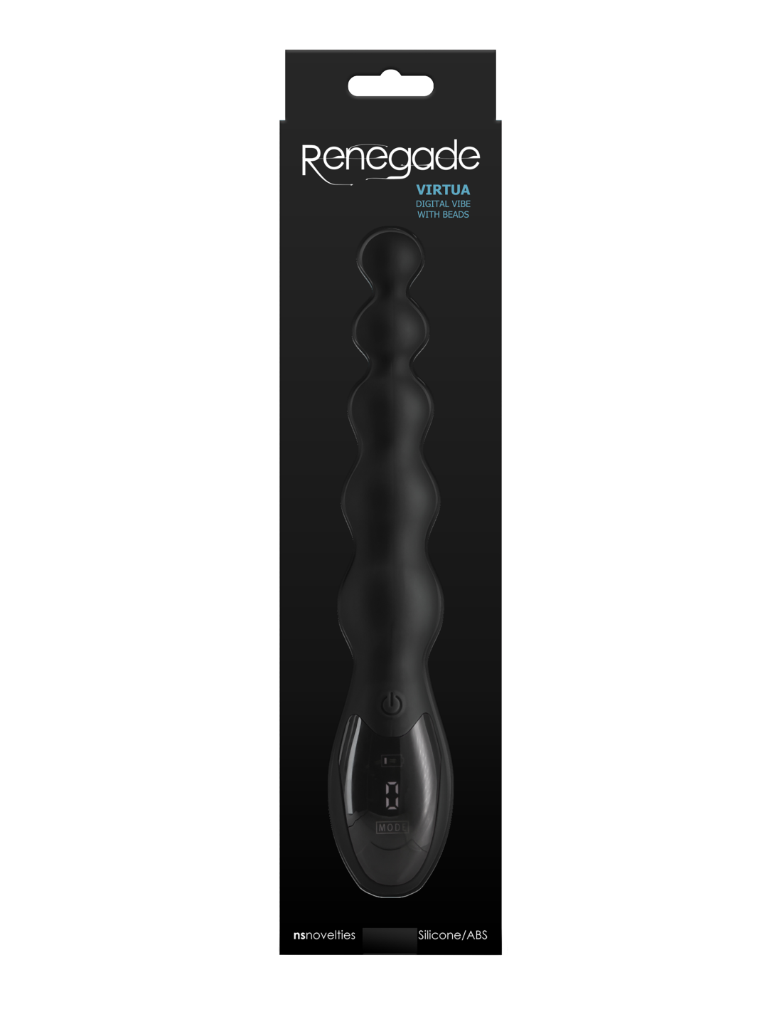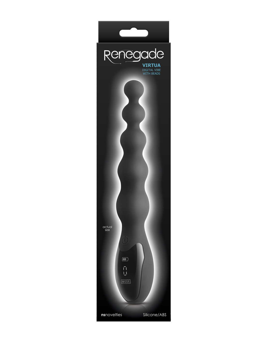 Transición a la era de la tecnología digital con Virtua by Renegade. Un sofisticado vibrador, con cuentas graduadas para generar placer erótico en cada zona erógena. Realiza un seguimiento de las velocidades y las funciones con la elegante pantalla digital de Virtua. Fabricado con silicona y ABS de primera calidad, Virtua es recargable, resistente al agua y compatible con todos los lubricantes. 3 velocidades / 6 funciones.