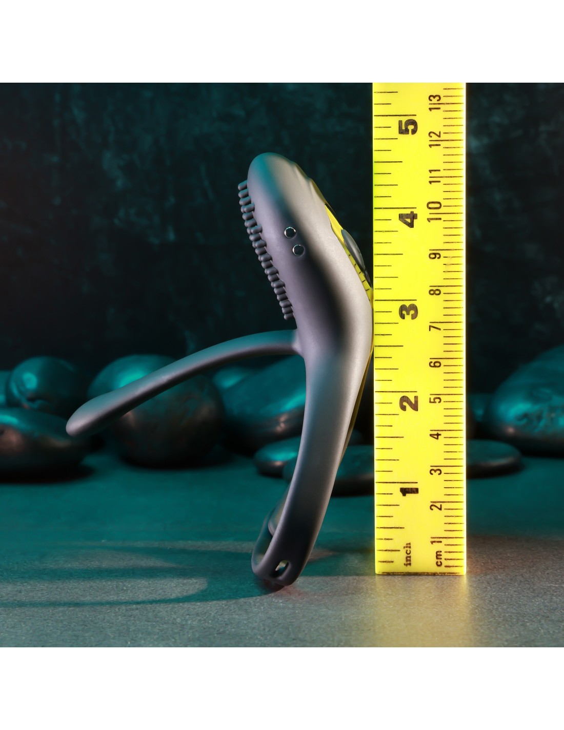 Ajuste este anillo en C vibratorio a su circunferencia ideal con 4 tamaños que se ajustan para mayor comodidad y facilidad. Dos potentes motores generan vibraciones tanto en el estimulador con protuberancias gruesas como en el largo vástago de silicona que está diseñado para ubicarse junto al eje. Los motores funcionan de forma independiente con el control remoto que tiene un alcance de más de 100 pies. Recargable magnético, completamente sumergible en agua y fácil de limpiar.