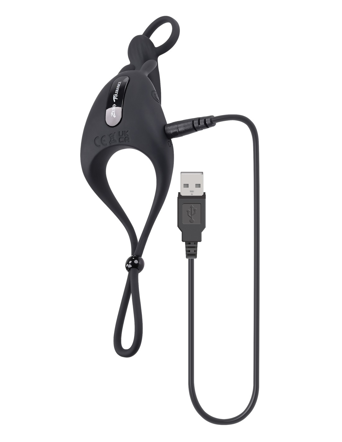 Ensilla con este innovador anillo para el pene y potenciador de la circunferencia que cuenta con un cordón de ajuste para una fit personalizada. Un anillo frontal mantiene el shaft vibratorio flexible en su lugar, mientras que las orejas de conejo brindan vibraciones intensas simultáneamente para una experiencia de doble motor.