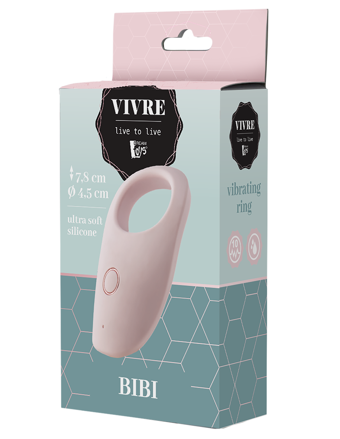 Bibi es un anillo vibrador para el pene fabricado en silicona suave y ABS. El anillo flexible es seguro para el cuerpo, no contiene látex ni ftalatos. Con 3 velocidades de vibración y 7 ritmos puede ofrecer una estimulación que va desde lo sutil hasta lo ardiente. El anillo vibrador flexible y elástico estimulará el pene y a la pareja si se utiliza durante la penetración. El funcionamiento es sencillo con un solo botón que tiene un anillo de color oro rosa alrededor. Bibi se puede utilizar en la bañera o en la ducha ya que es completamente impermeable. Se incluye un cable de clavija USB para recargar.