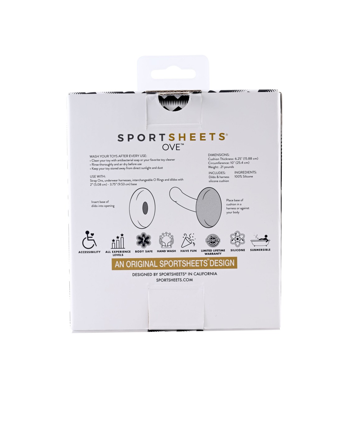 El COJÍN PARA CONSOLADOR Y ARNÉS OVE de Sportsheets® Merge Collection® es una suave funda de silicona que se estira fácilmente sobre la base de consoladores que miden de 2 a 3,75 pulgadas / 5,1 - 9,5 cm.