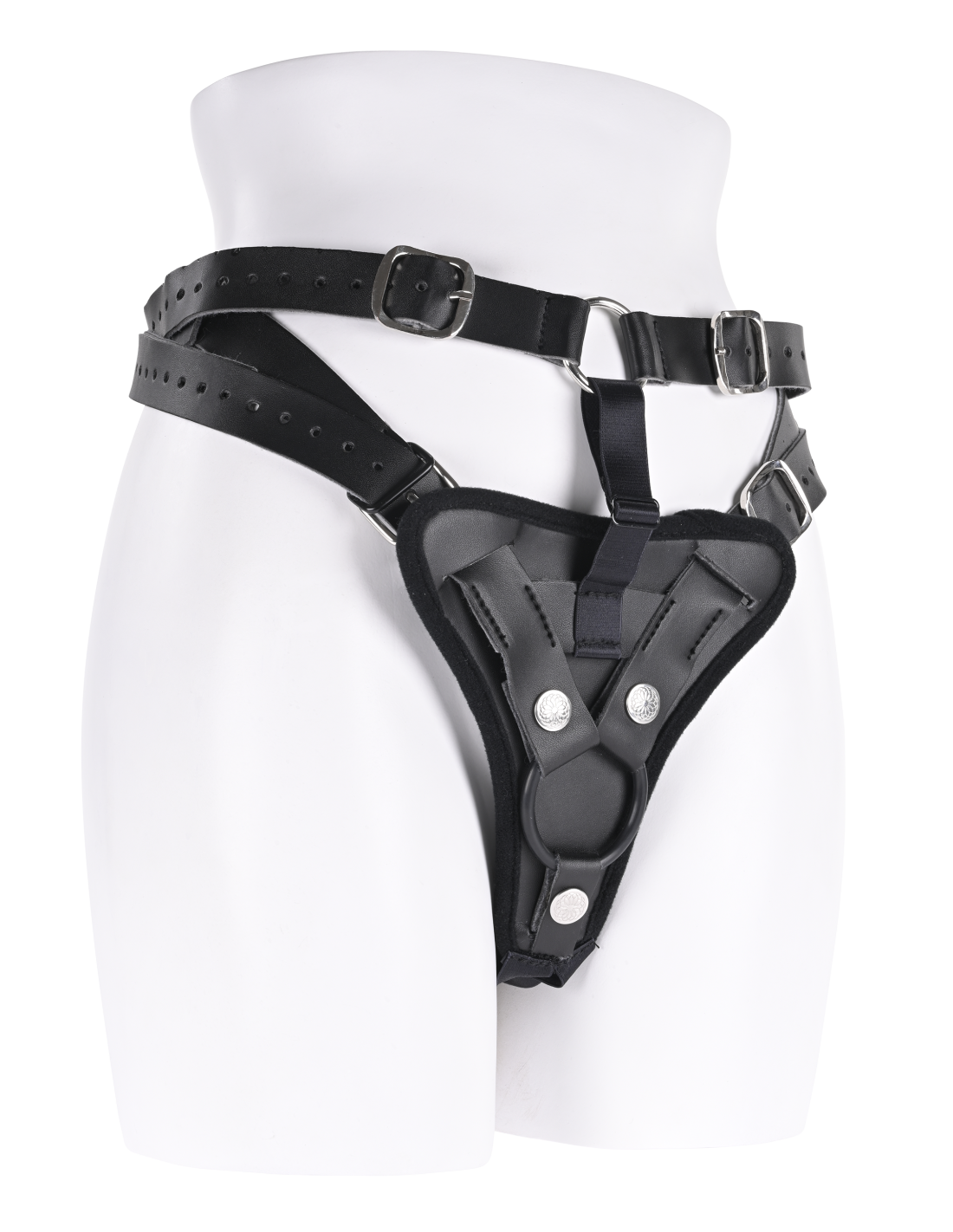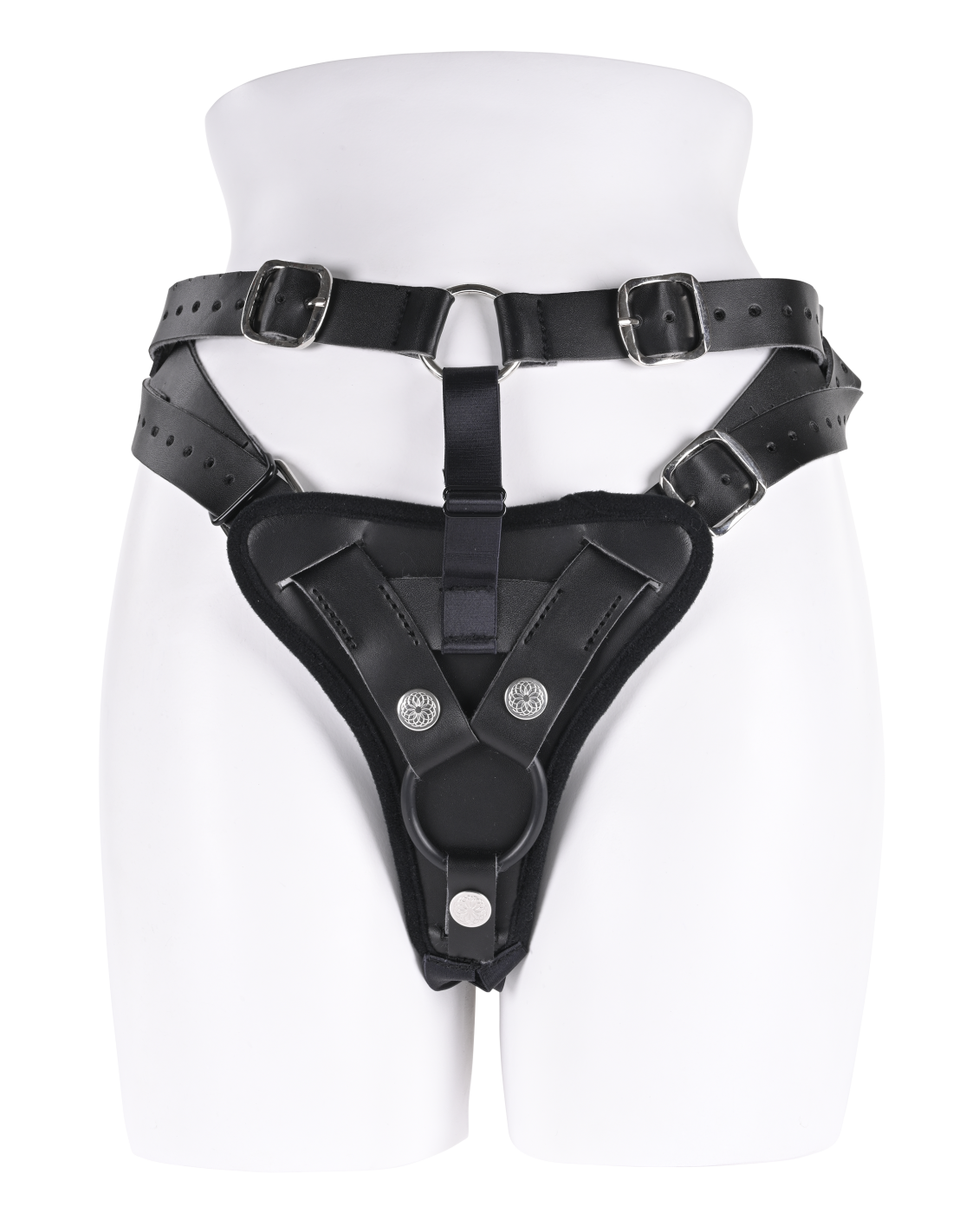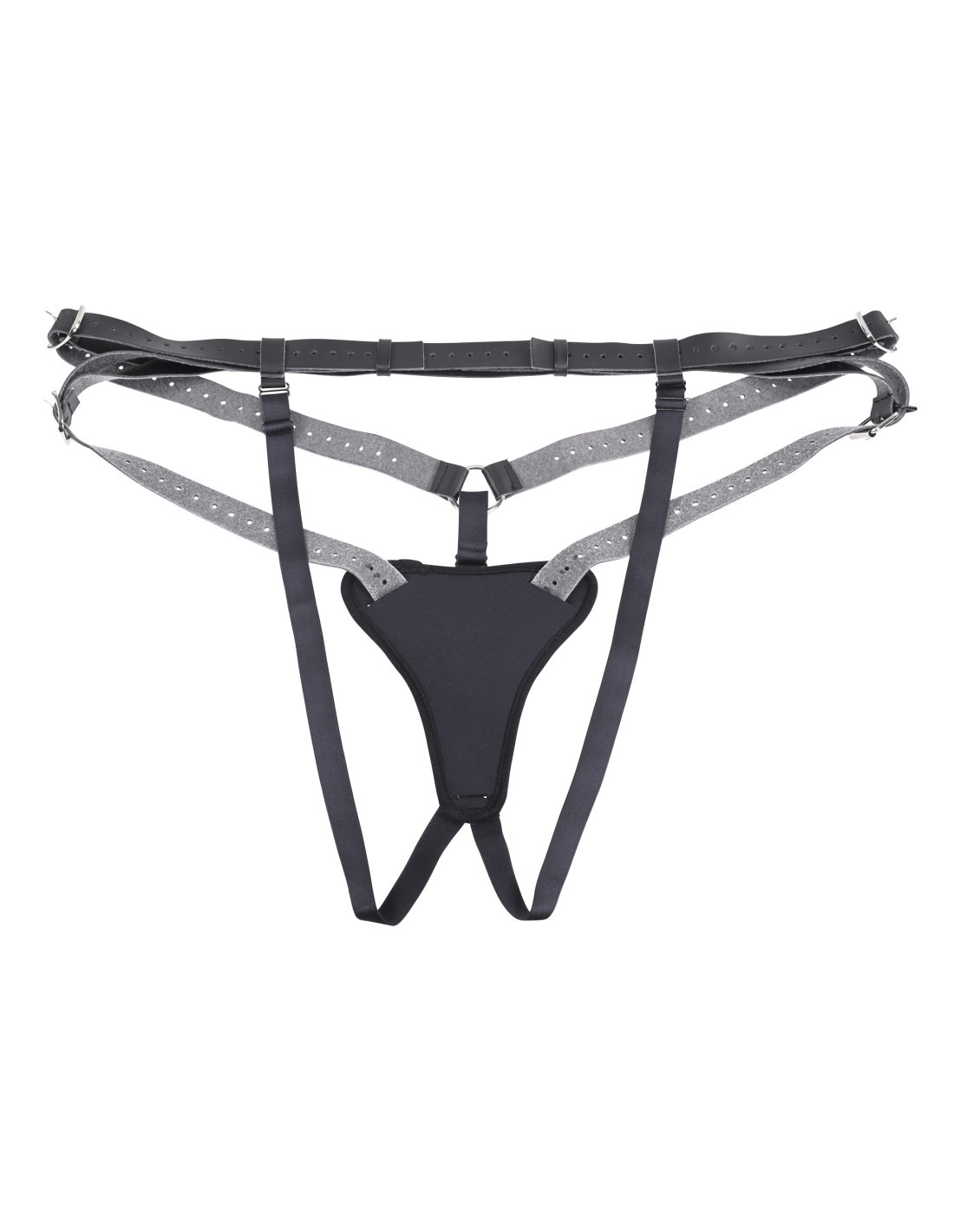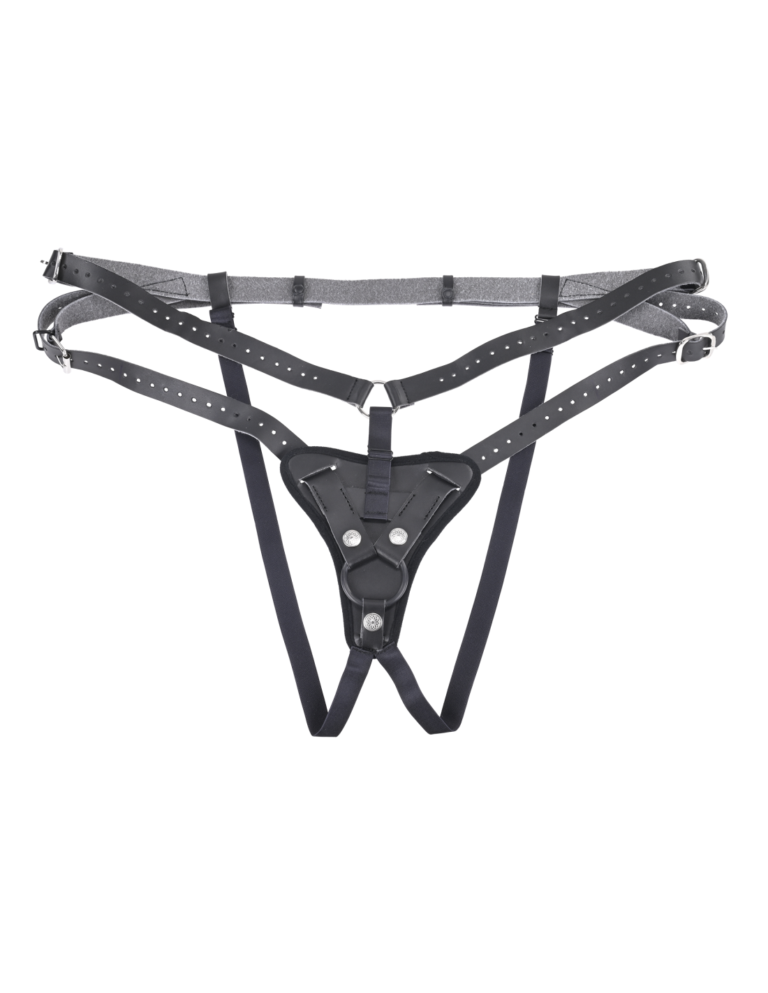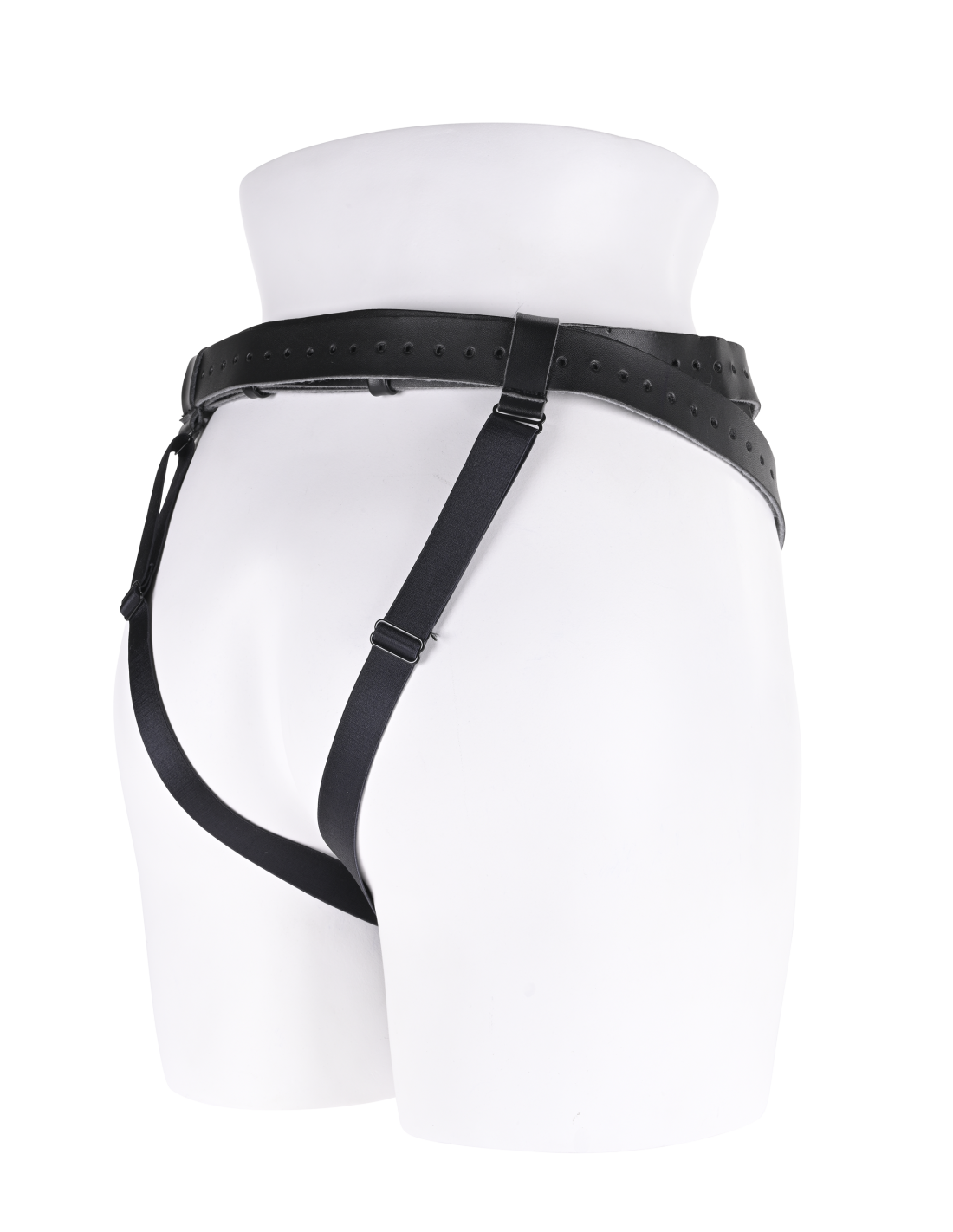 Las 4 hebillas ajustables permiten una fit personalizada, mientras que los broches reforzados mantienen la junta tórica intercambiable firmemente en su lugar. Siéntete poderoso, ya que cada movimiento se siente natural e imponente sobre tu trasero, temblando de dichosa anticipación.