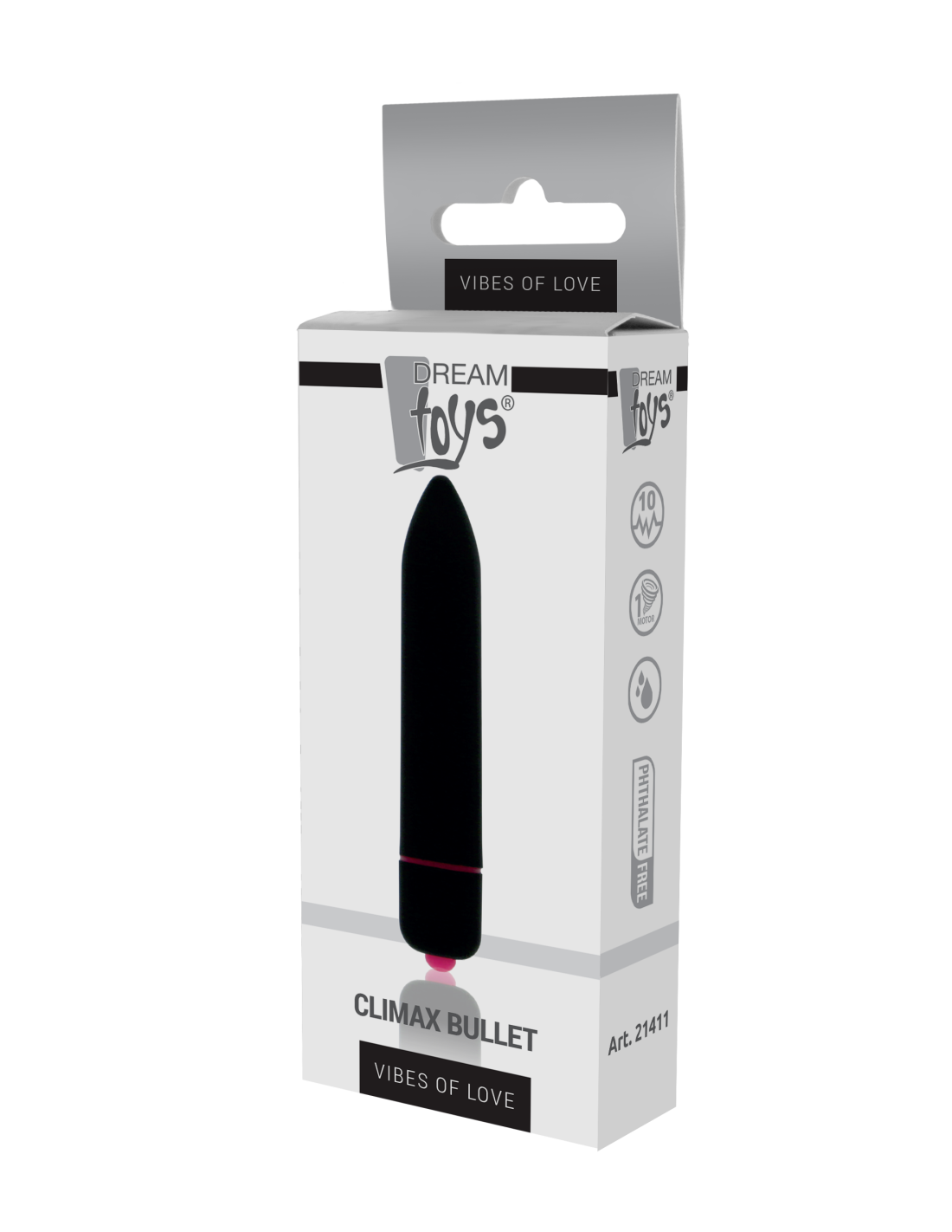 El Climax Bullet es una bala vibradora de bolsillo con un potente motor y 10 funciones. La bala tiene una superficie lisa y una punta redonda para una estimulación puntual. Está hecho de ABS libre de ftalatos y se puede operar fácilmente con un botón.