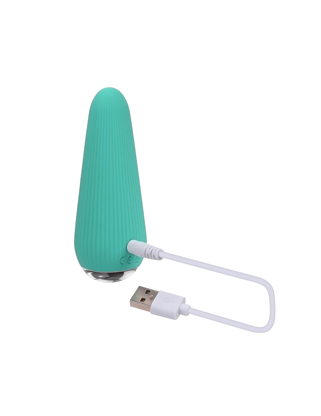Esta bala vibratoria en forma de cono tiene una base gruesa y una punta redondeada con líneas de textura estriadas que recorren toda la longitud y circunferencia del juguete. Con 10 velocidades y patrones en su potente motor y un panel de control de 1 botón fácil de usar, O-Cone también puede sumergirse en el agua ya que es completamente sumergible. Hecho de silicona suave y segura para el cuerpo con una base con acabado cromado, recargable mediante USB y cargador. fácil de limpiar.