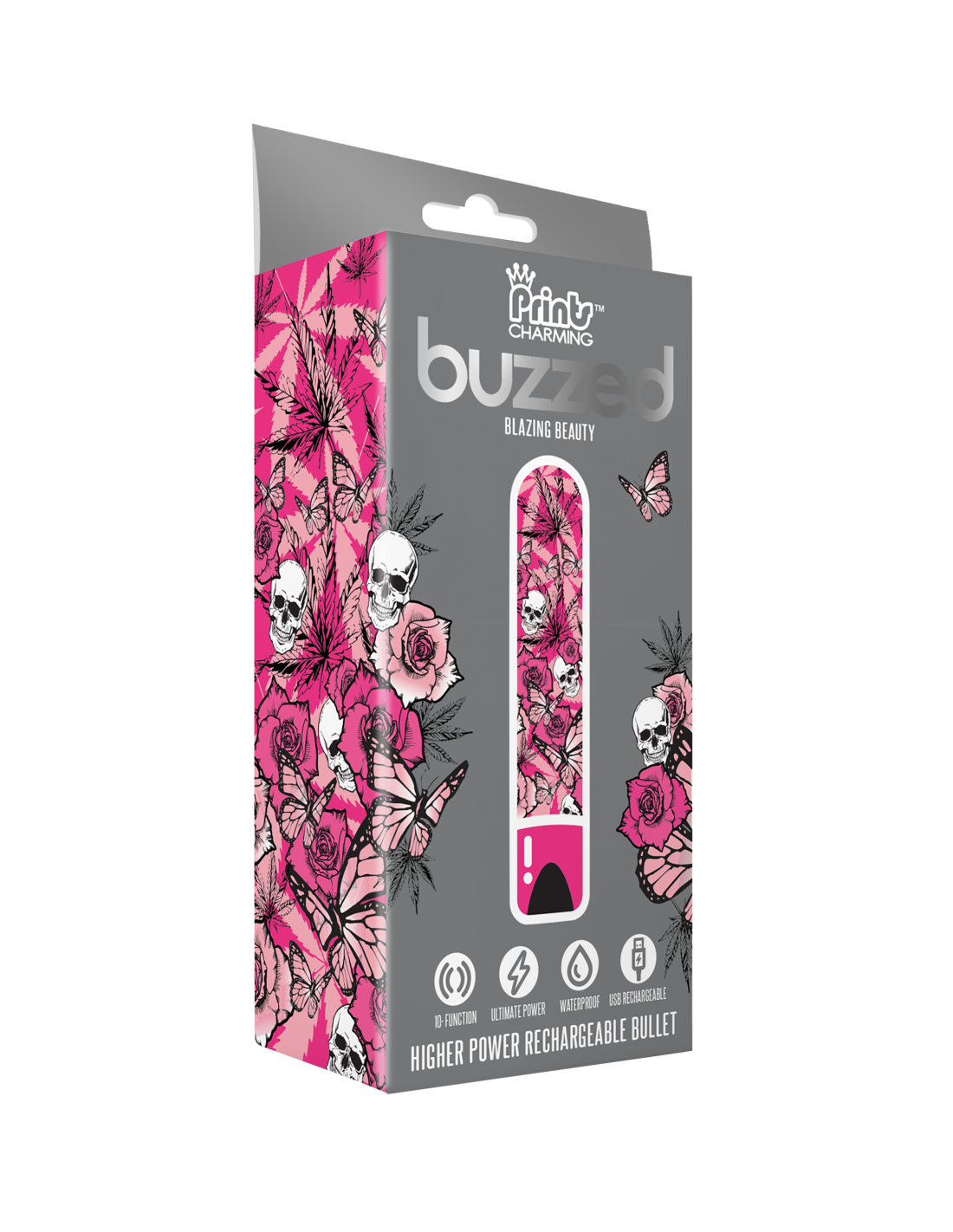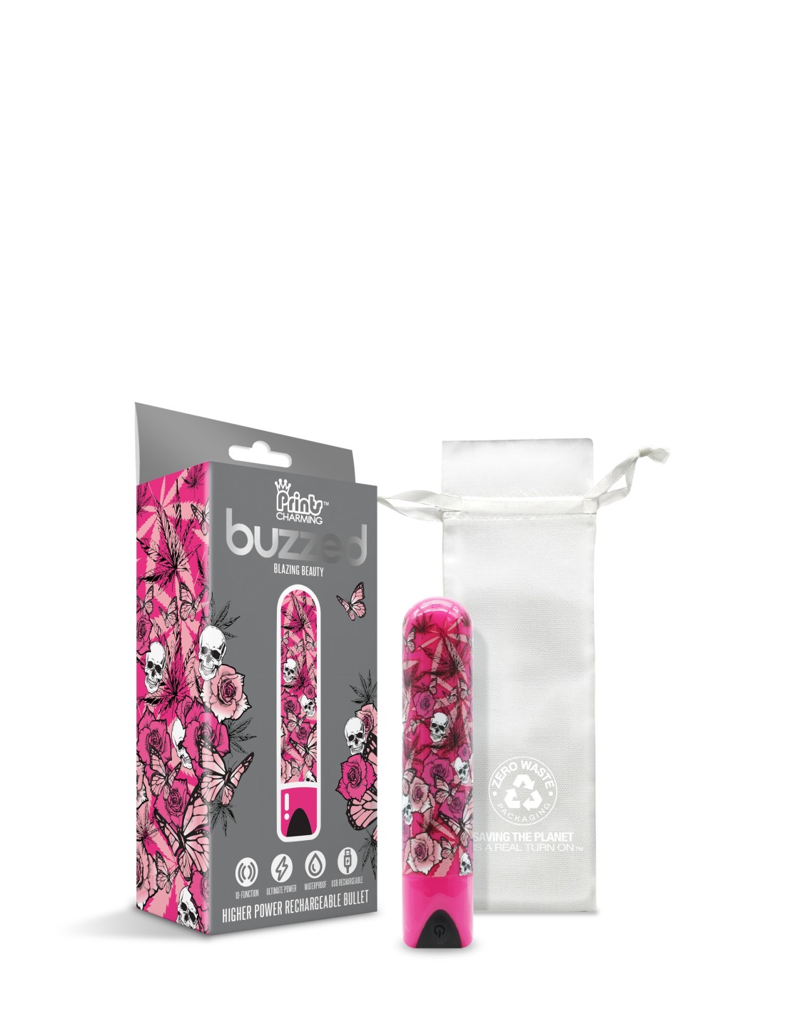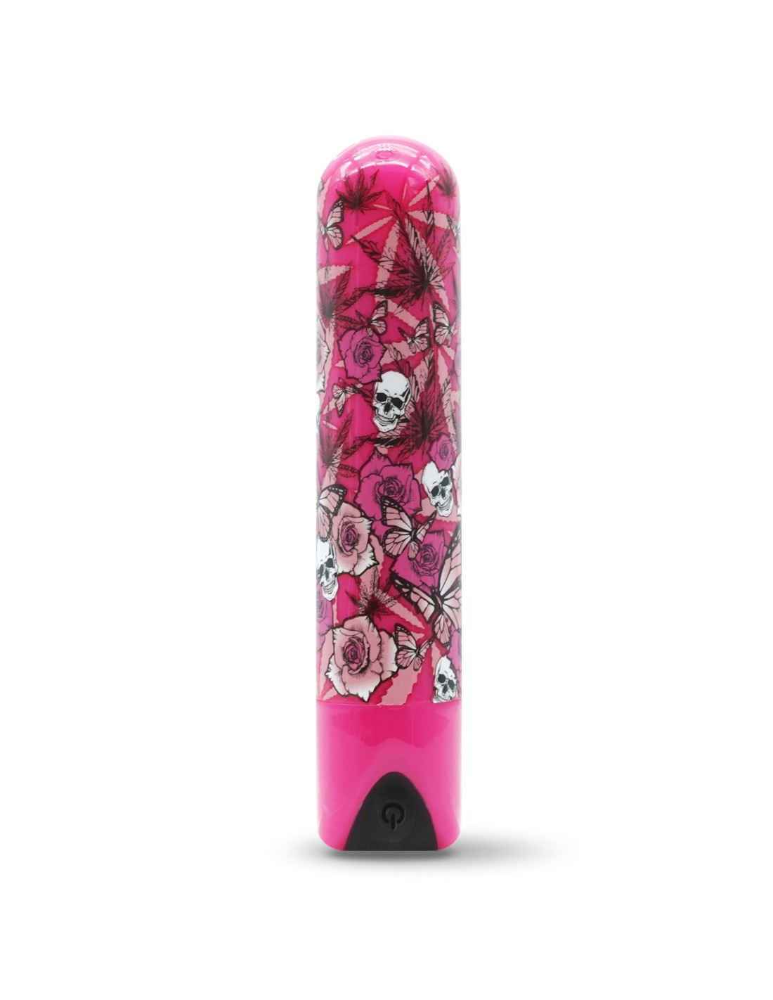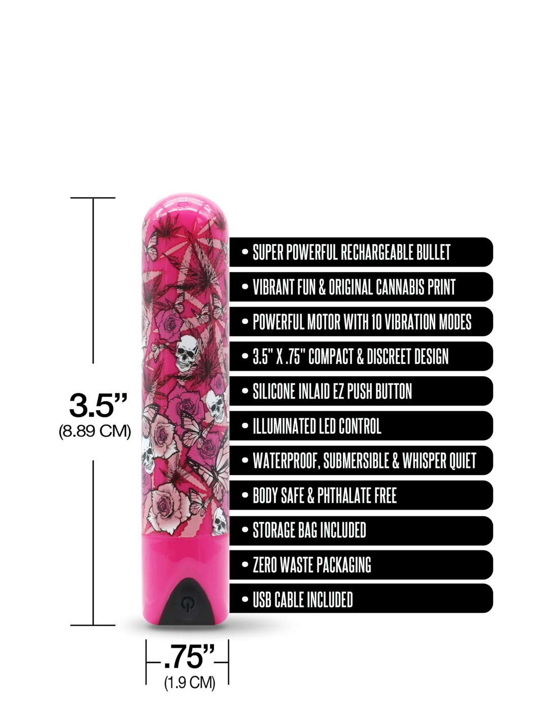 ¡Cada día es un buen día con un efecto potente! Bala recargable súper potente con un divertido estampado de cannabis original y vibrante. Esta bala vibradora de Blazing Beauty tiene un potente motor con 10 modos de vibración. Diseño compacto y discreto. Pulsador fácil con incrustaciones de silicona y control LED iluminado. Resistente al agua, sumergible y silencioso. Seguro para el cuerpo y libre de ftalatos. Se incluye una bolsa de almacenamiento. El mini vibrador viene en un embalaje sin desperdicio. Se incluye un cable USB para recargar.