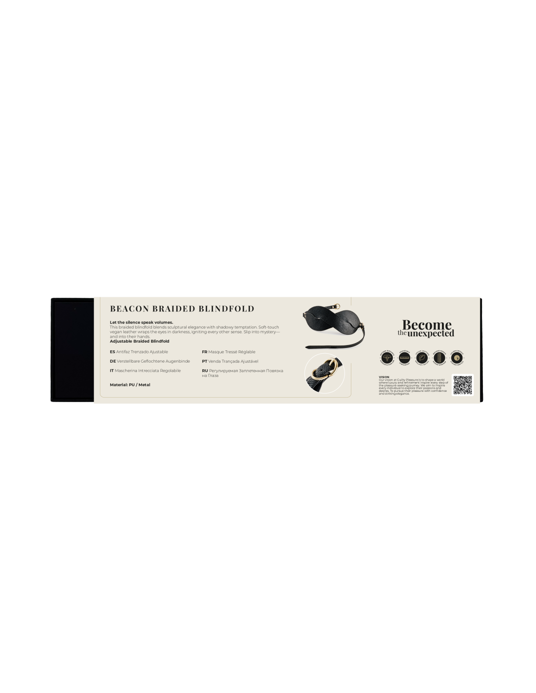 Totalmente ajustable para un fit seguro y personalizable, la venda para los ojos está acabada con elegantes herrajes dorados para un toque refinado. Ya sea que se use para mejorar la confianza, intensificar el enfoque sensorial o simplemente introducir la emoción de lo desconocido, la venda trenzada Beacon invita a los usuarios a explorar la moderación a través de una lente de elegancia y control.