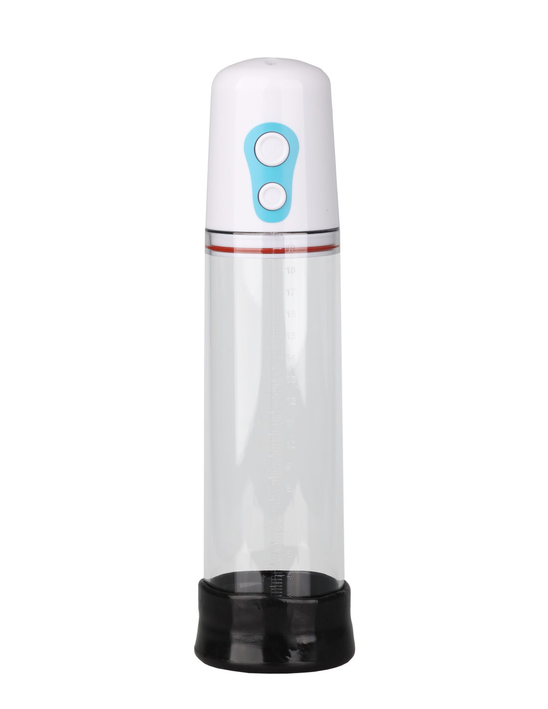 Una bomba de pene automática fácil de usar que ayuda a mejorar la erección y el rendimiento. La aspiradora también ayuda a conseguir y mantener una erección en caso de disfunción eréctil. La bomba se opera con 2 botones. Ayuda a fortalecer el vacío y aumentar la presión. Hay una válvula especial para la liberación instantánea de presión. Con funda de entrada suave y medidas en el exterior del cilindro transparente. La bomba está fabricada en TPE, ABS y PVC.