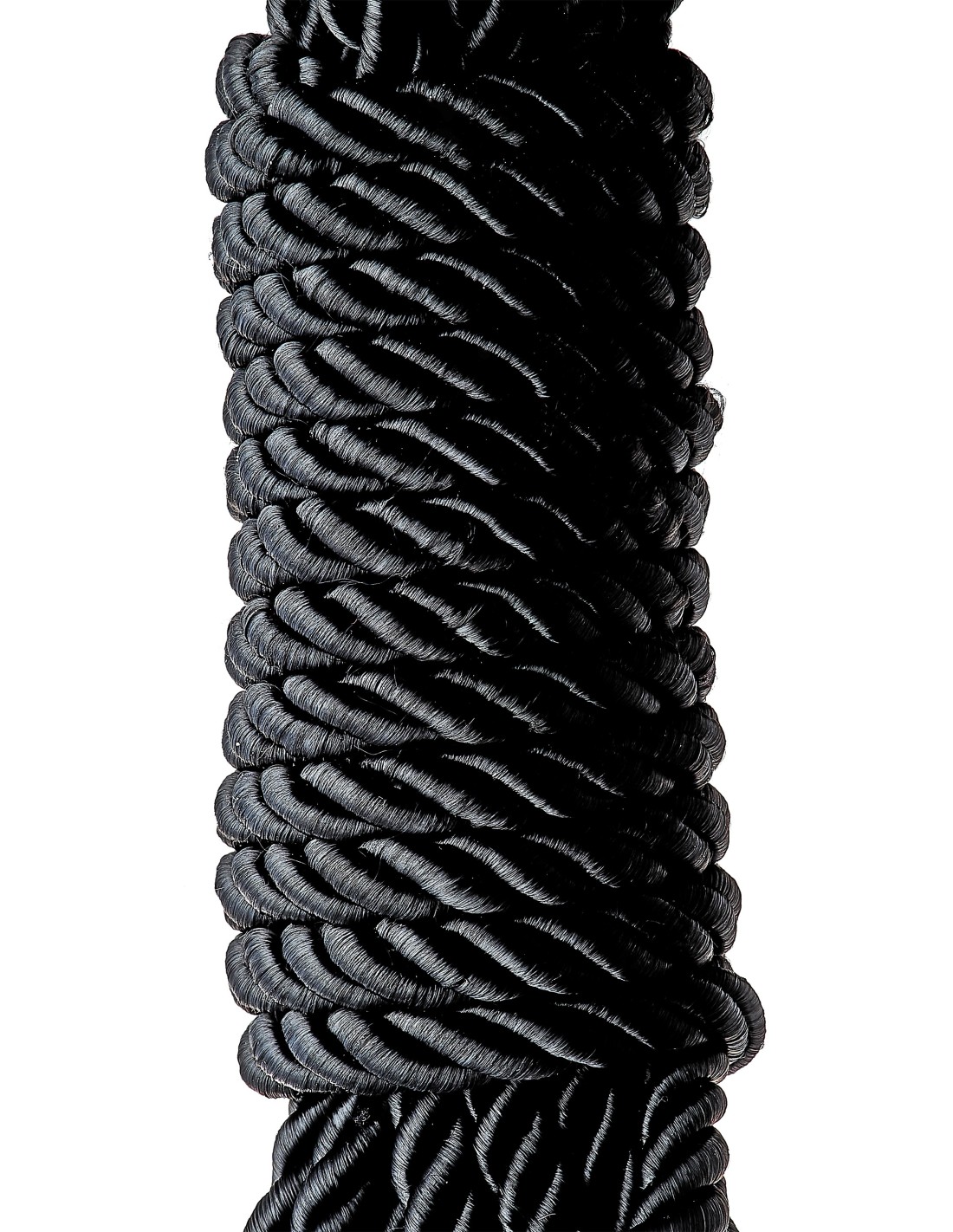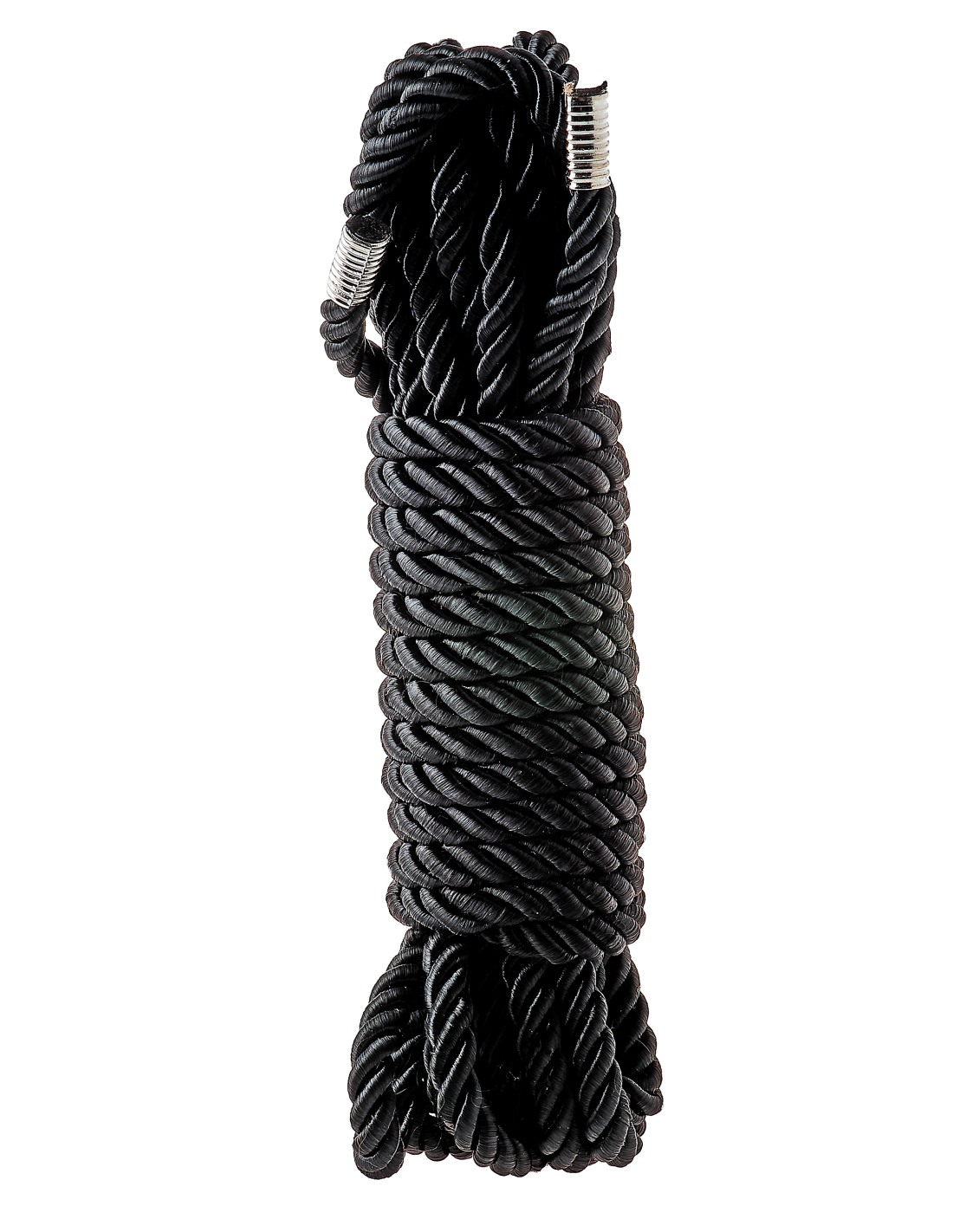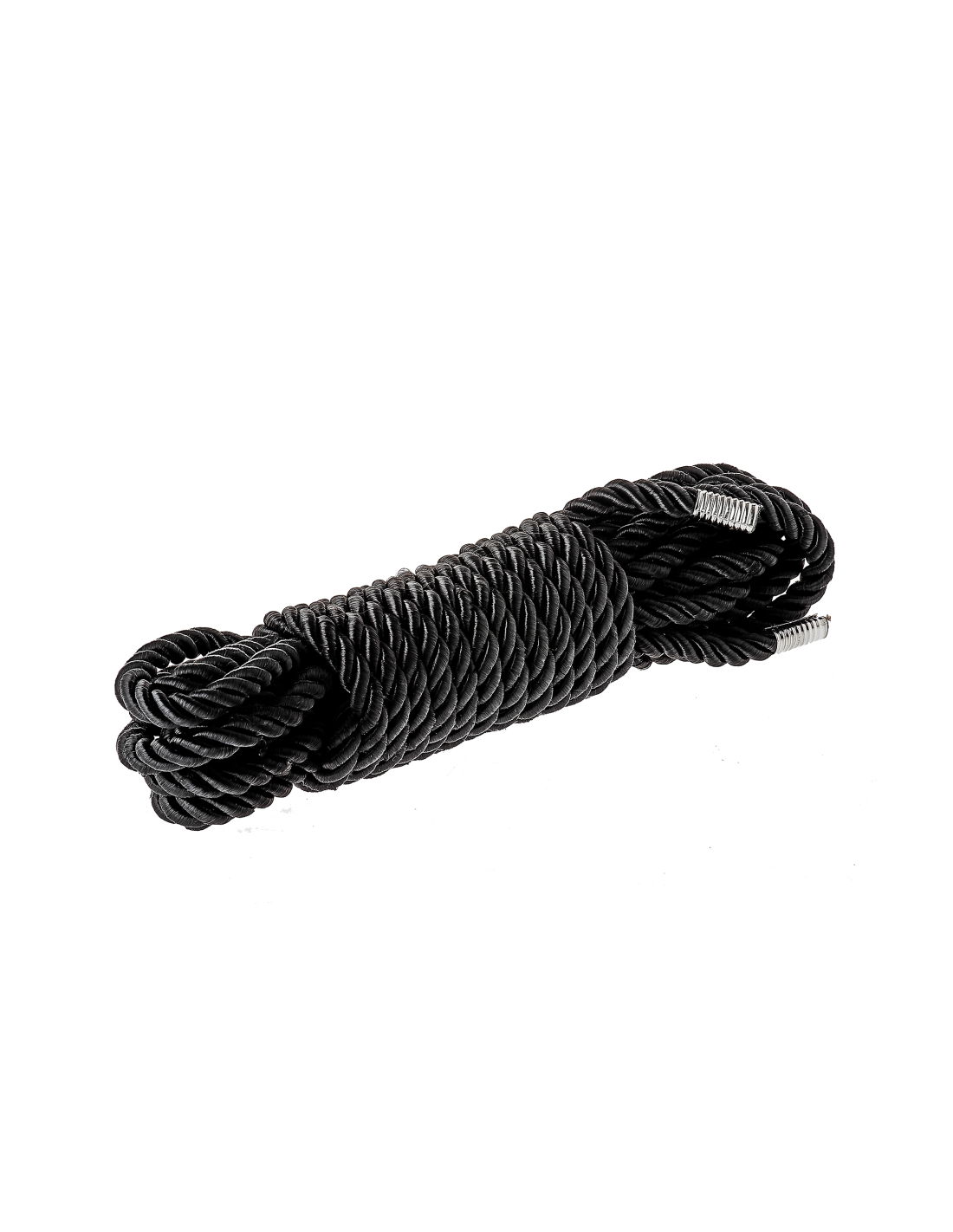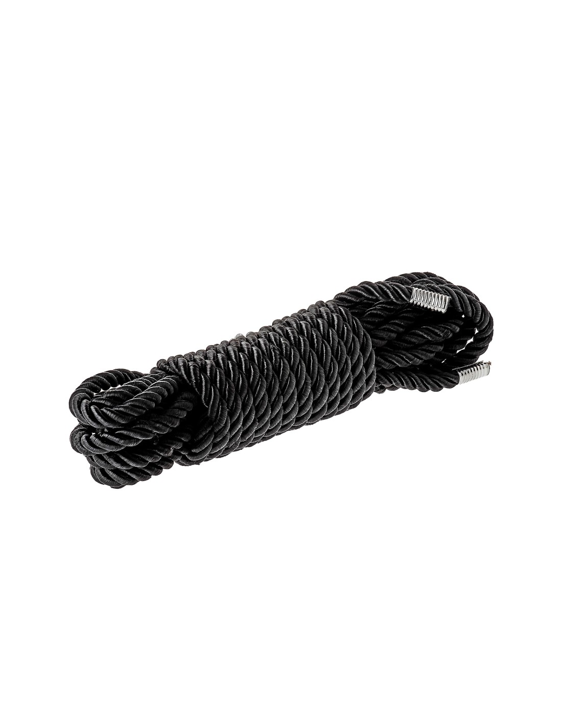 Cuerda bondage negra súper suave con acabado sedoso, 5 metros de largo. Ambos extremos tienen un acabado metálico antidesgaste. Esta es una cuerda versátil para múltiples opciones de atado. Es ideal para aquellos nuevos en el juego bondage de estilo japonés, así como para aquellos más experimentados en el bondage apretado Kinbaku o Shibari.