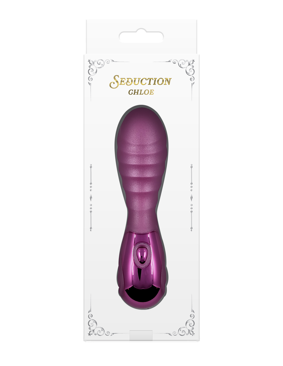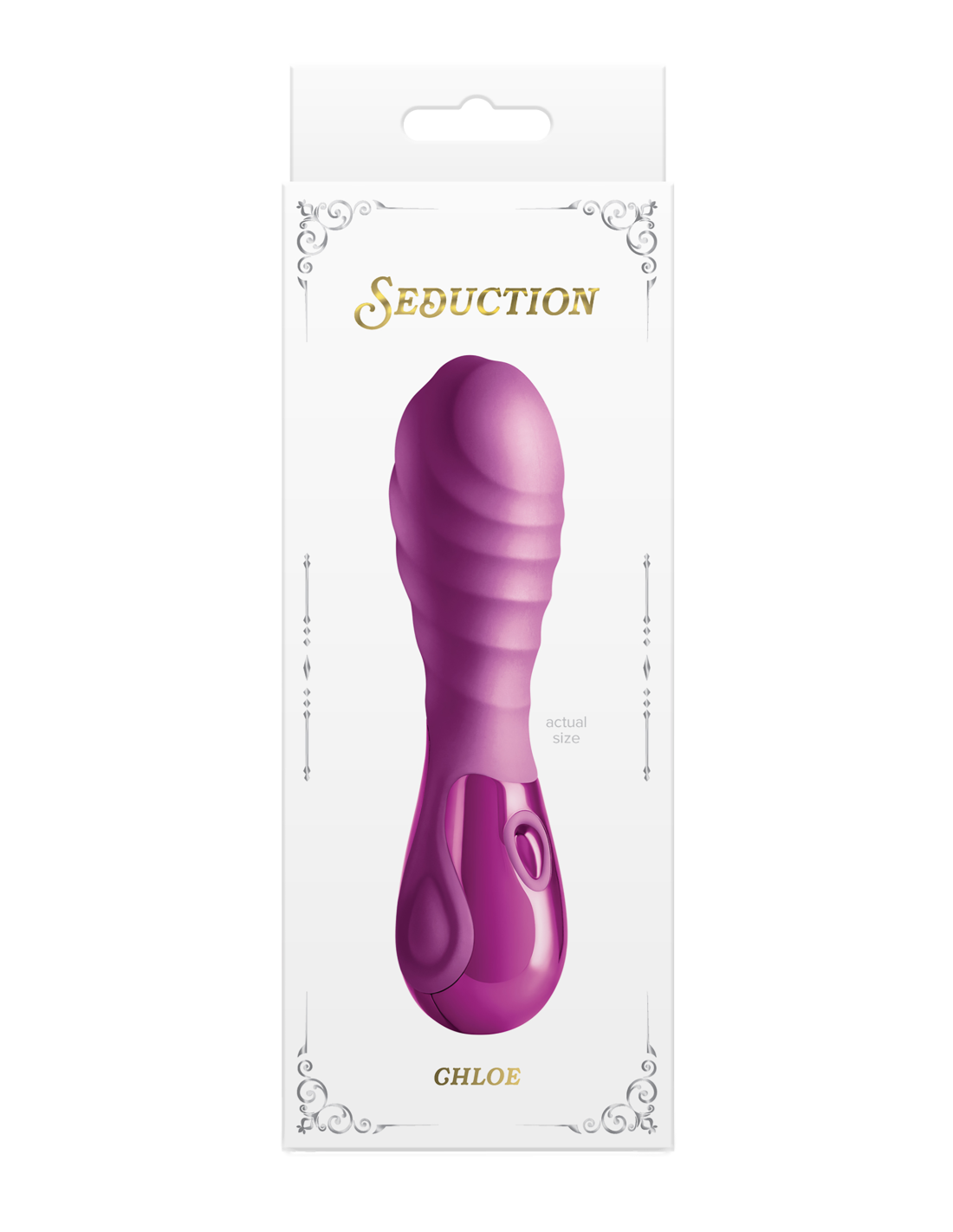Chloe by Seduction – Un irresistible rollo compacto con una textura ondulada para brindar sensaciones eufóricas a todas las áreas eróticas. Chloe está hecha de silicona suave como la seda y segura para el cuerpo y se acentúa con un mango metálico y un botón de encendido. Amigable para viajar. Recargable. Resistente al agua. Apto con todos los lubricantes. 3 velocidades / 7 funciones.