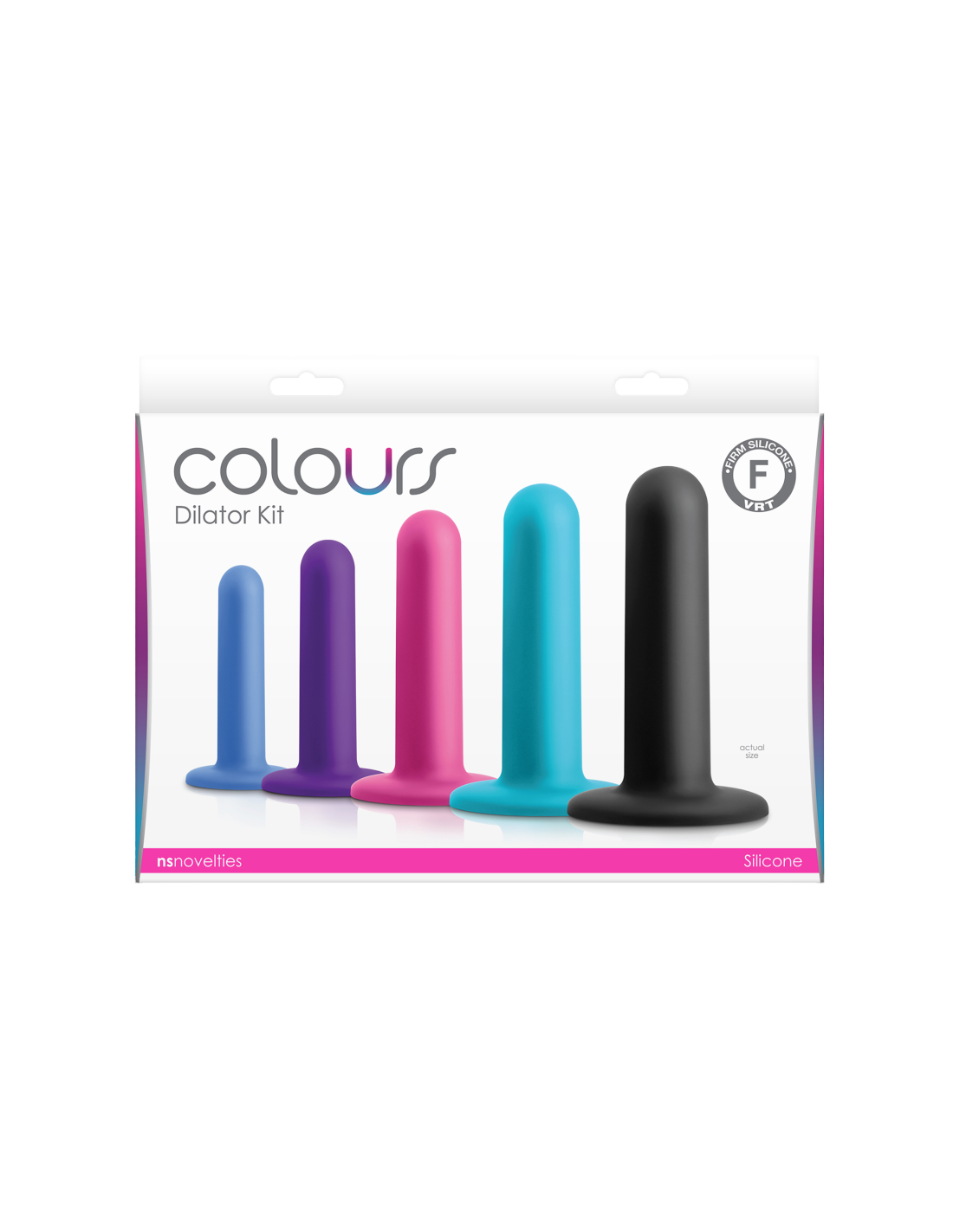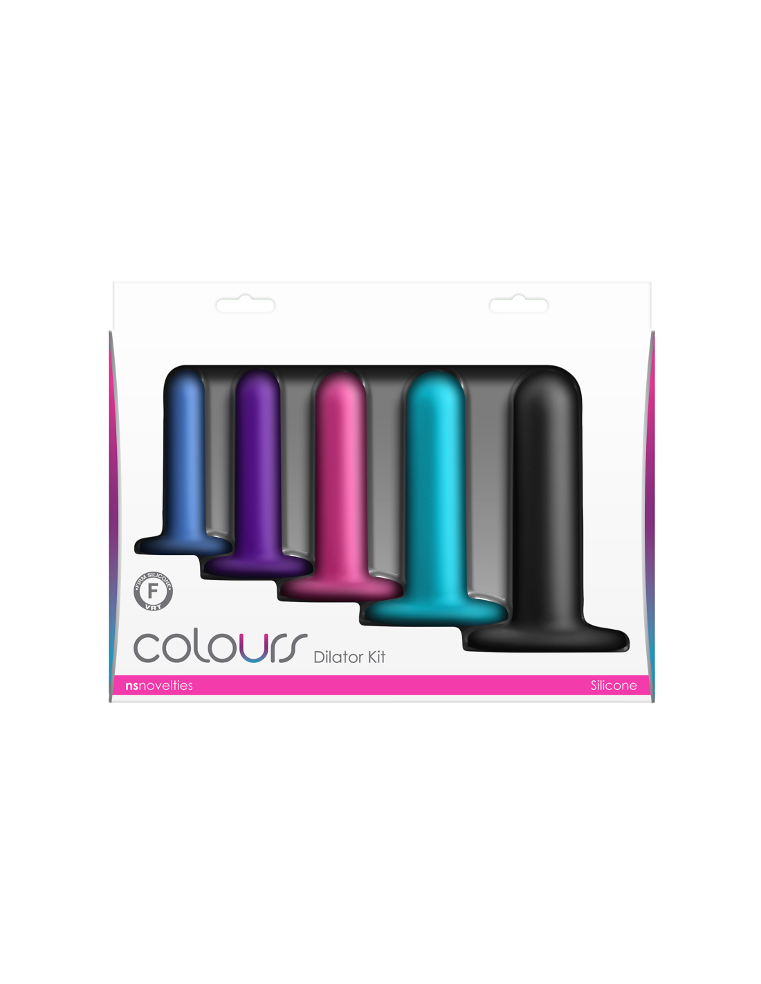 El kit de dilatadores de Colours: aumente la intimidad y la salud sexual con este juego de 5 piezas de dilatadores de silicona de tamaños variados en colores variados. Apto para usar con todos los lubricantes. Hecho de silicona flexible de primera calidad.