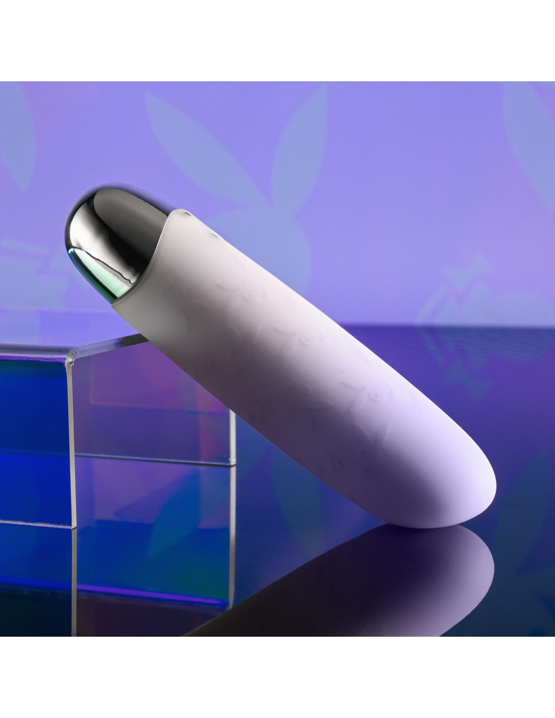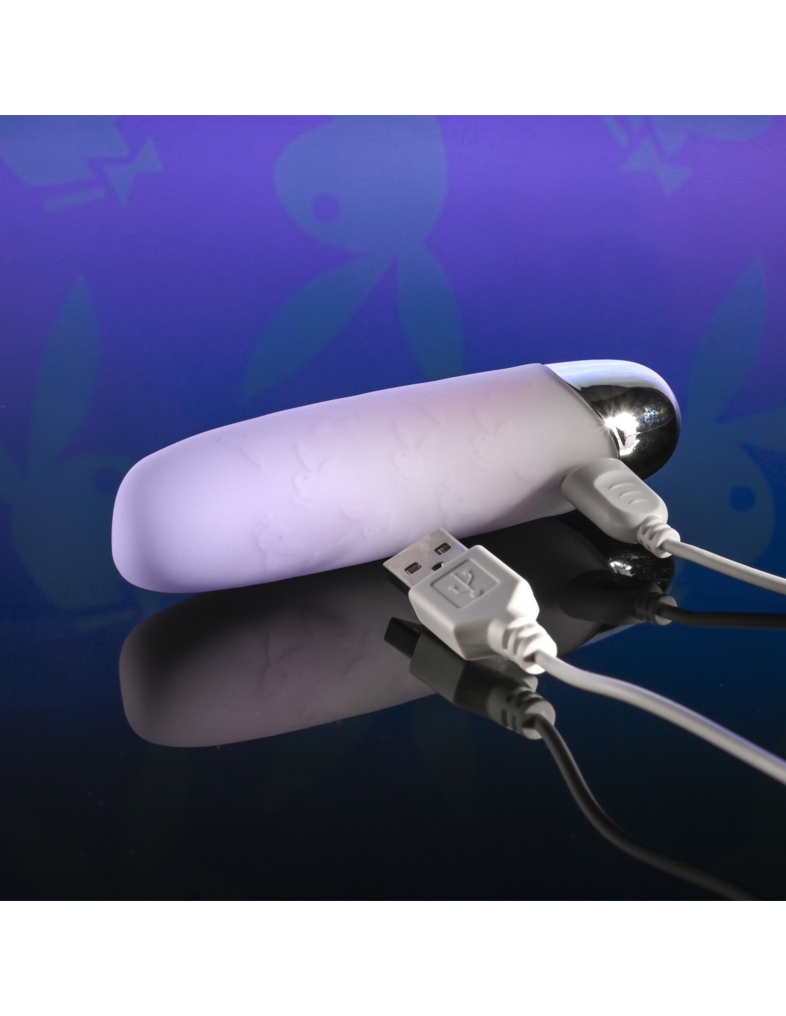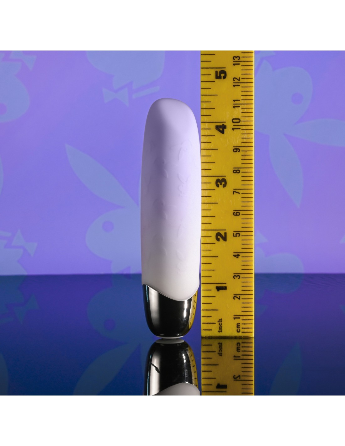 Playboy's Bunny Bunch siempre está listo para hop a complacerte. Este lujoso vibrador de bala es suave y blando, fabricado con un material de doble capa que se siente suntuoso y sedoso. Con una punta de lápiz labial para vibraciones específicas, el shaft está elegantemente cubierto con el conejito de Playboy y un hermoso degradado de color ópalo a blanco que se ve muy bien en la mesita de noche. Aumenta tu placer con 7 velocidades y ritmos, incluso bajo el agua, ya que es totalmente sumergible.