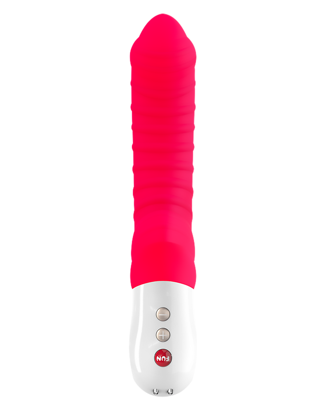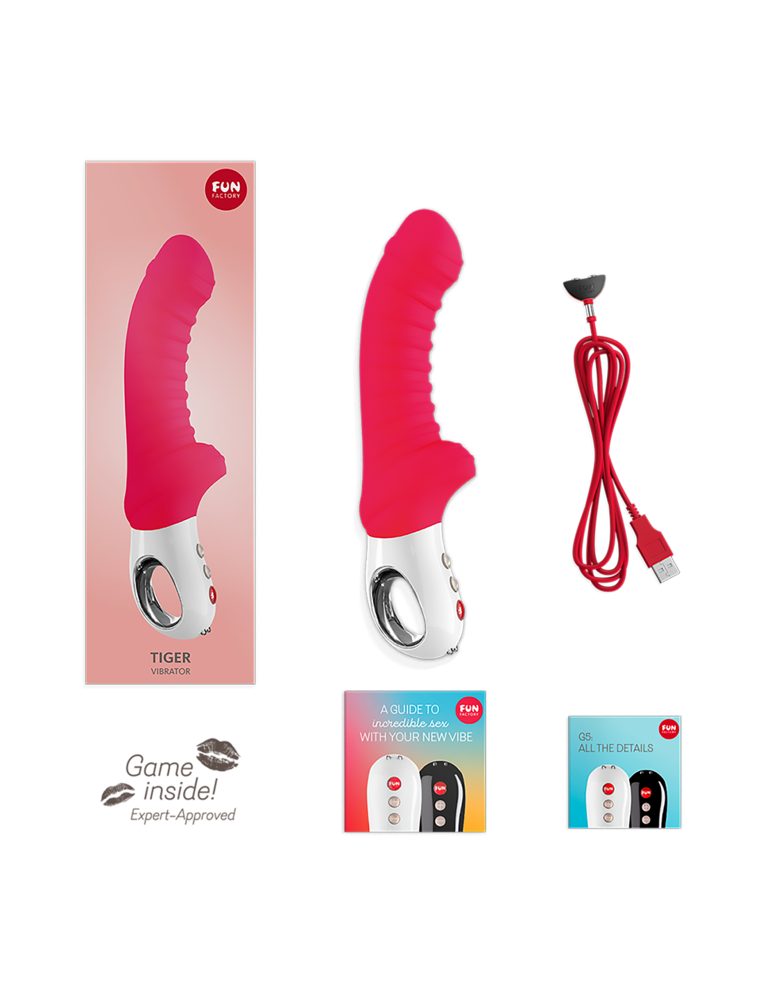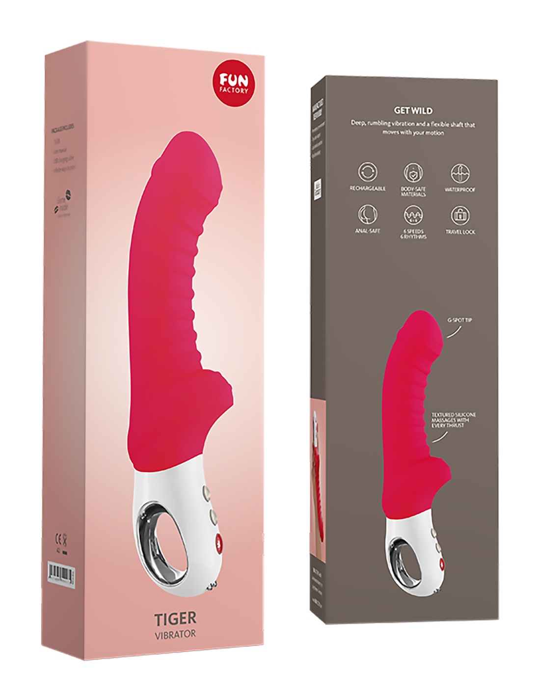 TIGER cumple, con un diseño que ofrece una vibración profunda y de tono grave desde la base hasta la punta. ¿Tienes curiosidad por las crestas del tigre? Nos encantan porque crean una sensación de ondulación cada vez que mueves el juguete hacia adentro o hacia afuera. Por lo tanto, más sensaciones increíbles con cada empuje, sin que tengas que hacer ningún esfuerzo adicional. Es un poco más de explosión para tu, bueno, explosión. Aún mejor, esta forma popular está hecha con la tecnología™ FlexiFUN. Su shaft de silicona flexible se mueve contigo, lo que hace posible una gran cantidad de posiciones.
