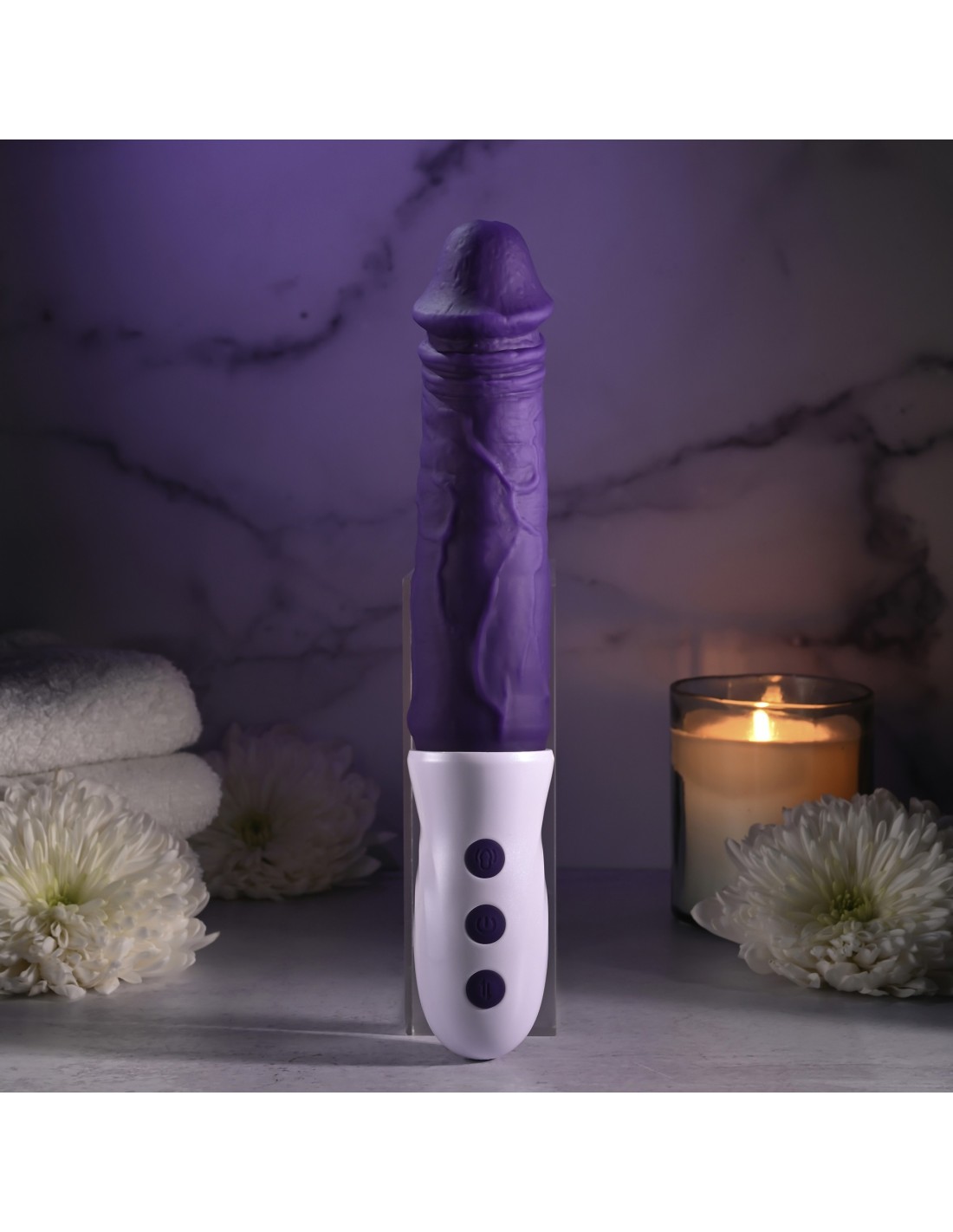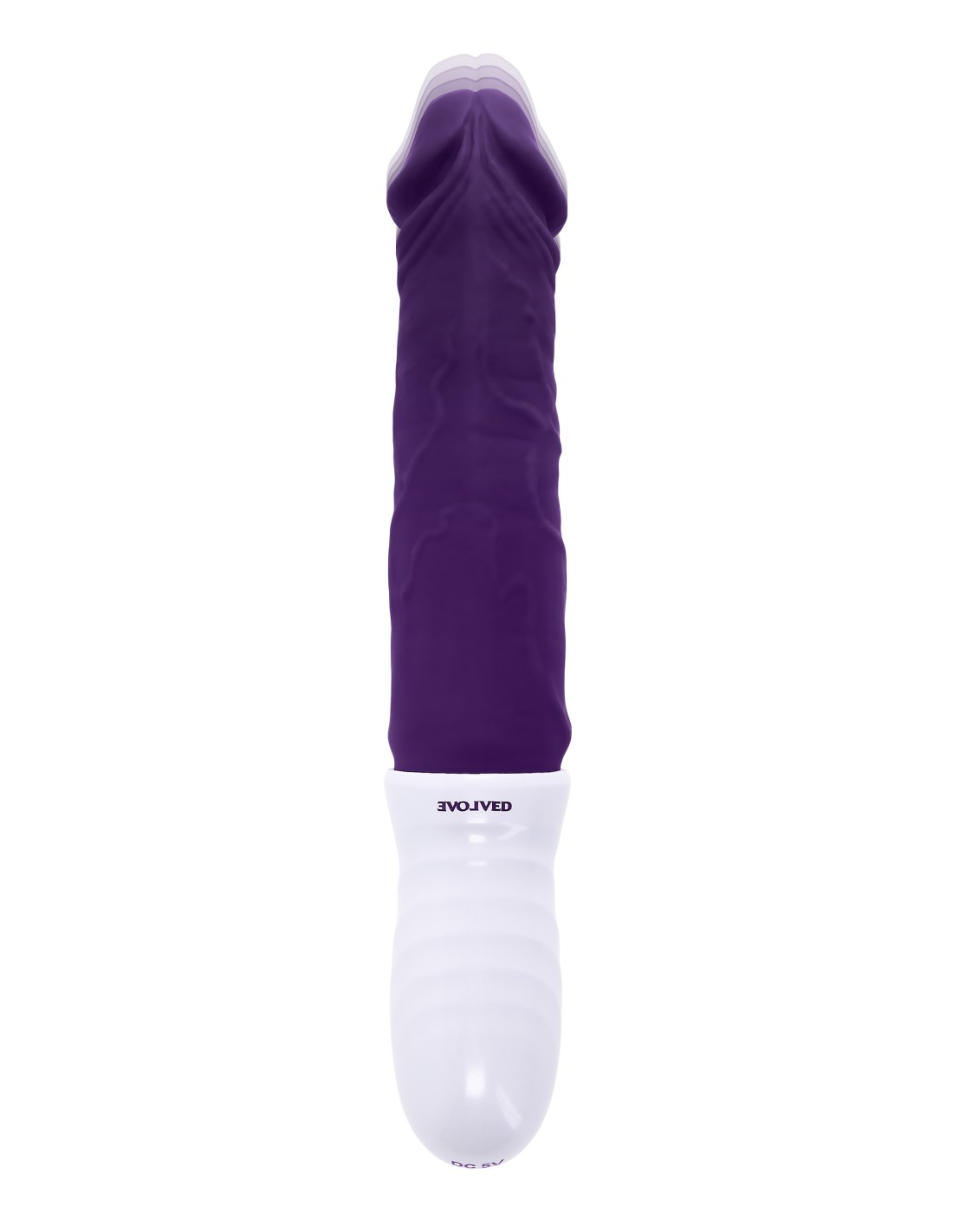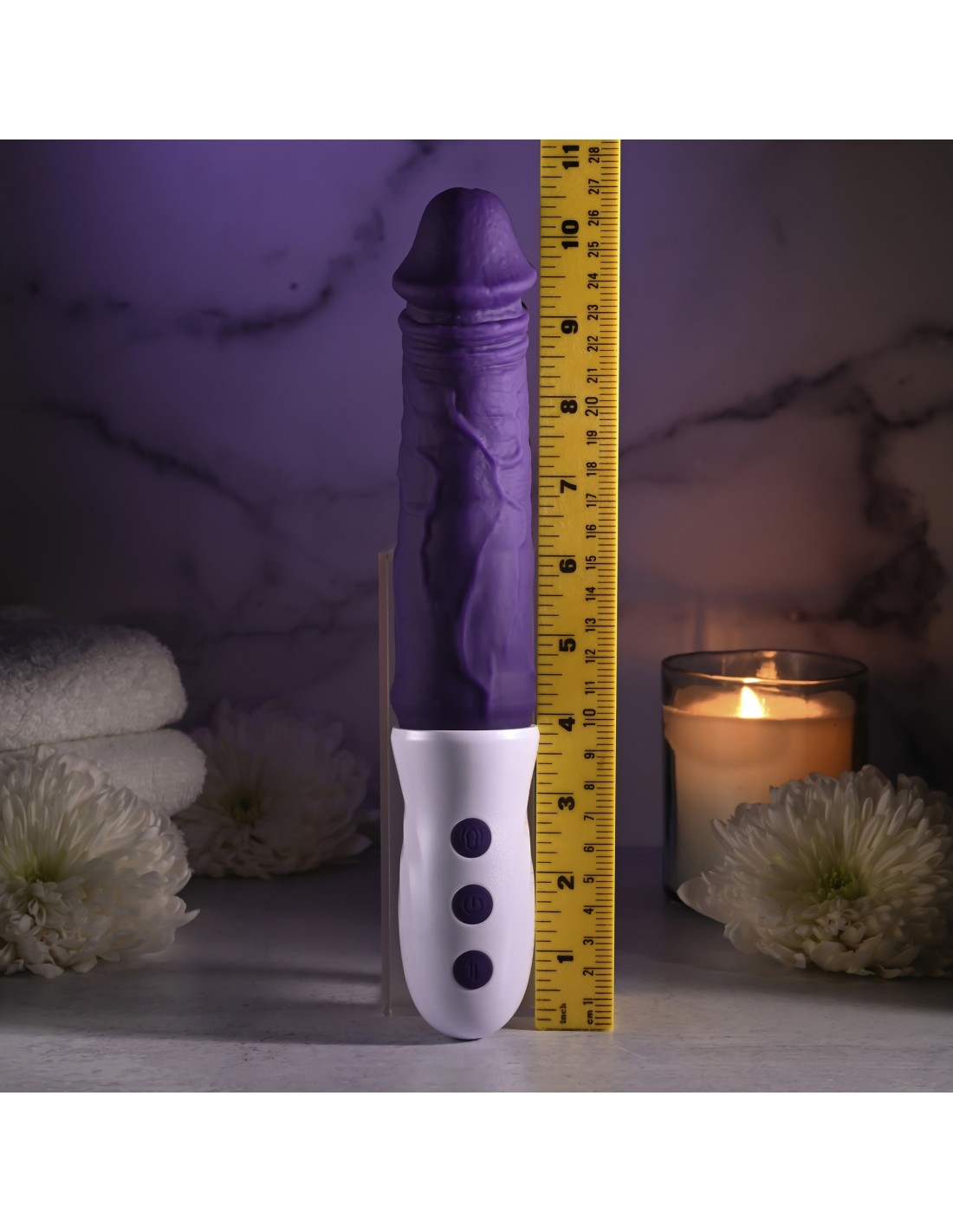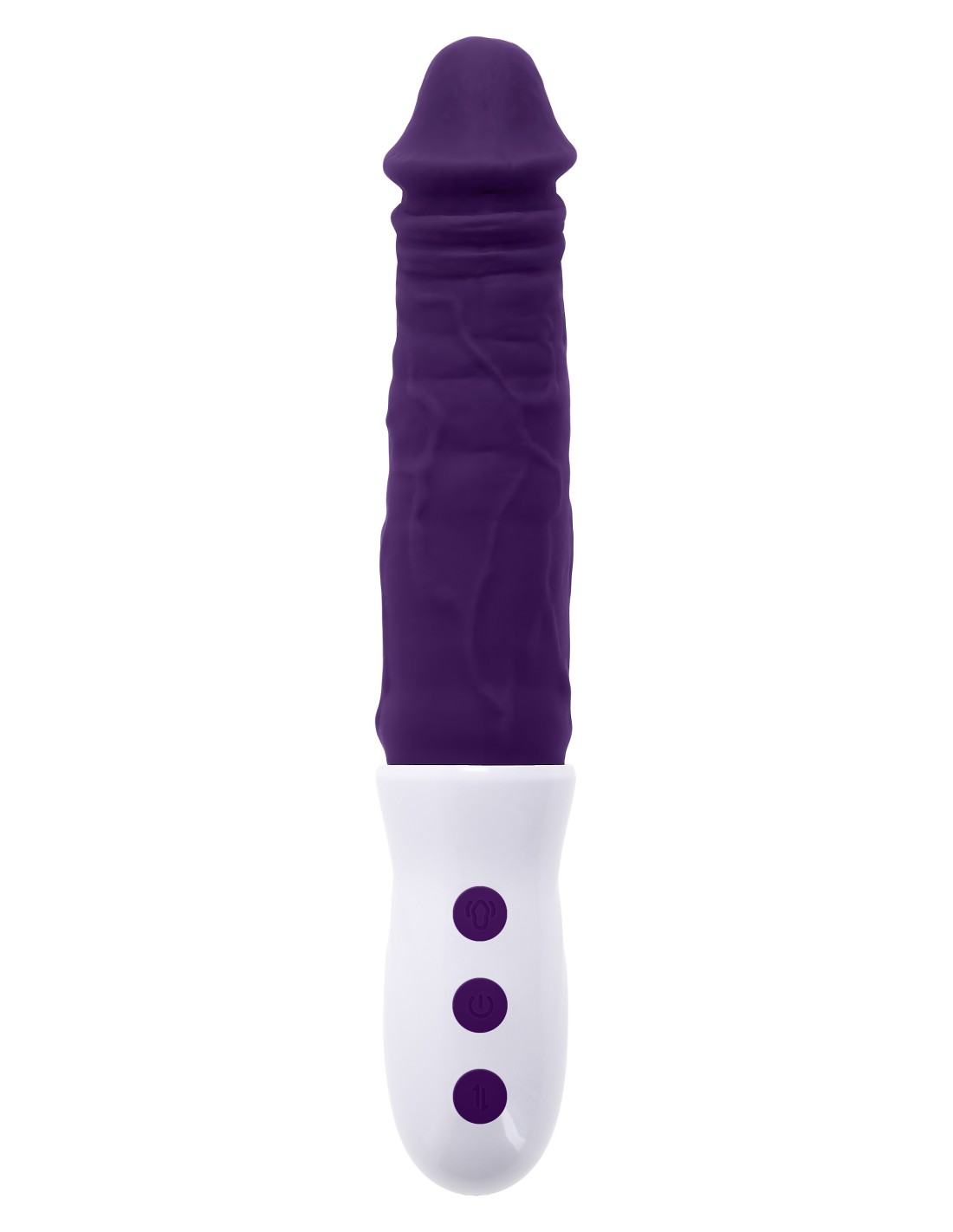 Este poderoso propulsor seguramente ganará un papel importante en su mesita de noche. Grande y audaz con la friolera de 1.5 pulgadas de empuje, el shaft, la corona y la punta realistas crean una experiencia deliciosamente realista mejorada por vibraciones robustas y retumbantes. Su mano se mantiene relajada alrededor del mango grueso y texturizado para un agarre cómodo y un fácil acceso al botón de control.