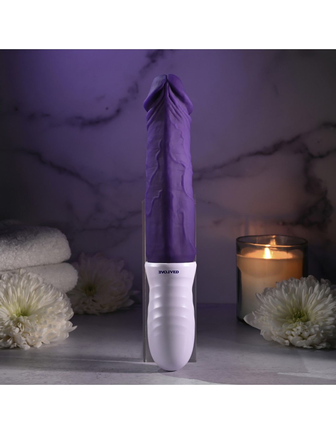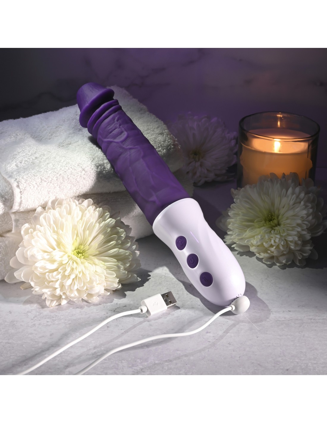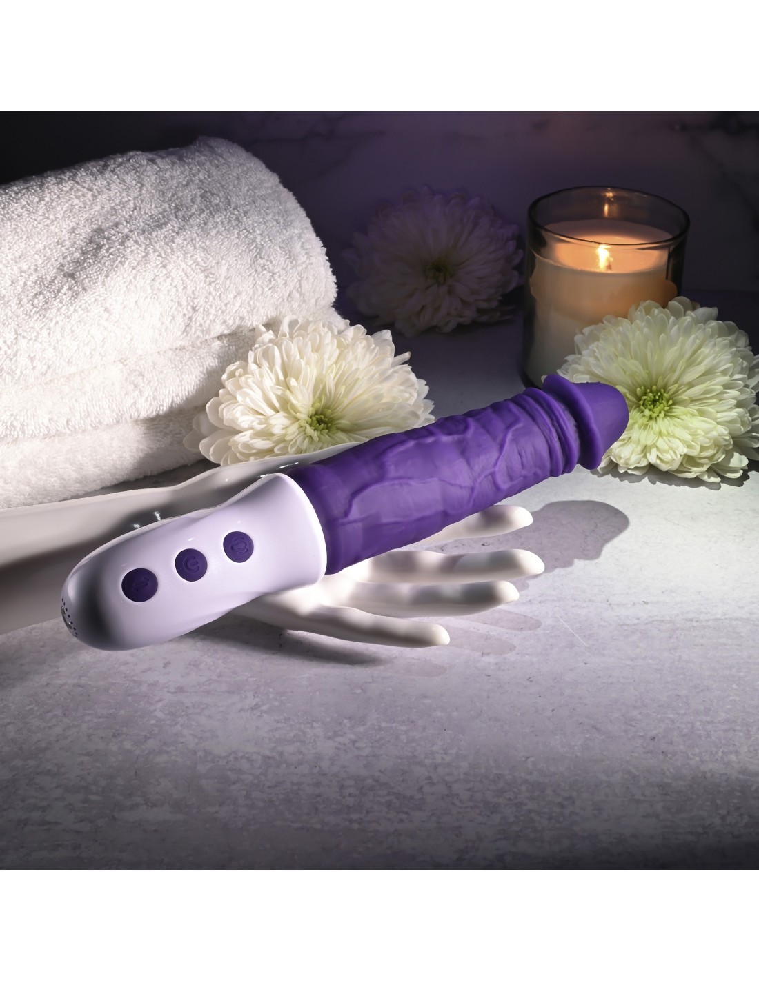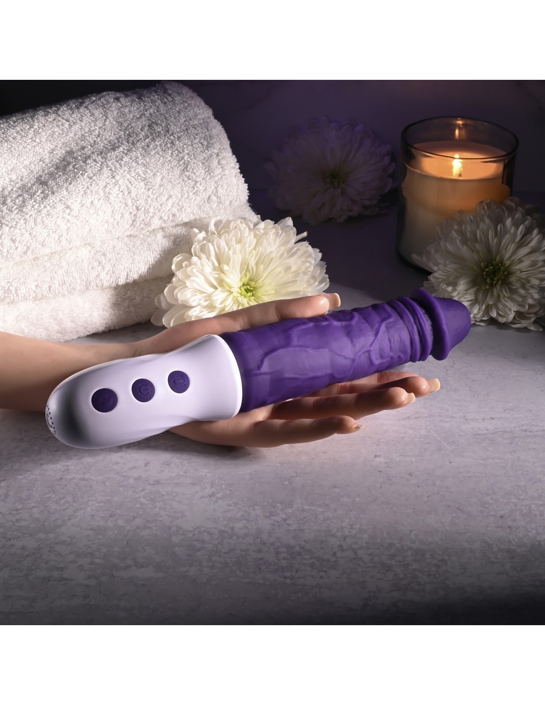 Este poderoso propulsor seguramente ganará un papel importante en su mesita de noche. Grande y audaz con la friolera de 1.5 pulgadas de empuje, el shaft, la corona y la punta realistas crean una experiencia deliciosamente realista mejorada por vibraciones robustas y retumbantes. Su mano se mantiene relajada alrededor del mango grueso y texturizado para un agarre cómodo y un fácil acceso al botón de control.