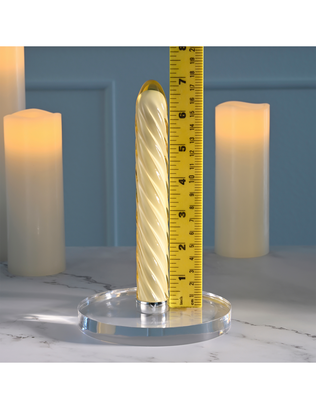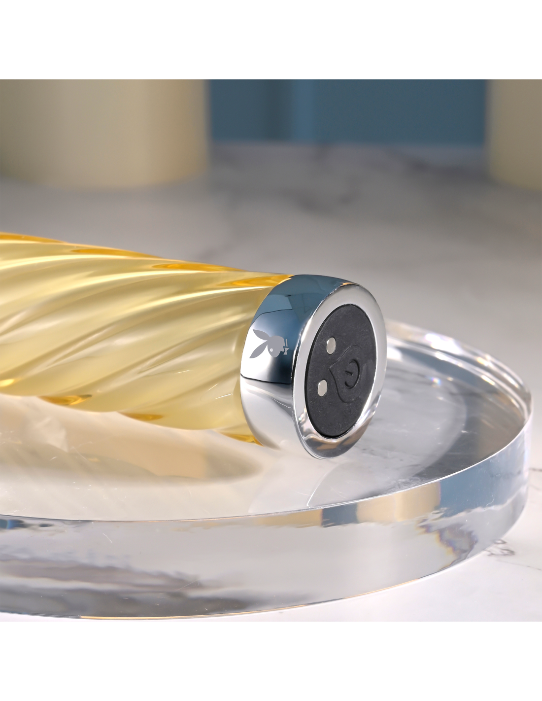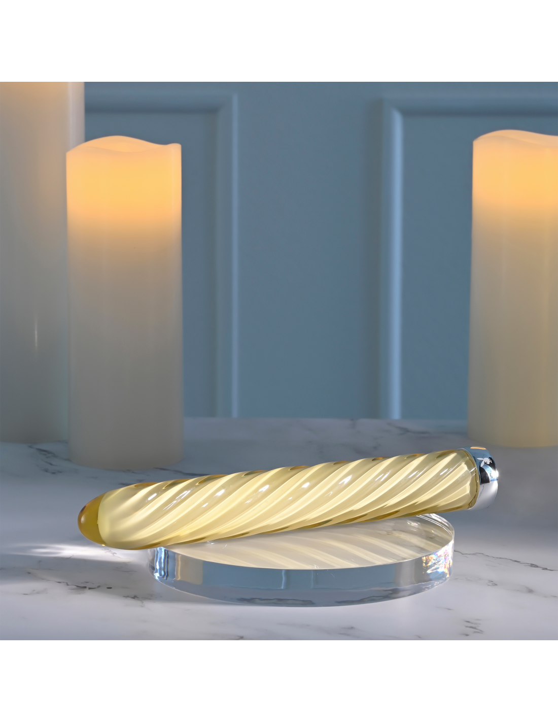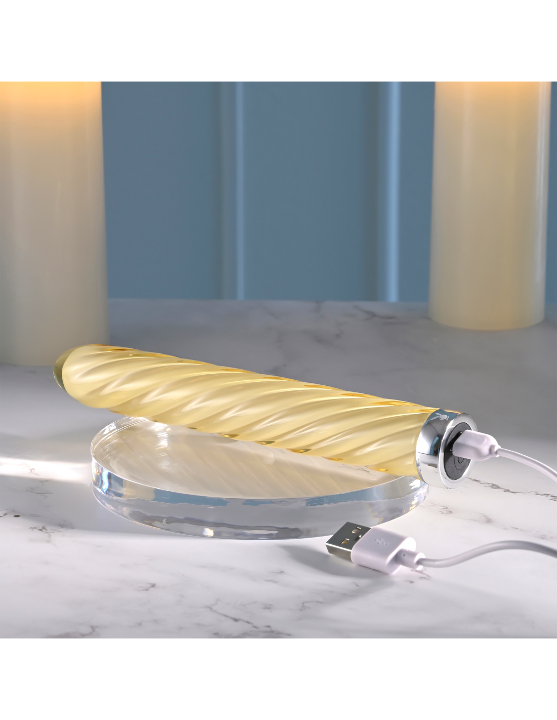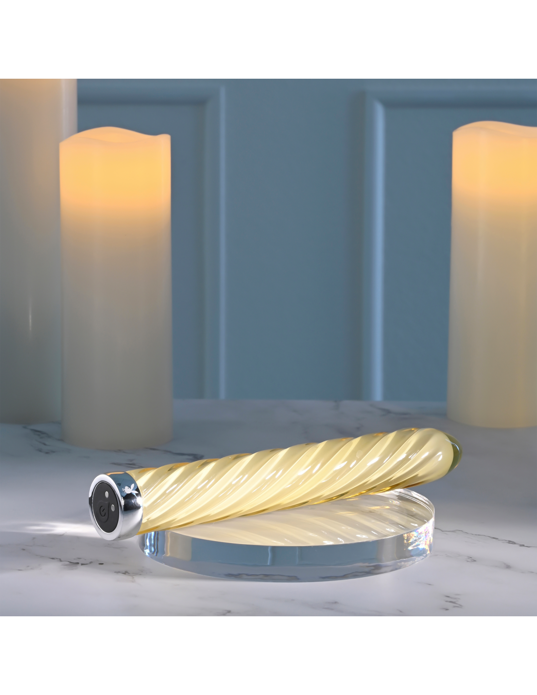 Ríndase a un poderoso giro del destino con las hipnóticas espirales giratorias de este elegante vibrador de vidrio. Estrechado en la punta para facilitar la entrada, la sensación única de vidrio suave y resbaladizo no se parece a ningún otro material contra la piel, y su superficie no porosa es higiénicamente superior. Acelera a través de 10 poderosas velocidades y ritmos para personalizar tu experiencia, y si te sientes aventurero, intenta jugar con la temperatura sosteniendo el juguete bajo agua tibia o fría antes de usarlo.
