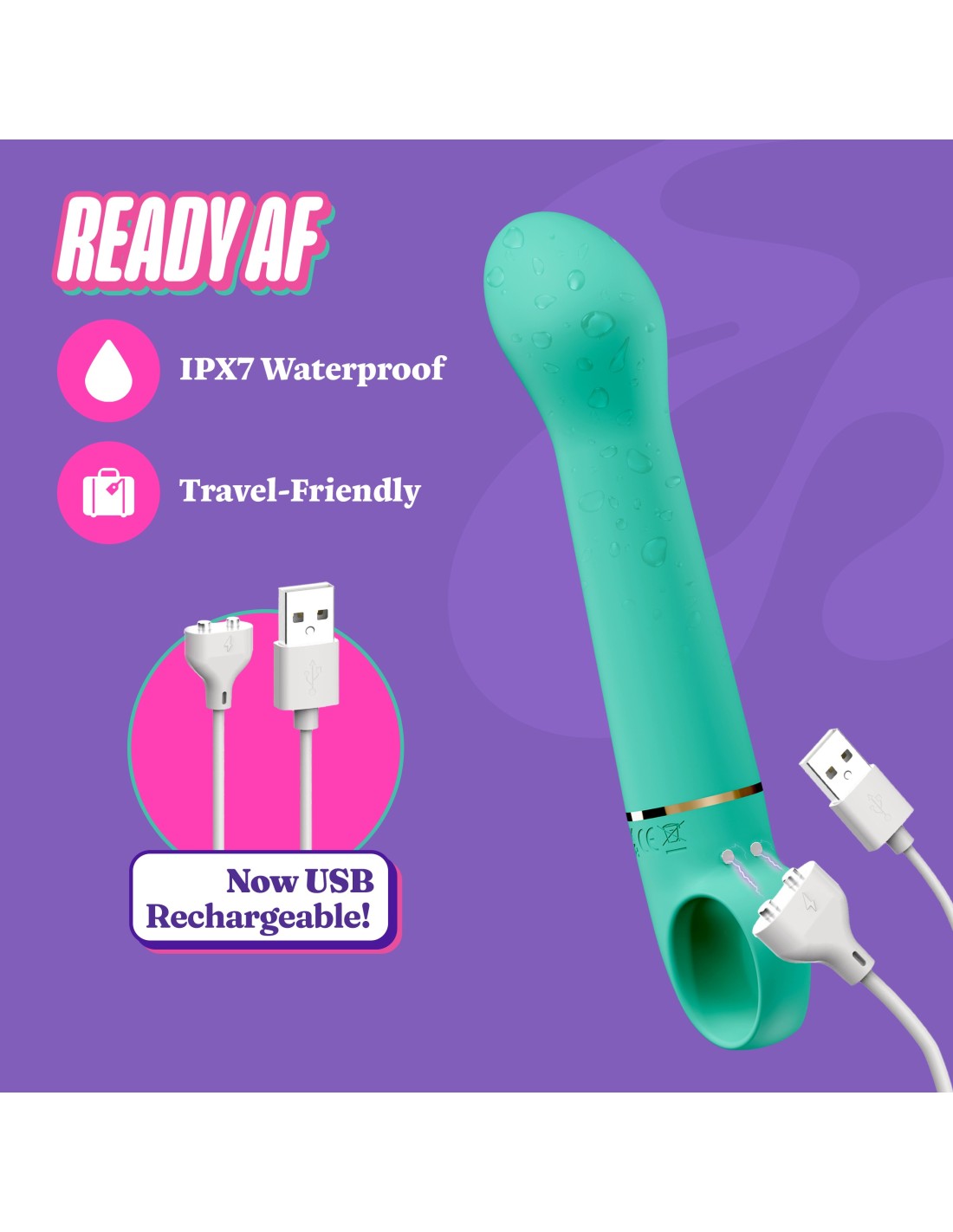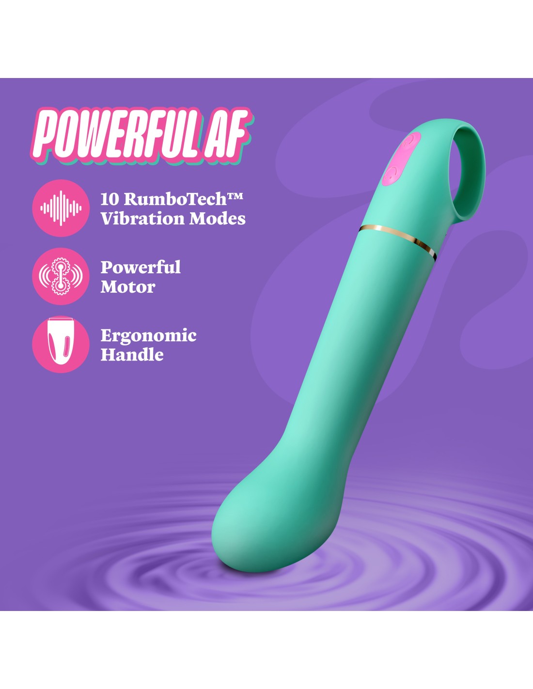Hermoso y poderoso, conoce el Aria® Flirty AF. Con la tecnología RumboTech™ característica de Blush, este ambiente juguetón ofrece 10 modos de vibración retumbantes (5 velocidades y 5 patrones) que provocan, construyen y satisfacen con cada pulso. Su silueta curvilínea invita a la exploración lúdica, mientras que la cabeza redondeada está perfectamente contorneada para despertar el punto G con una sensación profunda y enfocada. El mango de lazo de fácil agarre garantiza comodidad y control en cada sesión, ya sea que esté disfrutando de una aventura en solitario o invitando a un compañero. Confeccionado con silicona Puria® curada con platino y envuelto en UltraSilk® suave y satinado, Flirty AF se siente tan lujoso como parece. Con impermeabilización IPX7 y carga USB magnética, siempre está listo para coquetear cuando tú lo estés. ¡Abraza el poder de Aria!