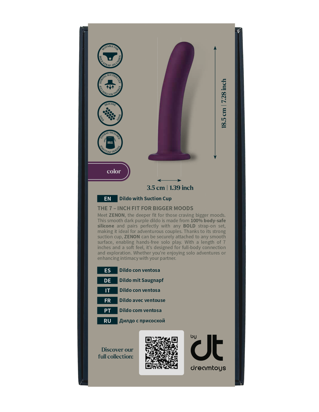 Saluda a ZENON, el consolador diseñado para aquellos que anhelan más profundidad y más aventura. Fabricado con silicona 100% segura para el cuerpo en un elegante púrpura oscuro, ZENON se siente increíblemente suave y muy acogedor.