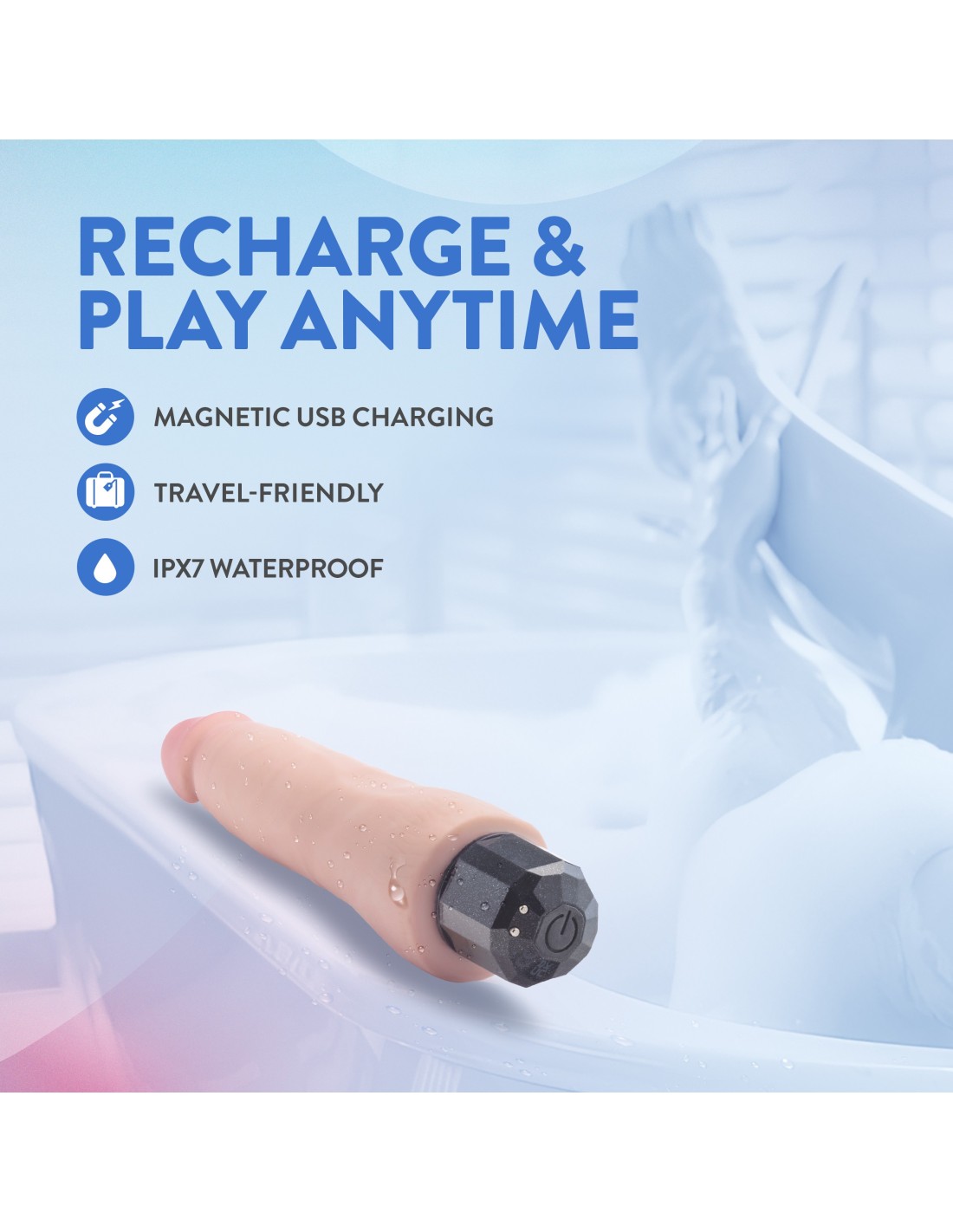 ¡Comienza la fiesta con Au Naturel Vanilla Ice! Este coqueto consolador vibrador de 8.75" siempre está listo para un momento salvaje, combinando energía juguetona con realismo realista para una experiencia profundamente satisfactoria. Diseñado para adaptarse a su cuerpo, el shaft flexible se mueve con usted, asegurando placer en cualquier posición. Diseñado con un núcleo interno articulado que mantiene su forma, Vanilla Ice ofrece un control total sobre el ángulo y la presión. La capa exterior suave y el centro firme crean una sensación realista que se entrega con cada uso. Su forma esculpida y su circunferencia satisfactoria brindan una sensación de cuerpo completo, perfect para aquellos que anhelan algo más inmersivo. Explora 10 modos de vibración profunda y retumbante que van desde pulsos suaves hasta intensidad constante. Con su diseño 100% seguro para el cuerpo, Vanilla Ice es totalmente resistente al agua y recargable por USB para un placer sin esfuerzo. Ya sea que estés explorando nuevas sensaciones o agregando una chispa a tu rutina, deja que Vanilla Ice traiga el poder, la flexibilidad y la diversión para que la fiesta continúe.