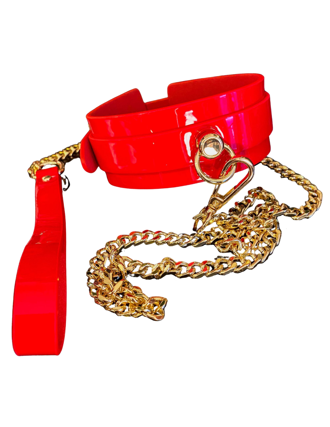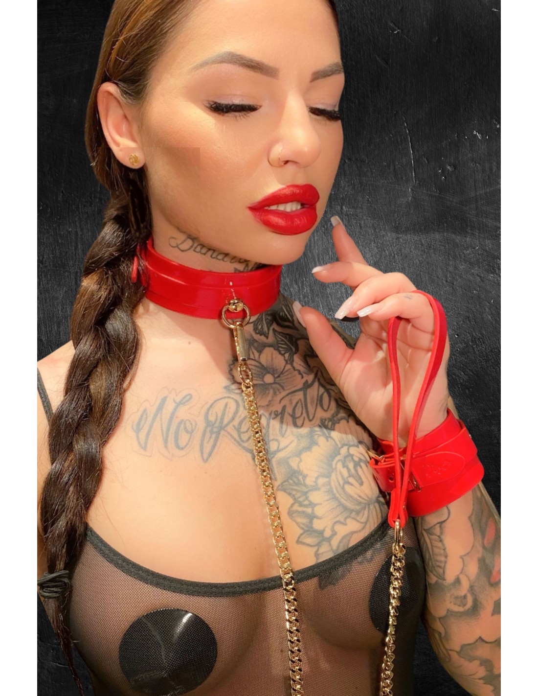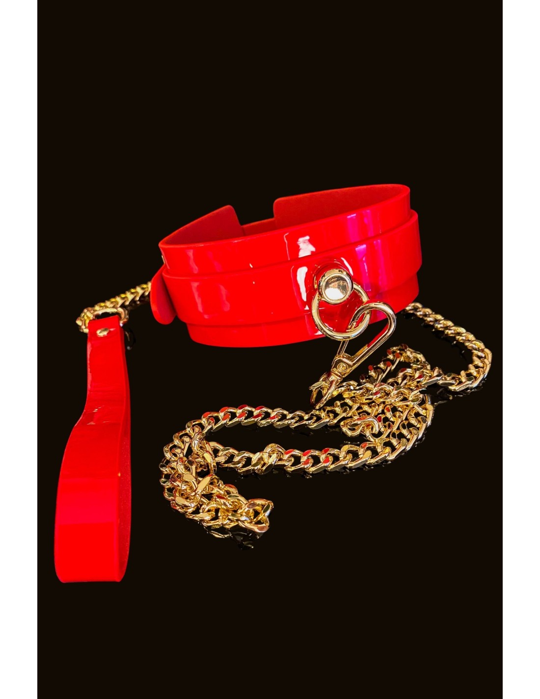 KINKY DIVA COLLAR DE JUNTA TÓRICA + CORREA ROJO/DORADO