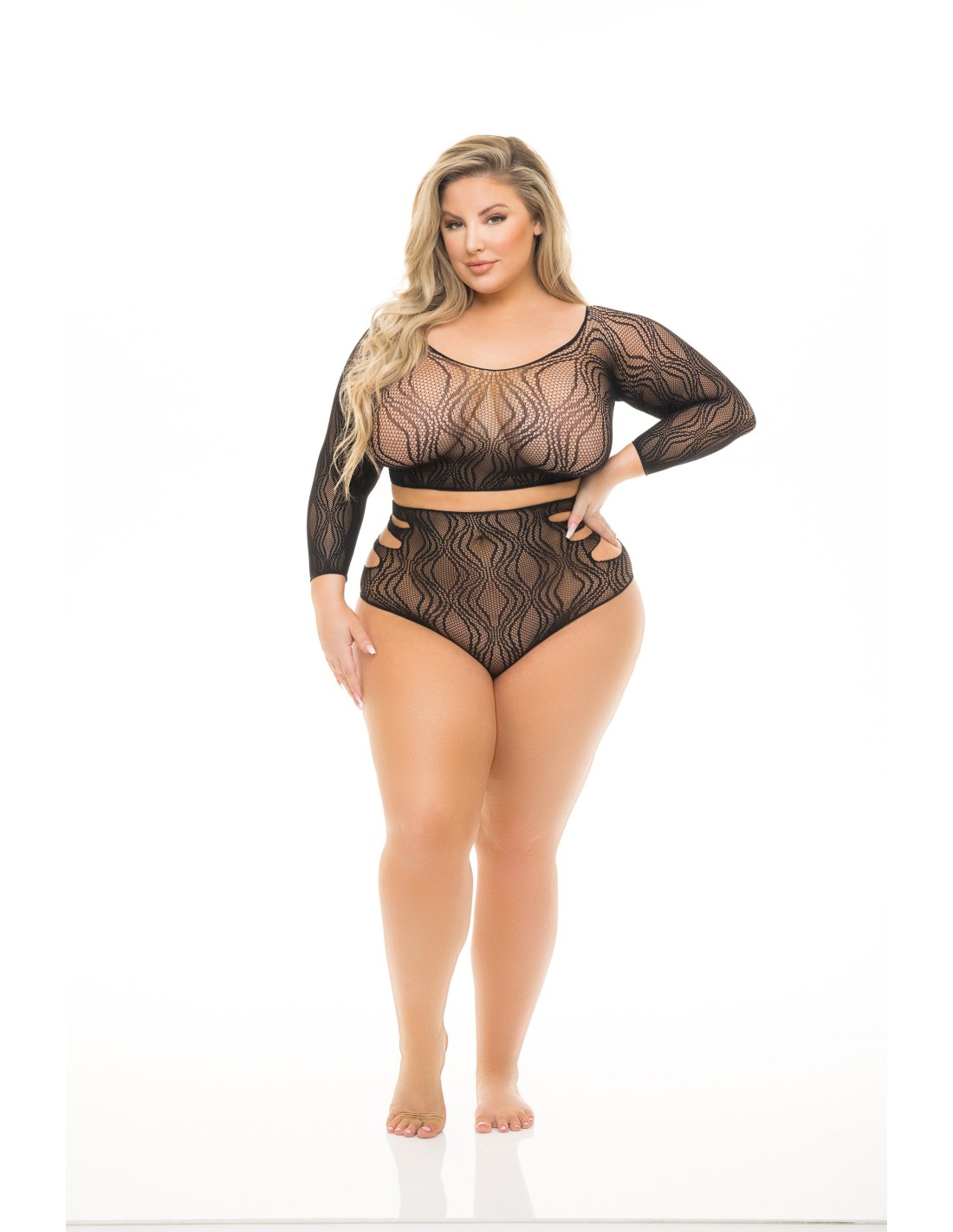 Conjunto corto de 2 piezas Back Me Up. ¡El conjunto corto de 2 piezas Back Me Up tiene todo lo que necesitas, que es excitante y seductor! La red suave y flexible te envuelve en los lugares correctos y acentúa tus curvas con aberturas que muestran la cantidad justa de piel.