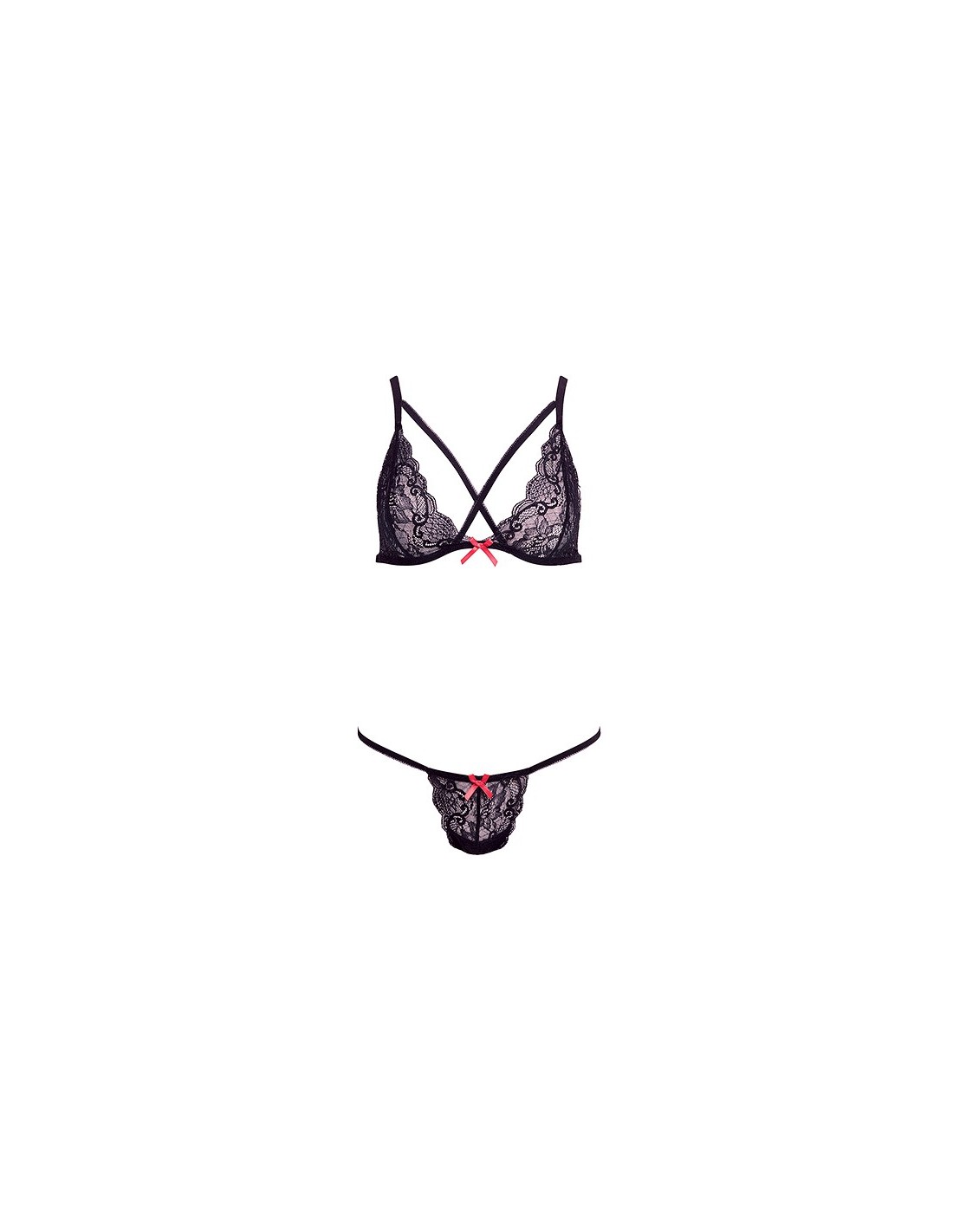 - Sujetador y sujetador con apariencia de tiras. Conjunto de braguitas